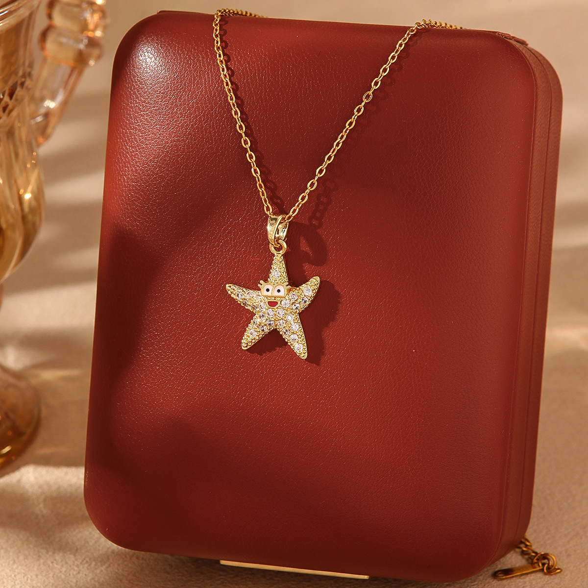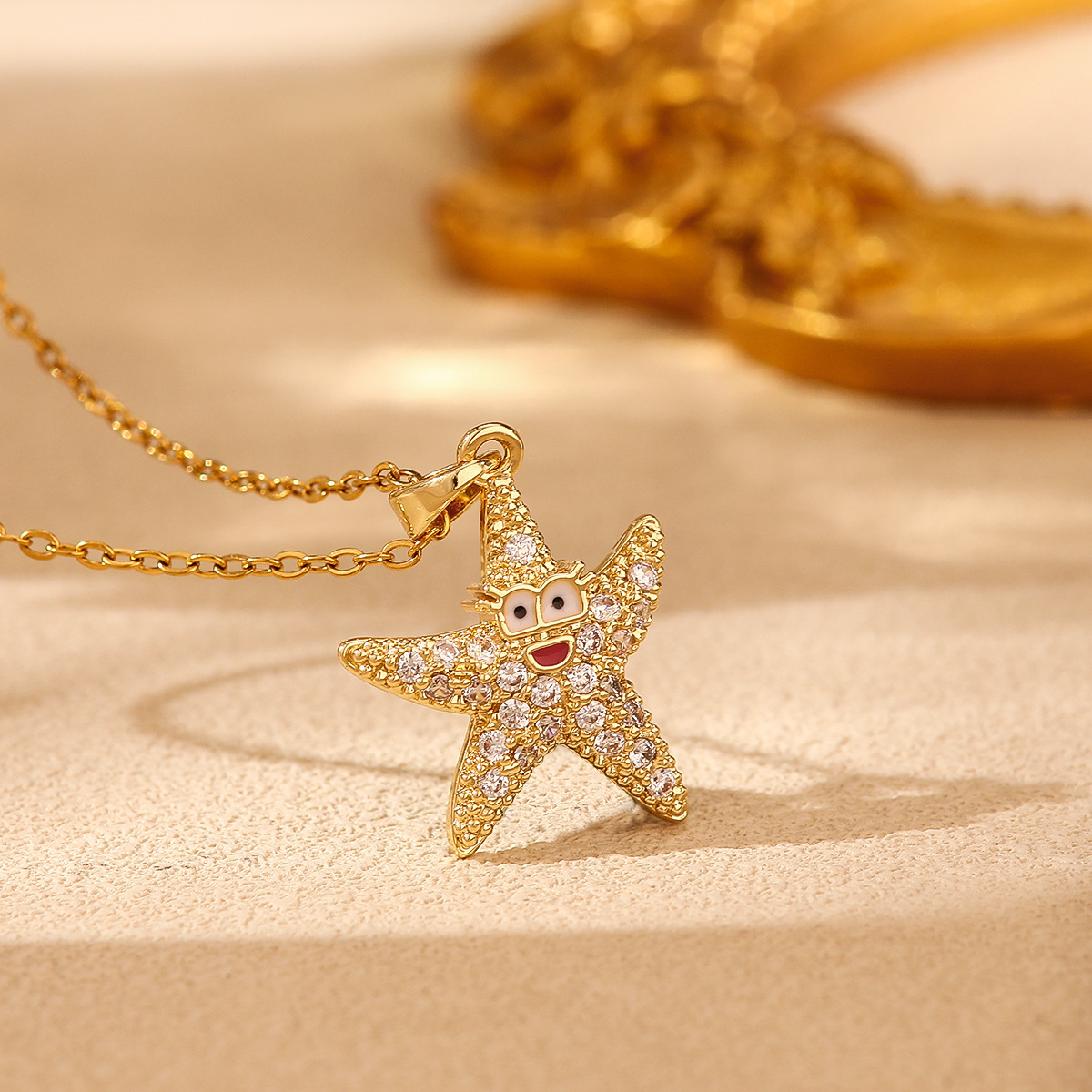 Color: XX0197# fun starfish necklace, XX0198# Pink Diamond starfish necklace, XX0198-1# Blue Diamond starfish necklace