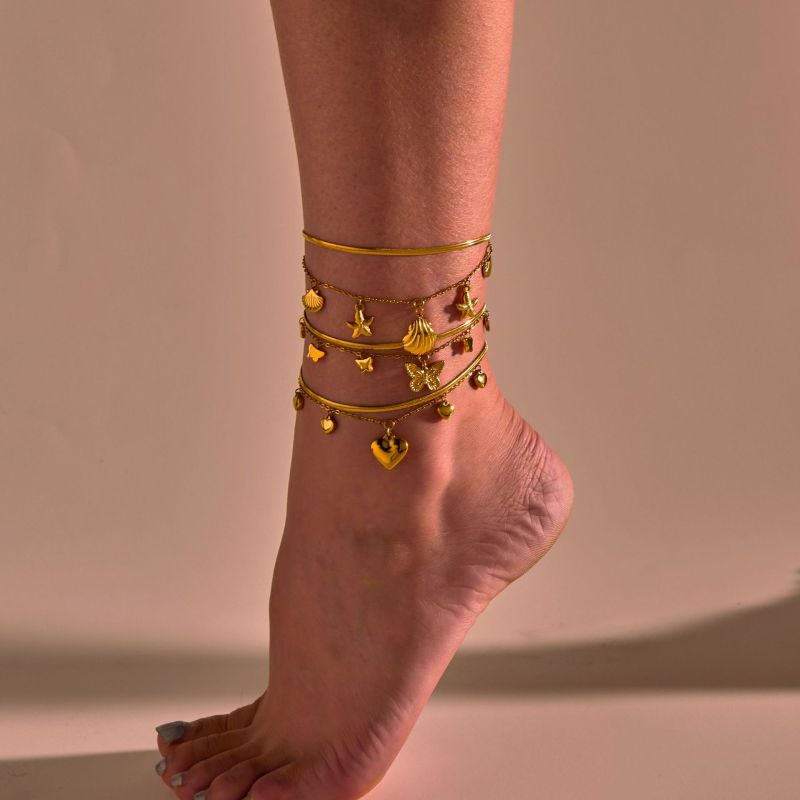 Color: NMSA-K329-1 gold shell anklet, NMSA-K329-2 steel shell anklet, NMSA-K329-3 Gold love anklet, NMSA-K3210-1 steel love anklet, NMSA-K3210-2 gold butterfly anklet, NMSA-K3210-3 steel butterfly anklet