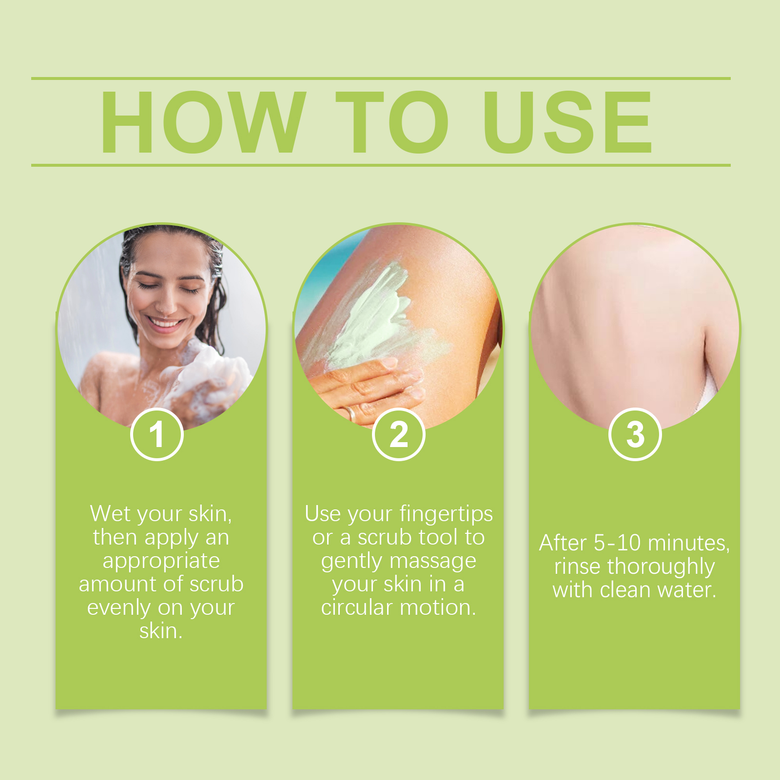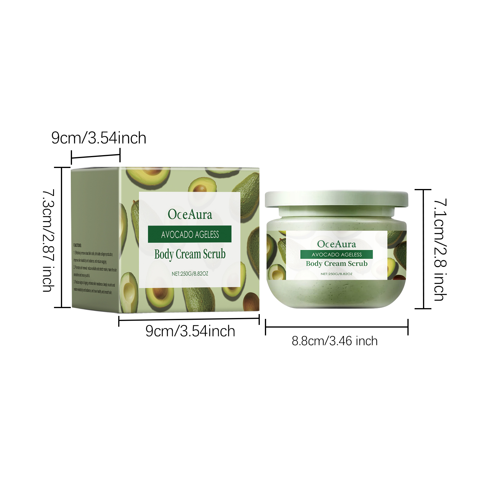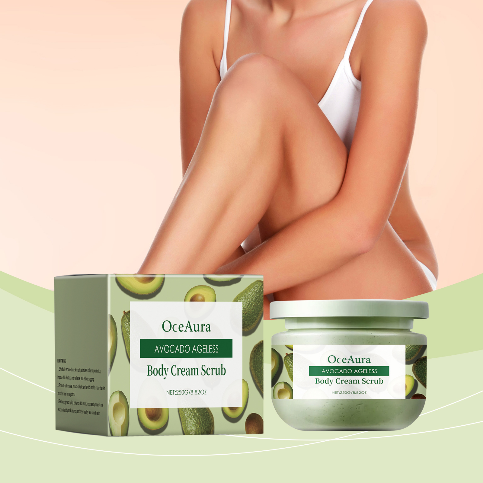 Our avocado body scrub contains glycerin, avocado extract, nicotinamide. It can effectively remove dead skin cells and leave skin smooth and delicate. Enhance skin elasticity and reduce skin sagging. Fade fine lines, reduce stretch marks and fine lines, and make skin smoother. The way to use it is very simple: 1. Wet the skin and then apply an appropriate amount of facial cleanser to the skin. 2. Gently massage the skin in a circular motion with your fingertips or scrub tool; After 3.5-10 minutes, rinse thoroughly with water. Helps rejuvenate the skin and give it a youthful glow. Smooth skin, reduce roughness and dryness, and make skin feel soft.