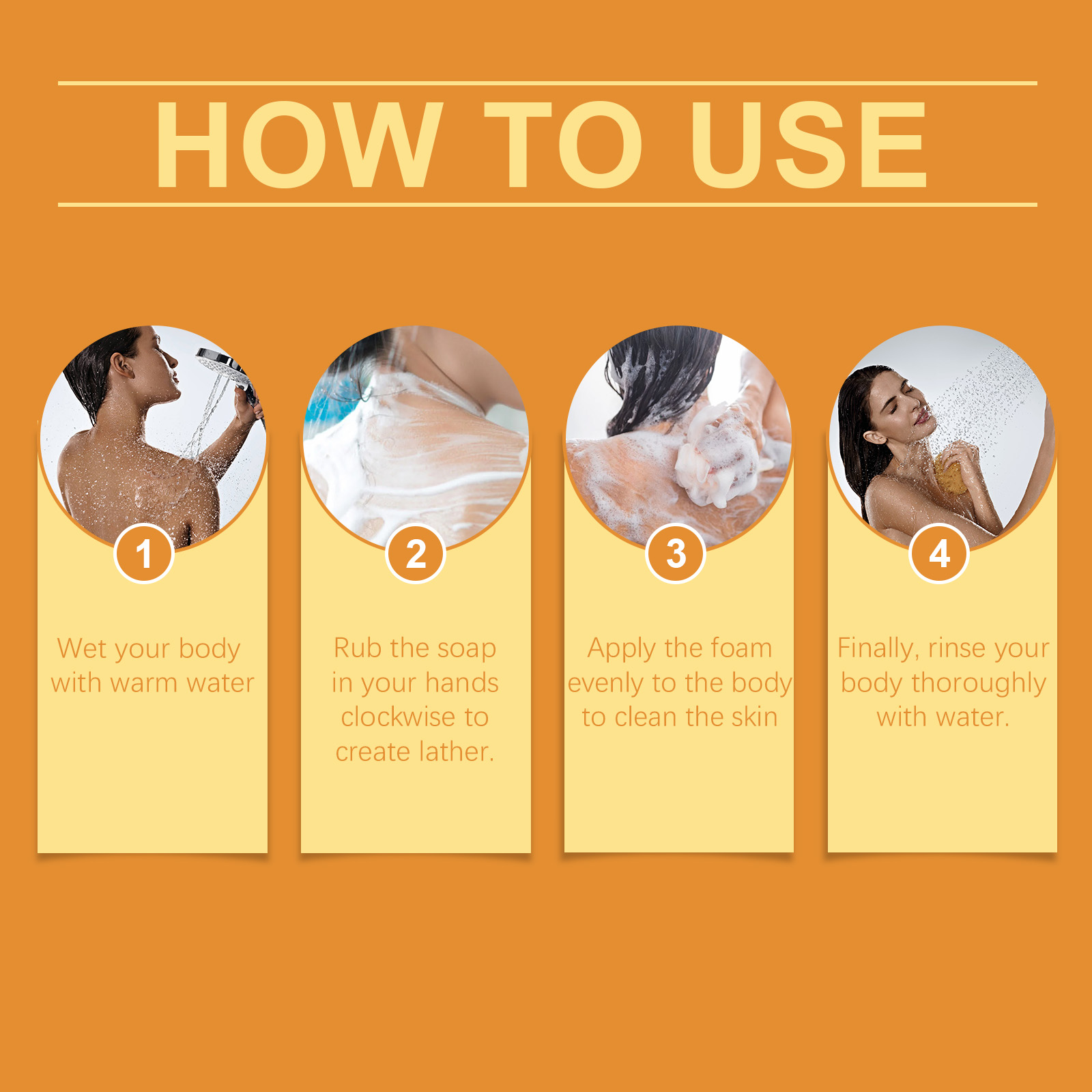 Our body cleansing soap contains olive oil, coconut oil, palm oil. It can be deeply nourishing. Moisturize skin, improve skin softness; It forms a protective layer that locks in moisture and enhances skin elasticity. Powerful antioxidants that boost metabolism and slow aging. Its use is simple: 1. Wet your body with warm water; 2. Rub the soap clockwise with your hand to create a lather; 3. Apply the foam evenly to the body to clean the skin; 4. Finally, rinse your body thoroughly with water. Body cleansing soap retains skin oil, avoids dryness and keeps skin smooth and tight. To form a protective film against outside aggression.