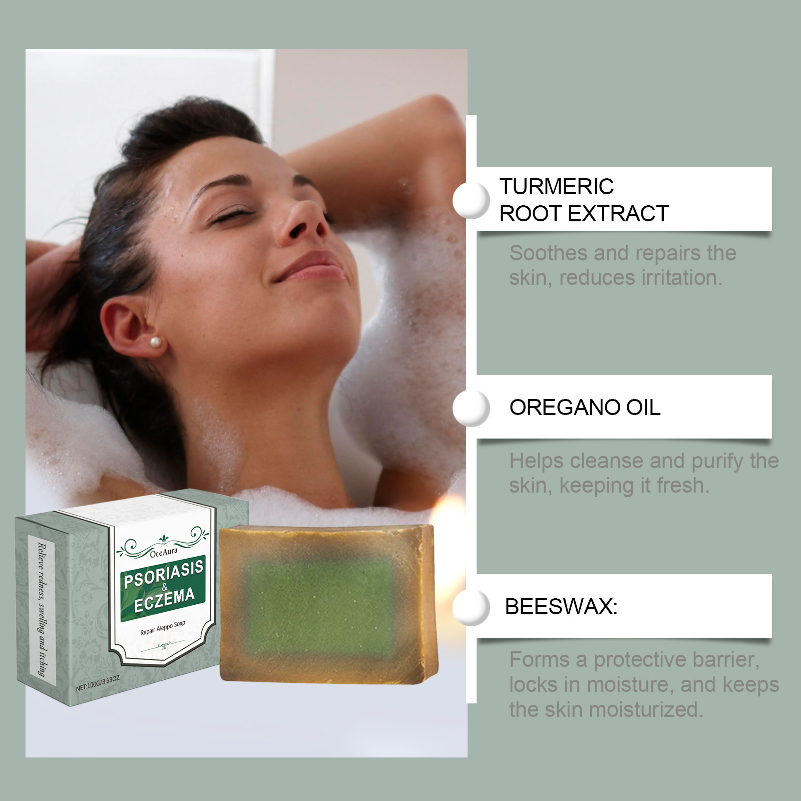Our body cleansing and repairing soap is carefully formulated with turmeric root extract, oregano oil and beeswax. Designed specifically for gently removing scales from the skin surface, quickly reducing redness and swelling on the skin surface, and soothing the skin. The usage method is extremely convenient: 1. Wet your face and body with warm water. 2. Gently rub the product in the palm of your hand to form foam, and then evenly apply the foam to your face or body. Gently massage, gently circular, and finally rinse with clean water. Effectively relieve the itching caused by skin problems and provide a comfortable experience.