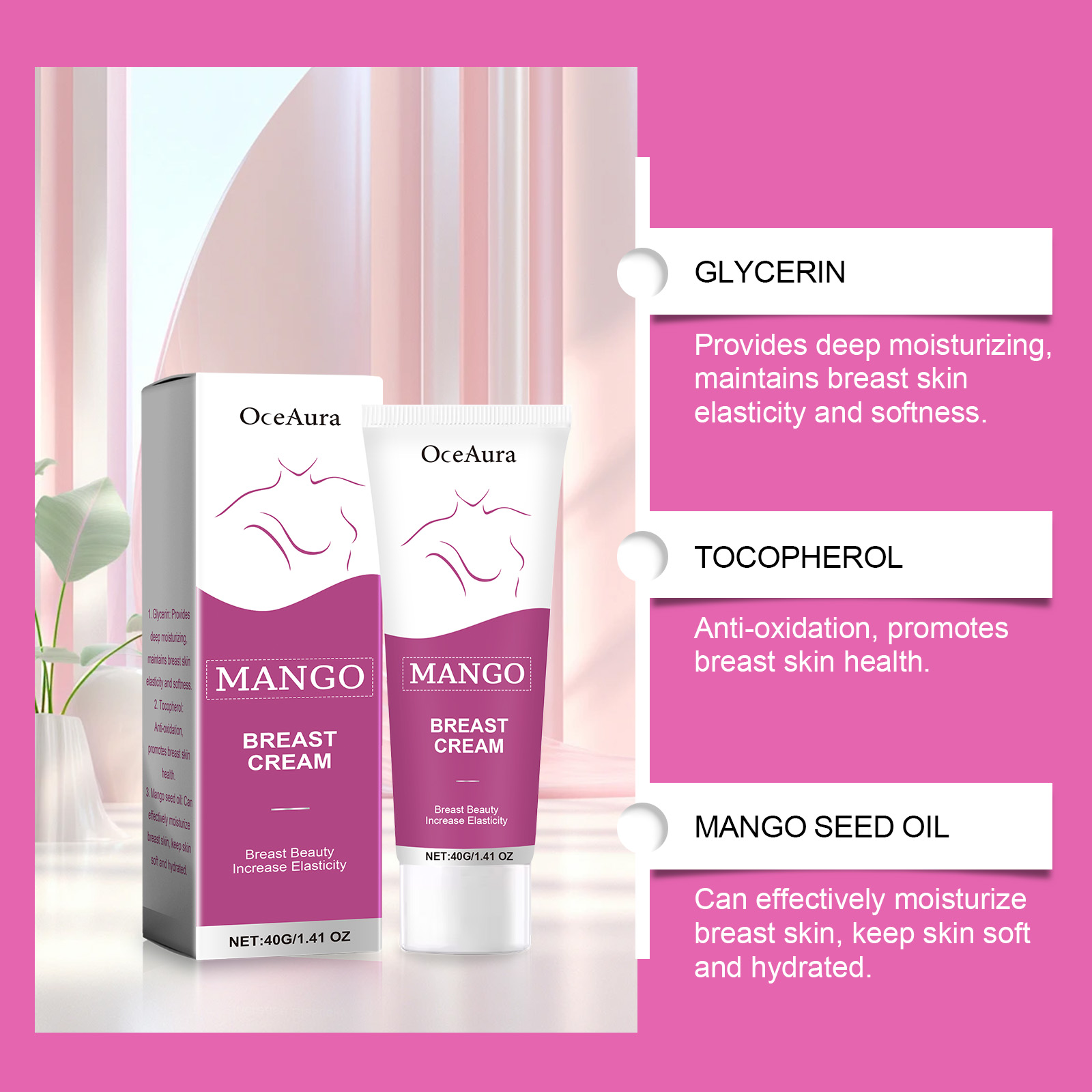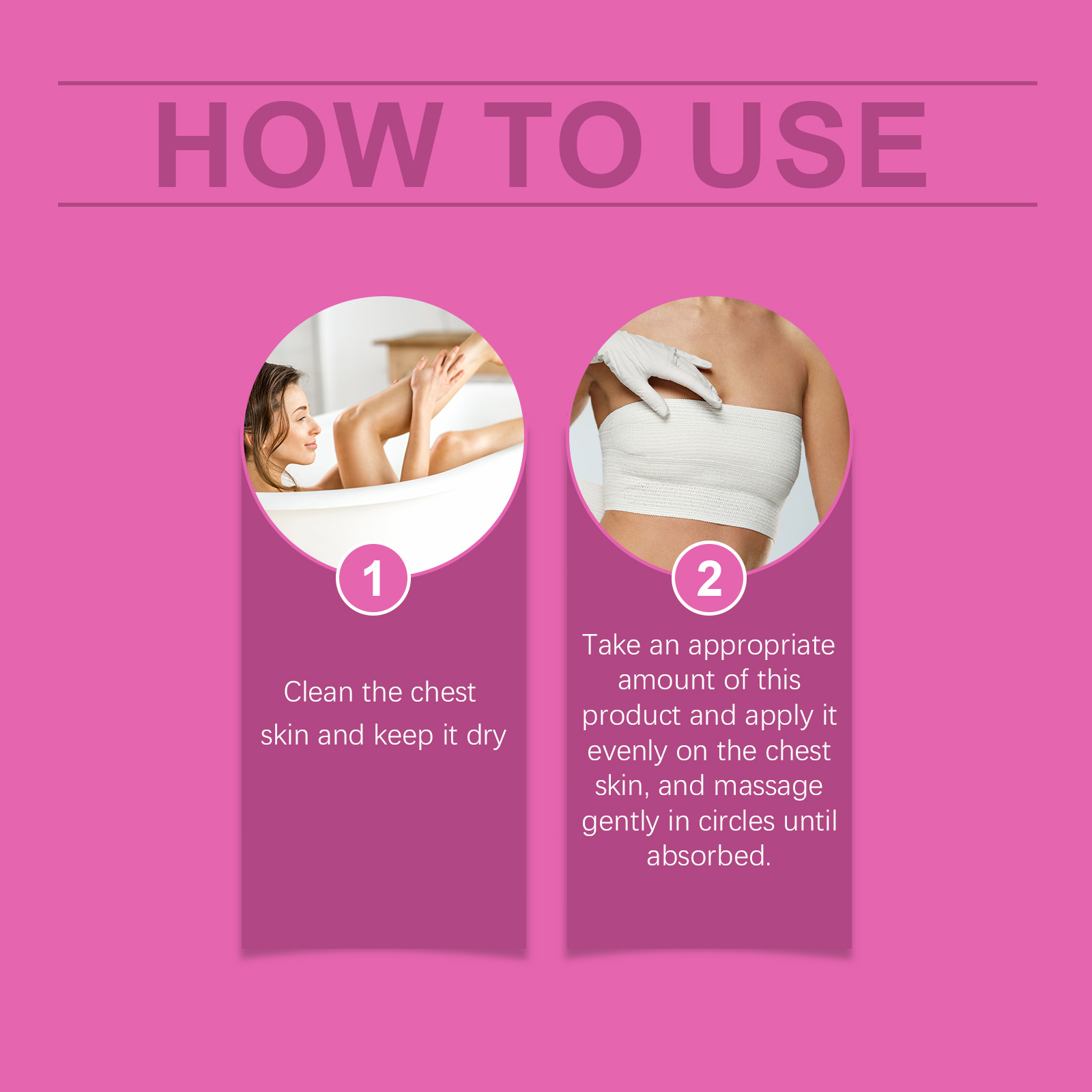 Our breast massage cream contains mango seed oil, glycerin, tea leaf extract. It can improve the elasticity of the skin on the chest, making it look firmer. Helps create a fuller breast contour. Its application method is very simple: 1. Wash the chest skin and keep it dry; 2. Apply appropriate amount of the product evenly on the chest skin, gently massage in circular motion until absorbed. Deep nourishing chest skin, improve dry skin slack.