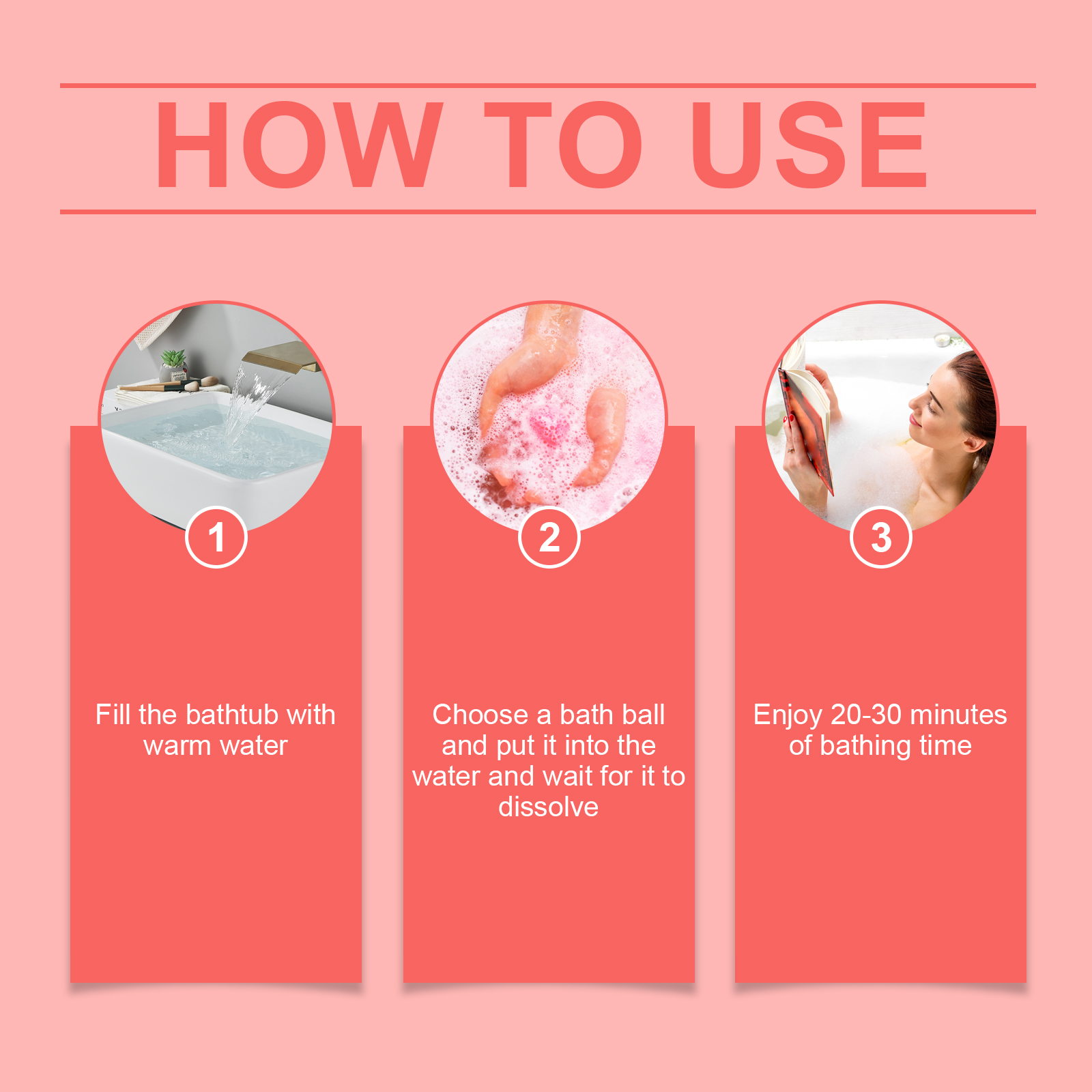 Our colorful Christmas bath balls contain rose extract and dragon fruit extract. It allows the skin to exude an elegant floral scent long after the shower. Its use is simple: fill the bathtub with warm water, choose a bath ball, put it in the water, wait for it to dissolve, and enjoy the bath time for 20-30 minutes. And can be full of rosemary and lavender fragrance, deeply relax and relieve the fatigue of the day.