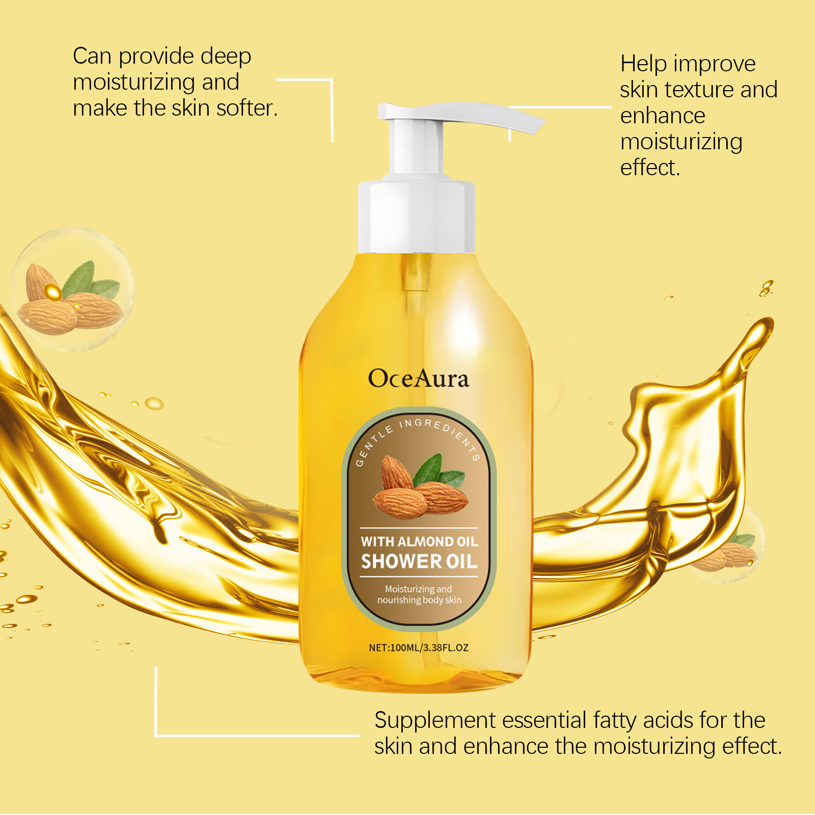 OceAura Coconut Oil Bath Oil, Gently Cleanses Body Skin Moisturizing, Smooth And Nourishing Skin Bath Oil