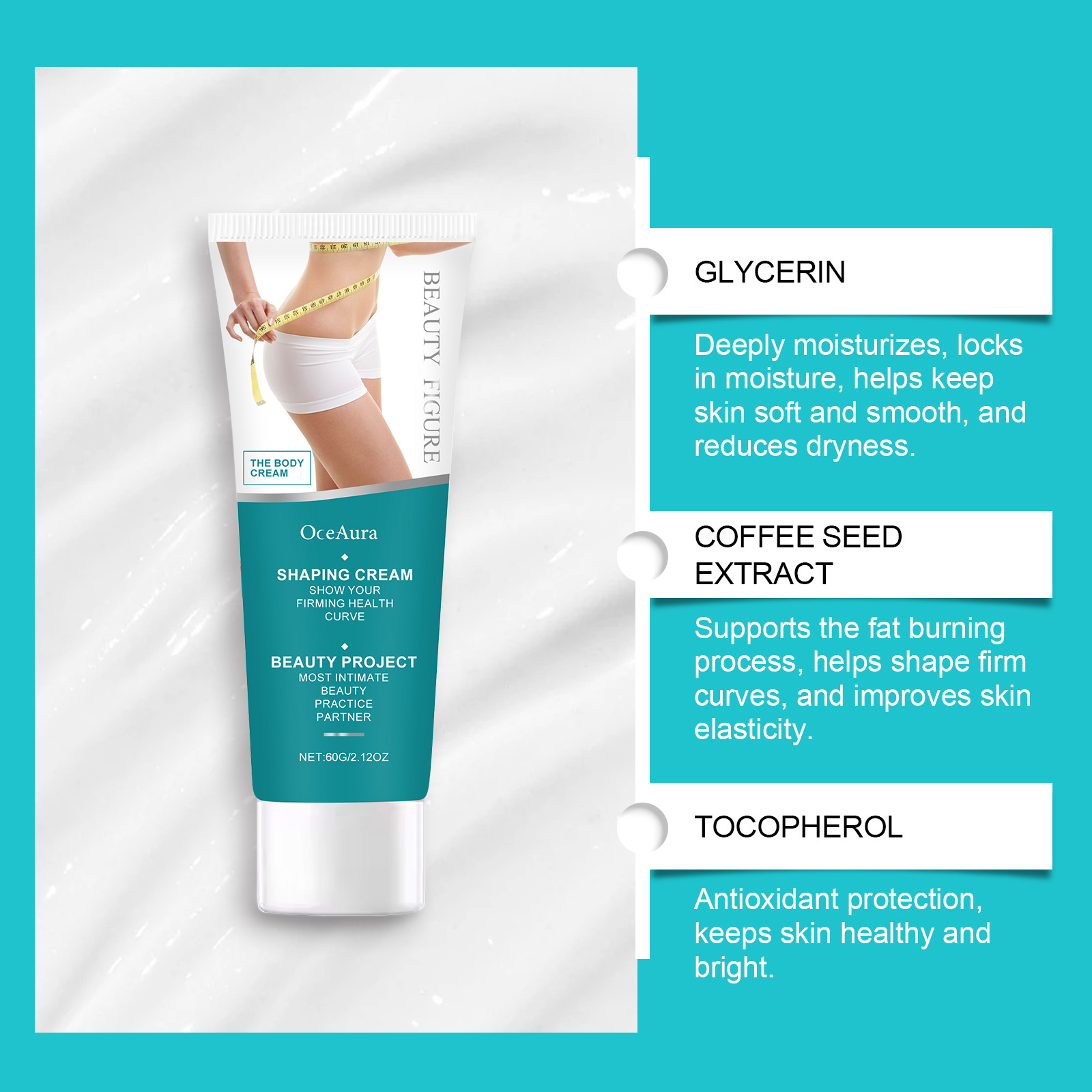 Our coffee care cream contains extract from small fruit coffee seeds and tocopherol (vitamin E). It can help effectively burn fat, shape firm lines and maintain an ideal figure. Deeply moisturize the skin while keeping it smooth. Its usage method is very simple: 1. Clean the skin and keep it dry. 2. Take an appropriate amount of the face cream and apply it evenly all over the skin. 3. Gently massage to promote absorption. Continuous use is effective. The weight loss process is stable, less likely to rebound, and helps maintain an ideal figure.