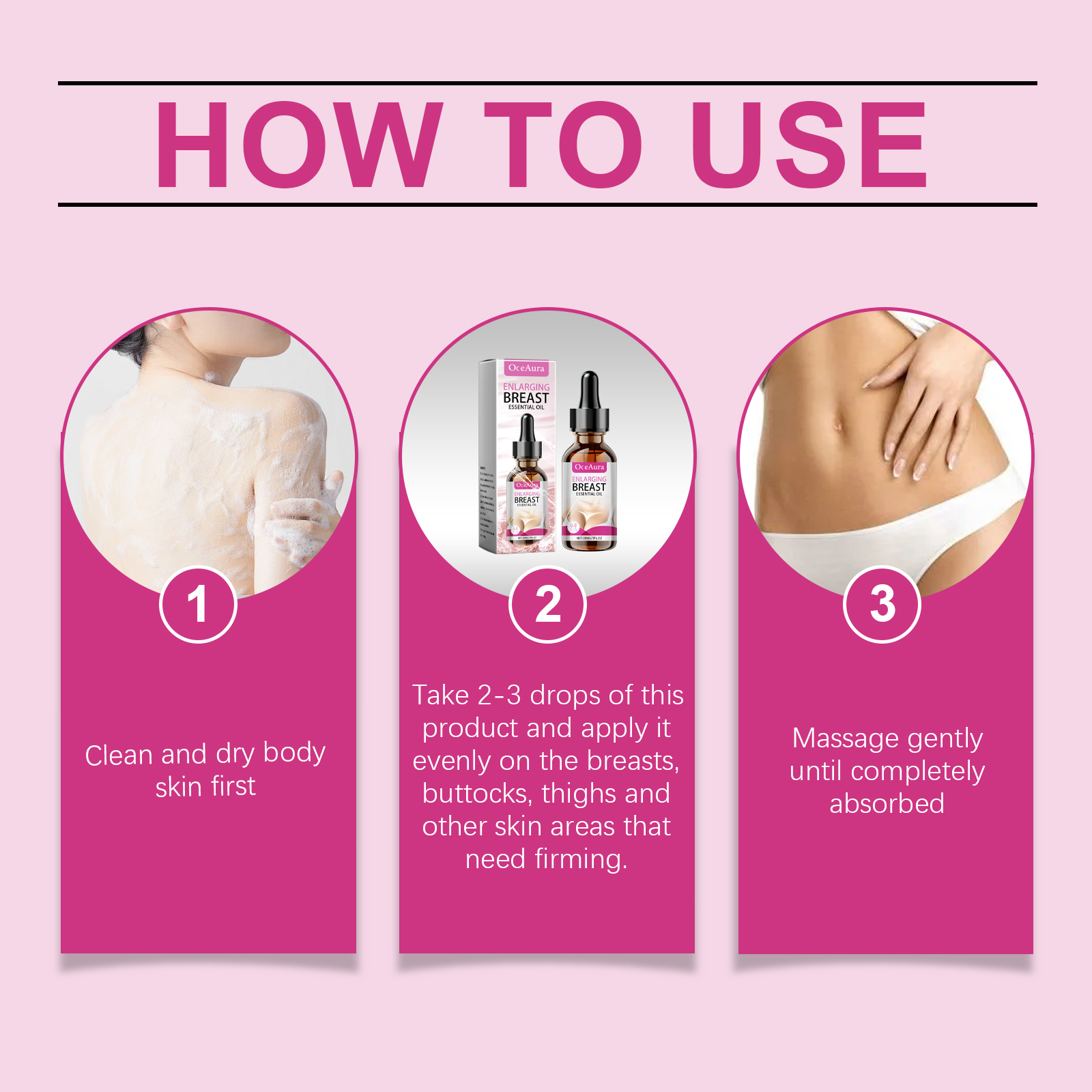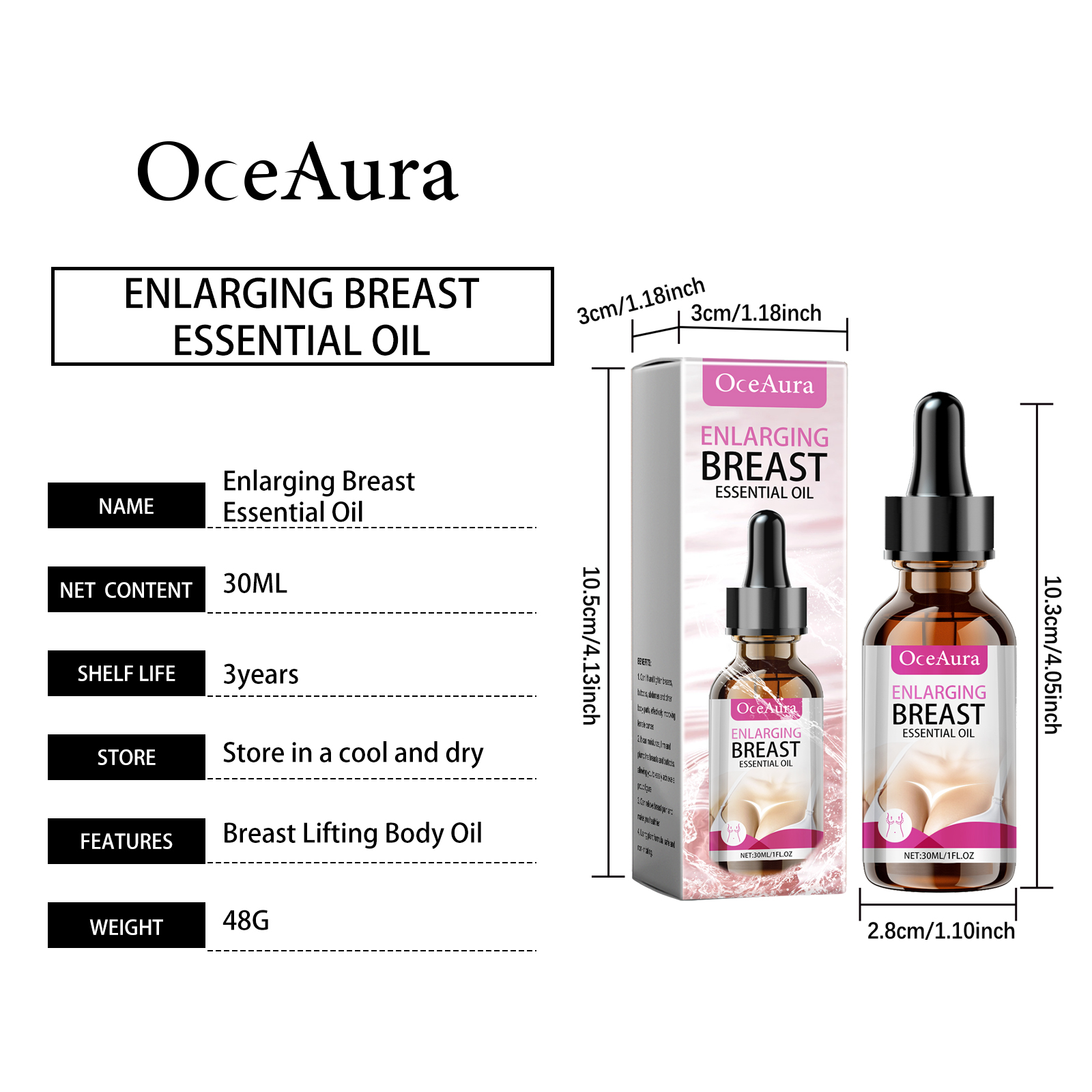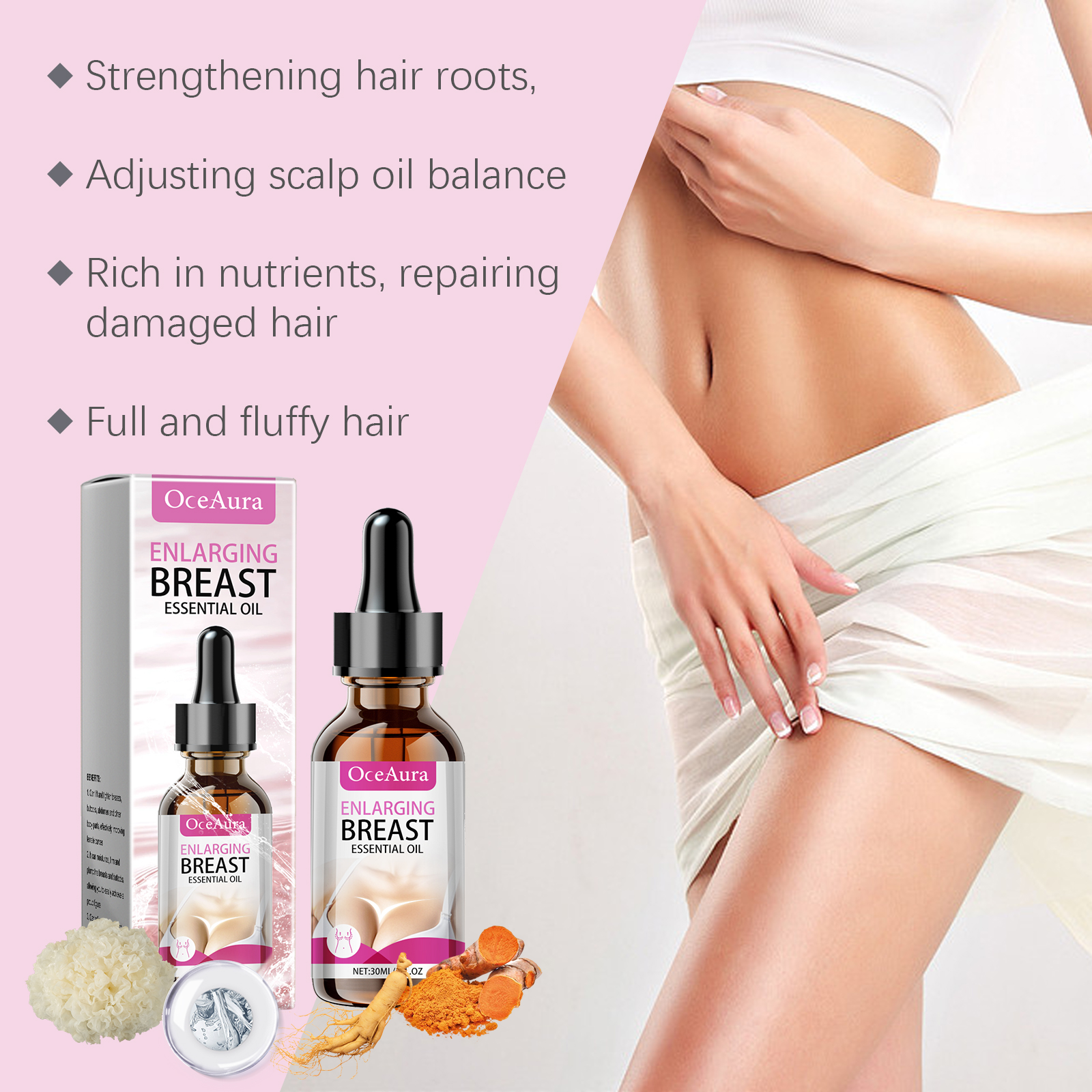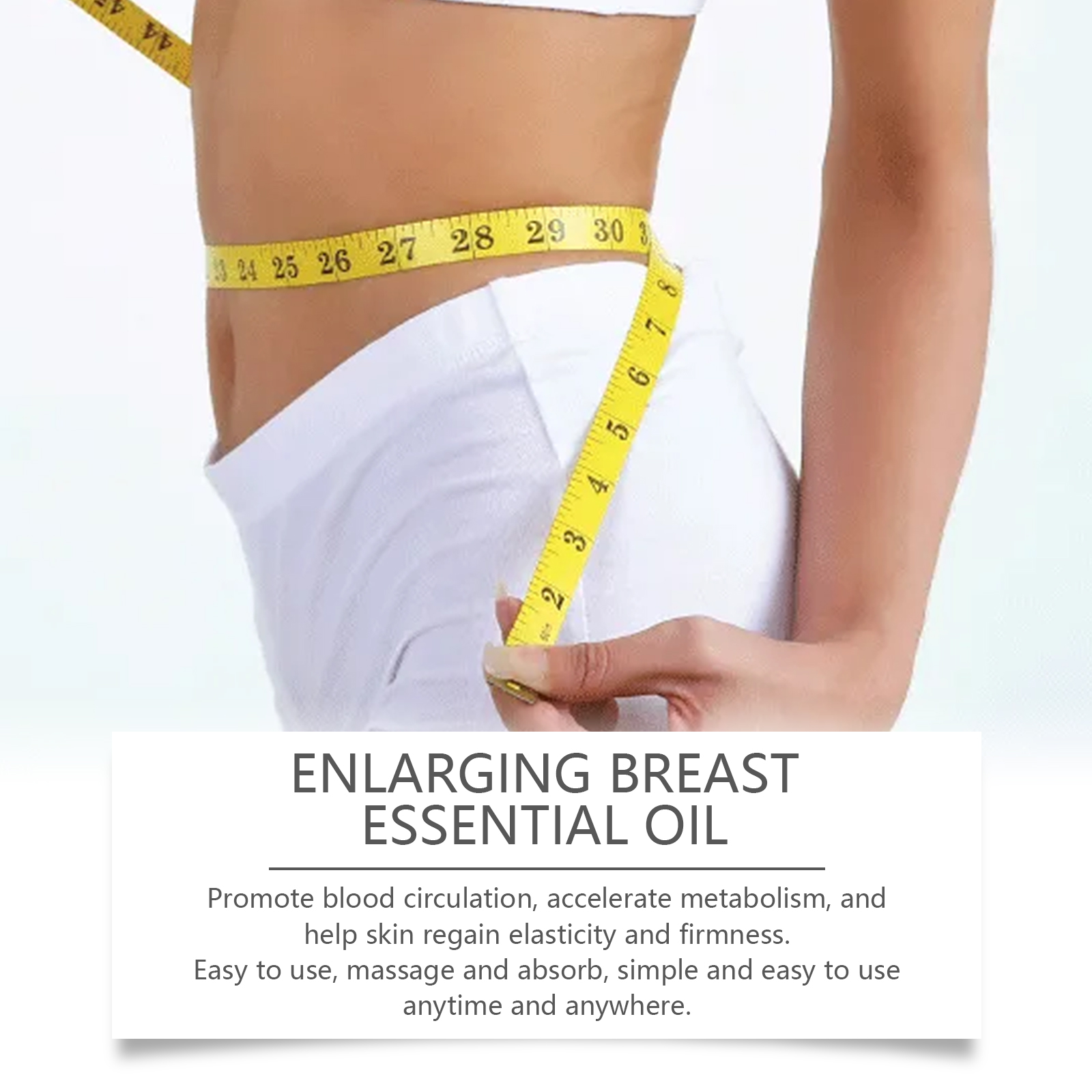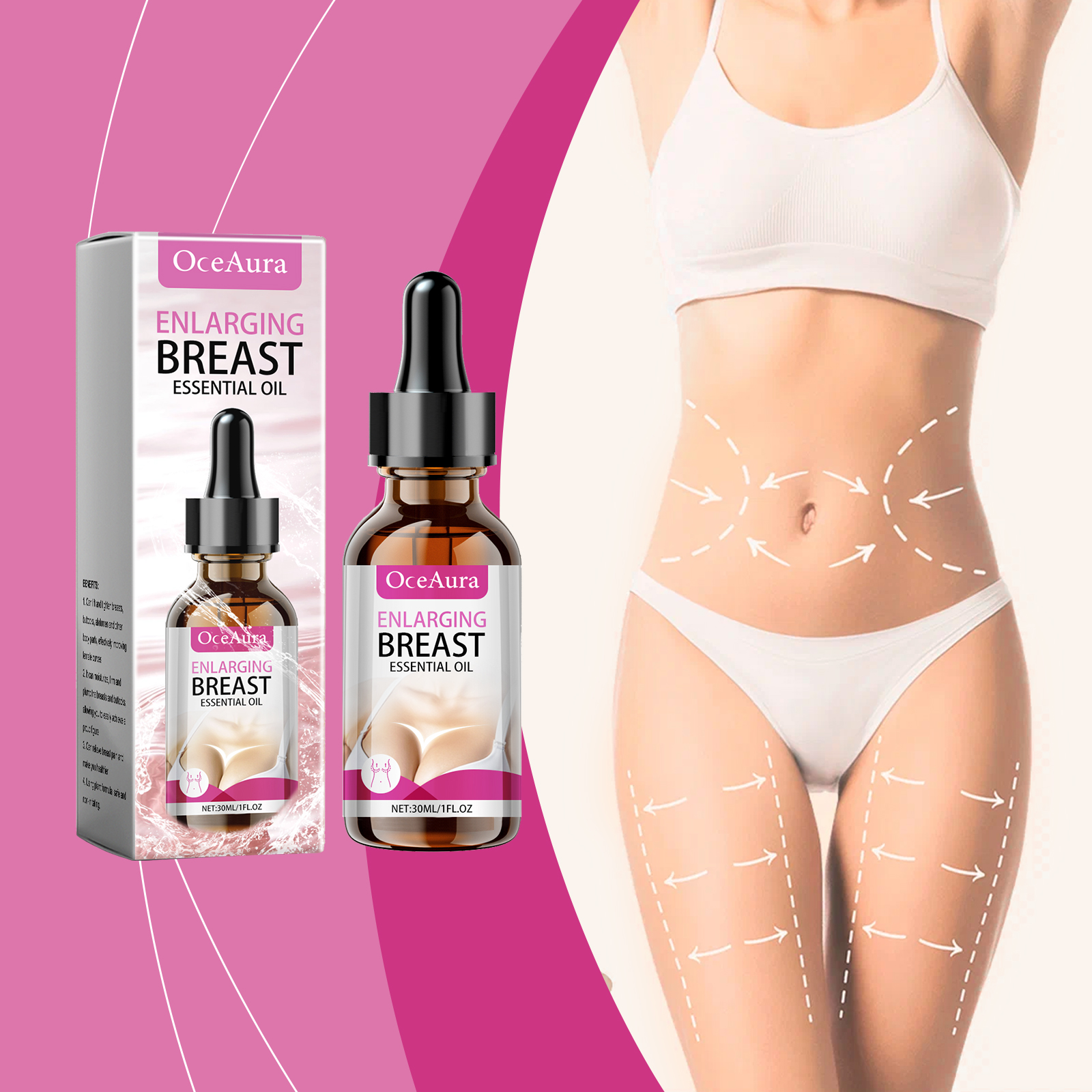 Our Collagen body essential oil contains hydrolyzed collagen, white fungus extract, and turmeric root extract. It can improve blood circulation, speed up metabolism, and help the skin regain elasticity and firmness. Easy to use, easy to massage, easy to use anytime, anywhere. Active ingredients promote collagen production and improve skin elasticity. Its use method is very simple: 1. First clean and dry the body skin; 2. Take 2-3 drops of this product and evenly apply to the chest, thighs and other skin parts that need to be tightened; 3. Gently massage until completely absorbed. Collagen Body Essential Oil The gentle essential oil ingredients penetrate deeply to help firm the skin on the breasts, hips, arms and thighs.