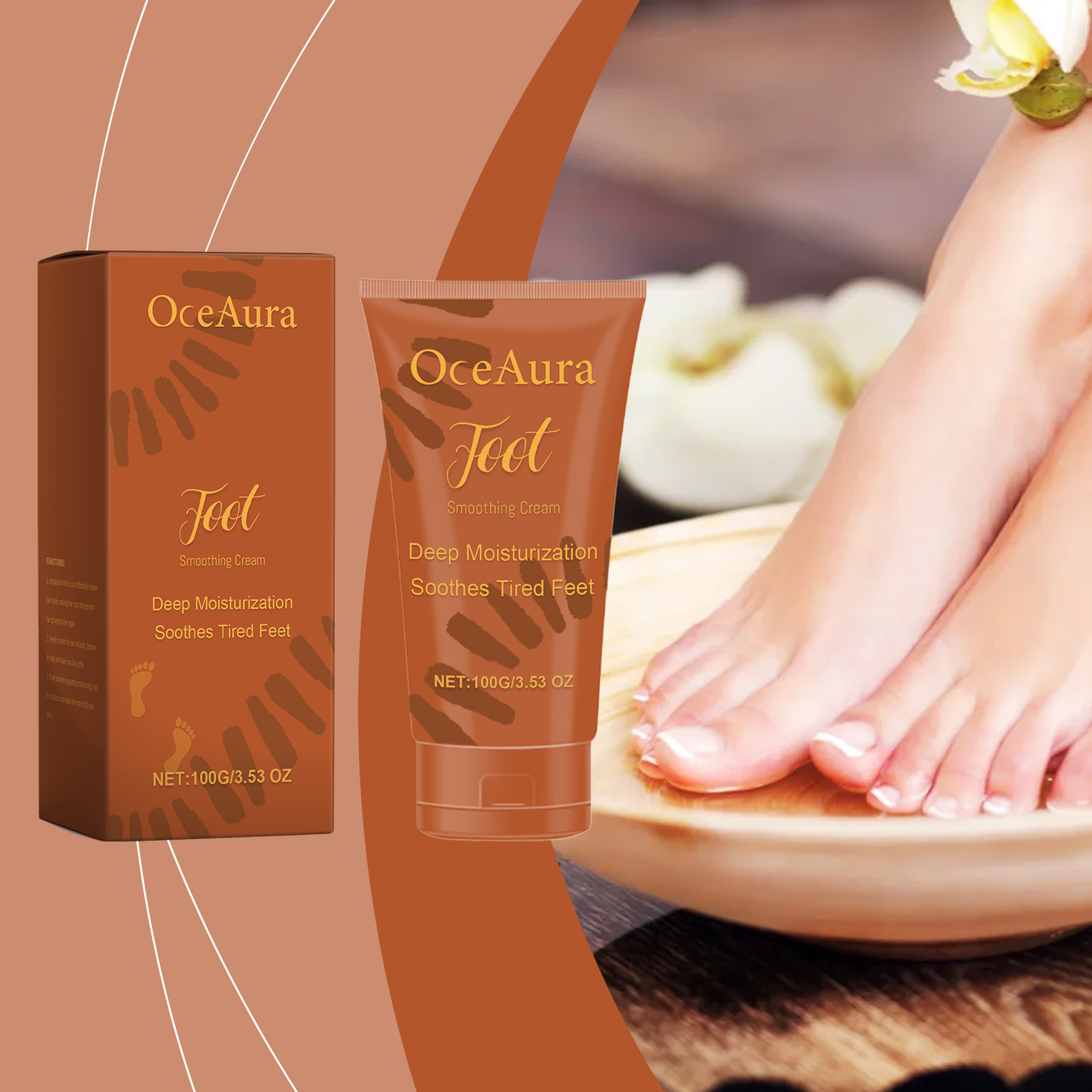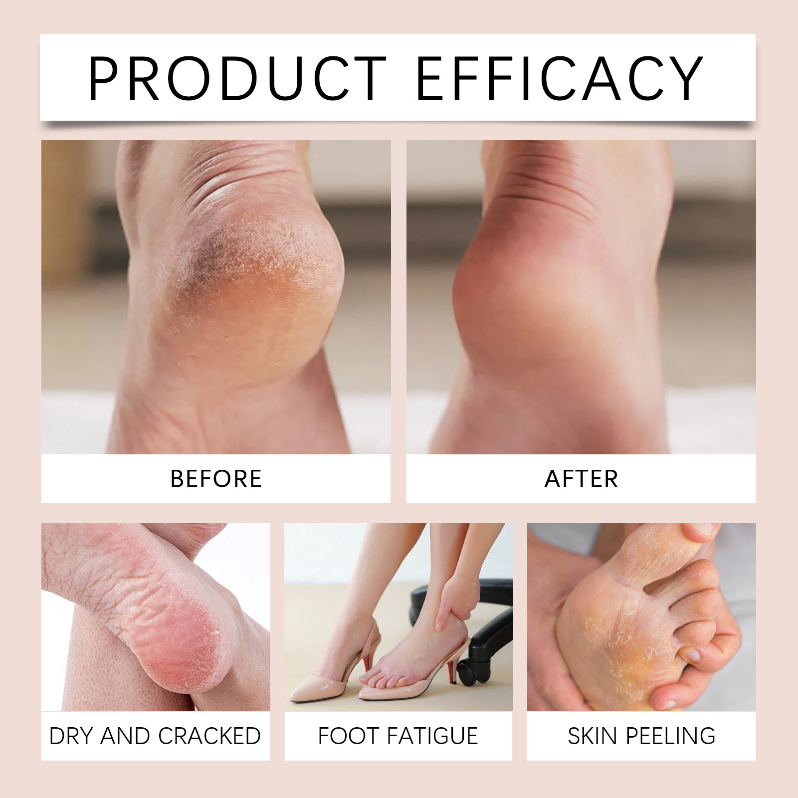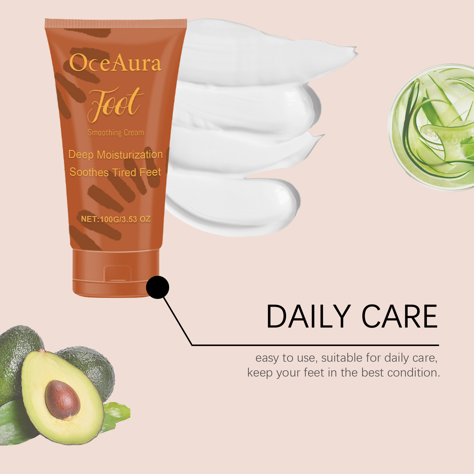 Our foot moisturizing cream contains coconut oil, avocado oil, aloe vera extract. It can effectively repair rough, chapped foot skin and help restore health and smoothness. Its use method is very simple: 1. Clean foot skin and keep dry; 2. Apply appropriate amount to heel evenly. Feet, ankles, elbows, legs and other parts of the body. 3. Gently massage until fully absorbed. Continuous moisturizing improves dryness and keeps feet soft for a long time.