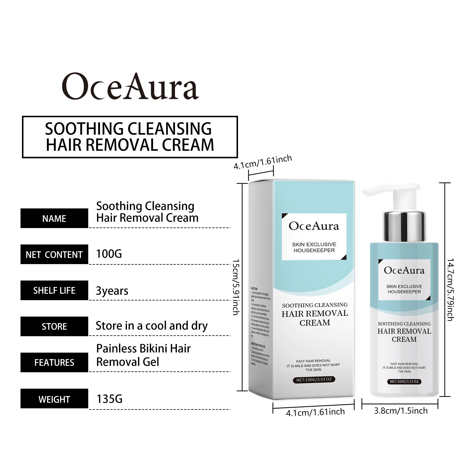 OceAura Gentle Treatment Hair Removal Cream Armpit Leg Armpit Leg Hair All Body Hair Removal Treatment Spray