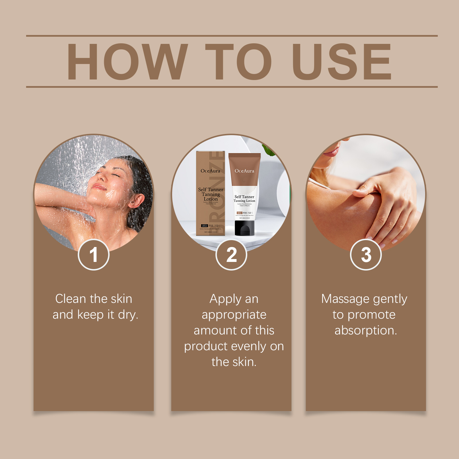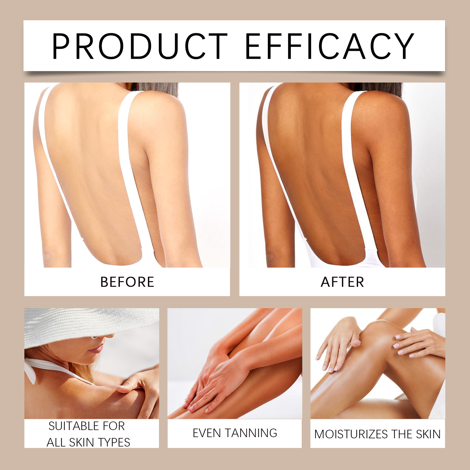 Our hydrating, moisturizing, sun-proof and tanning cream is carefully formulated with glycerin, mineral oil and glycerin stearate. Designed specifically for easily creating a wheat-colored skin. The usage method is extremely convenient: clean the skin and keep it dry. Apply an appropriate amount of this product evenly to the skin. Gently massage to promote absorption. And it can easily create a summer style at any time and any place. Use it before going out and don't worry about sunny weather.