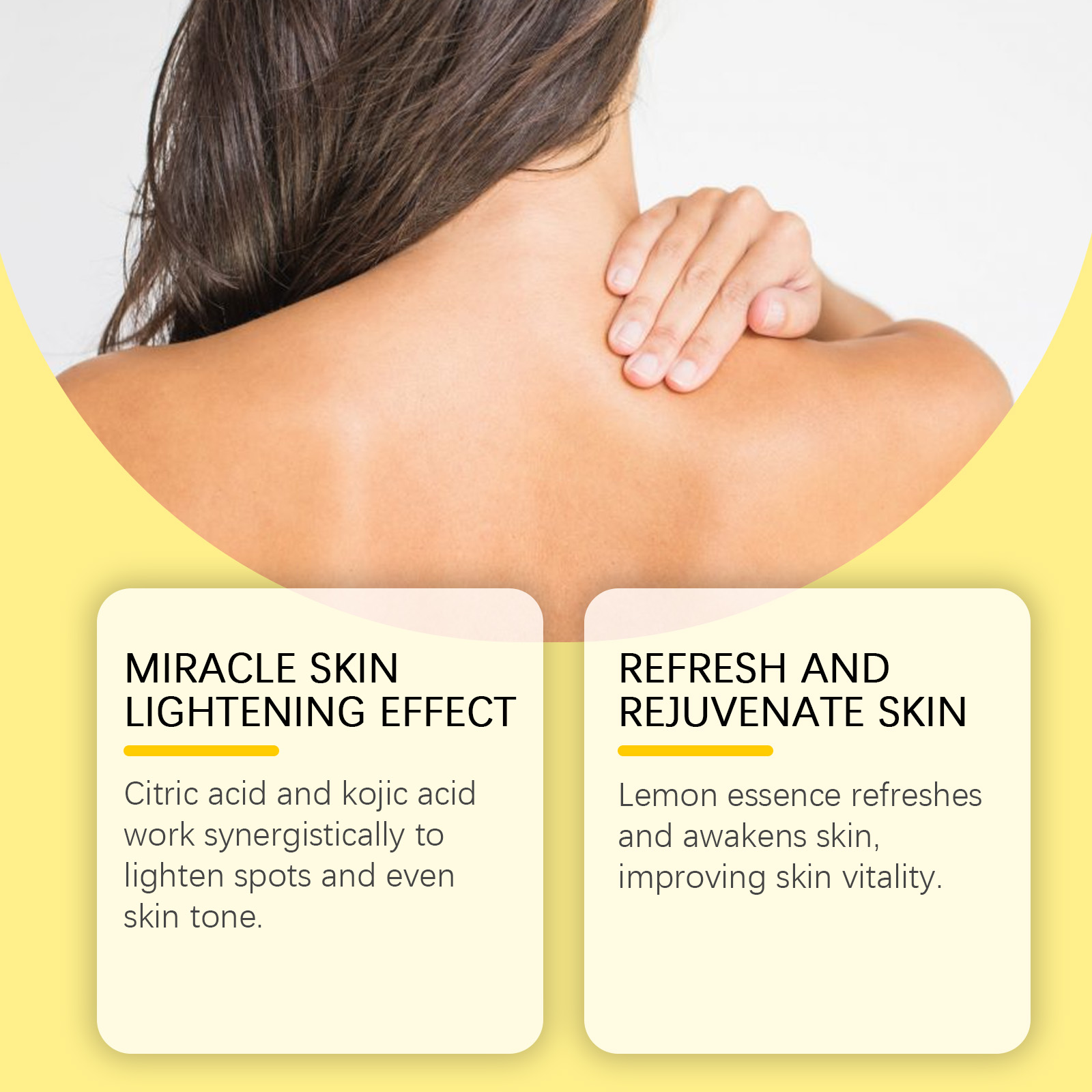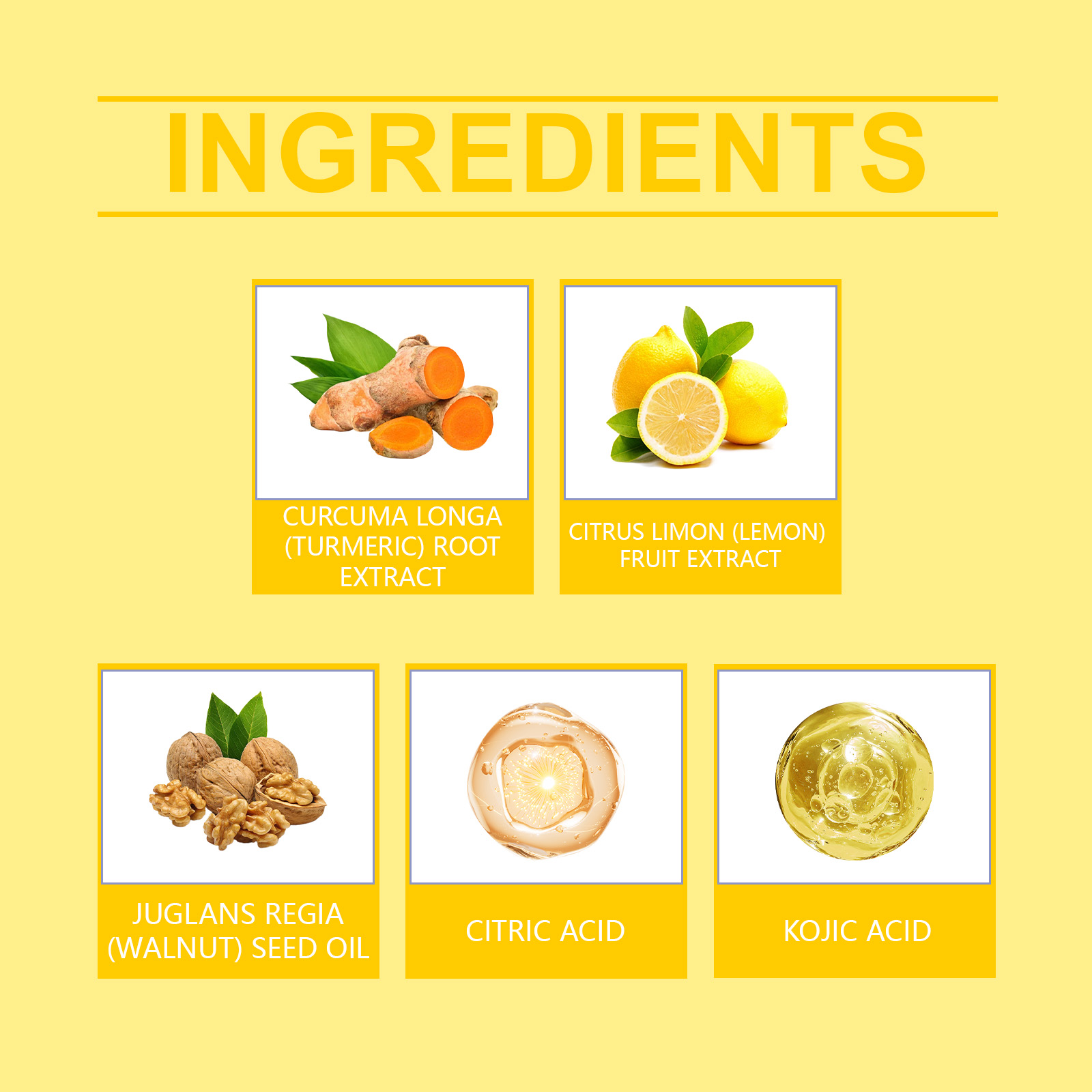 Our lemon turmeric acid soap contains turmeric root extract, lemon extract, walnut seed oil. It can target dark areas, effectively improve uneven skin, restore even translucent skin. Its use method is very simple: 1. Moisturize the skin with warm water; 2. Lather the palms of your hands with soap, gently massage it into your body, and clean you! Body with foam. 3. Rinse foam with water. Citric acid and kojic acid in lemon turmeric acid soap work together to lighten spots and even skin tone. Lemon essence refreshes and awakens the skin. Improves skin vitality.