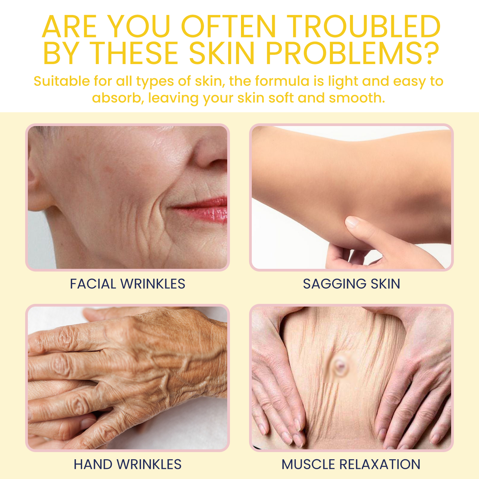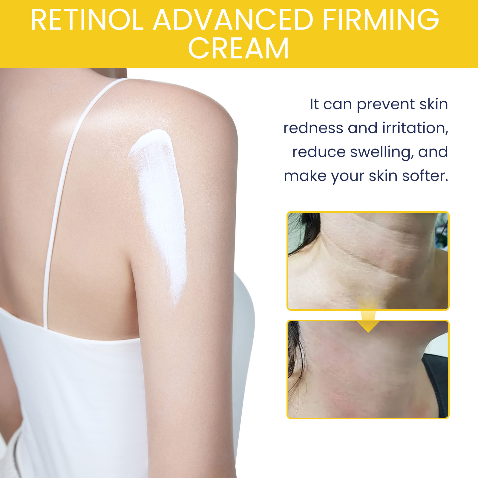 Our Retinol Advanced Firming Cream contains Retinol, Camellia Sinensis Leaf Extract, Chamomilla Recutita(Matricaria) Flower Extract. It can help reduce deep wrinkles, tighten loose skin, make your skin firmer and look younger, replenish moisture and keep skin moisturized. Its use method is very simple: clean the skin, and keep dry, take appropriate amount of this product evenly applied to the skin, gently massage with the palm of the hand until completely absorbed. It prevents skin redness and irritation, reduces swelling, and makes your skin soft.