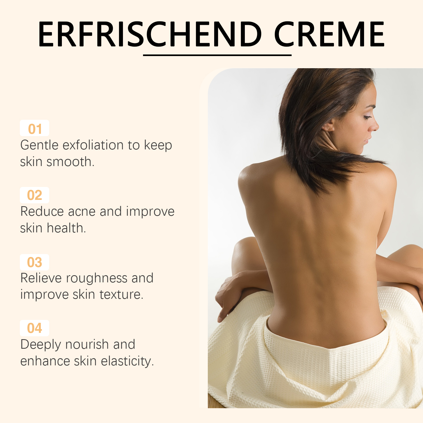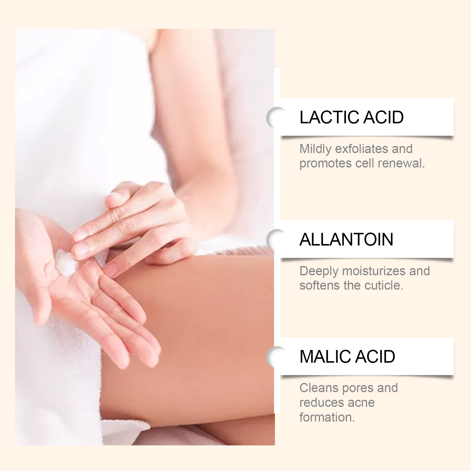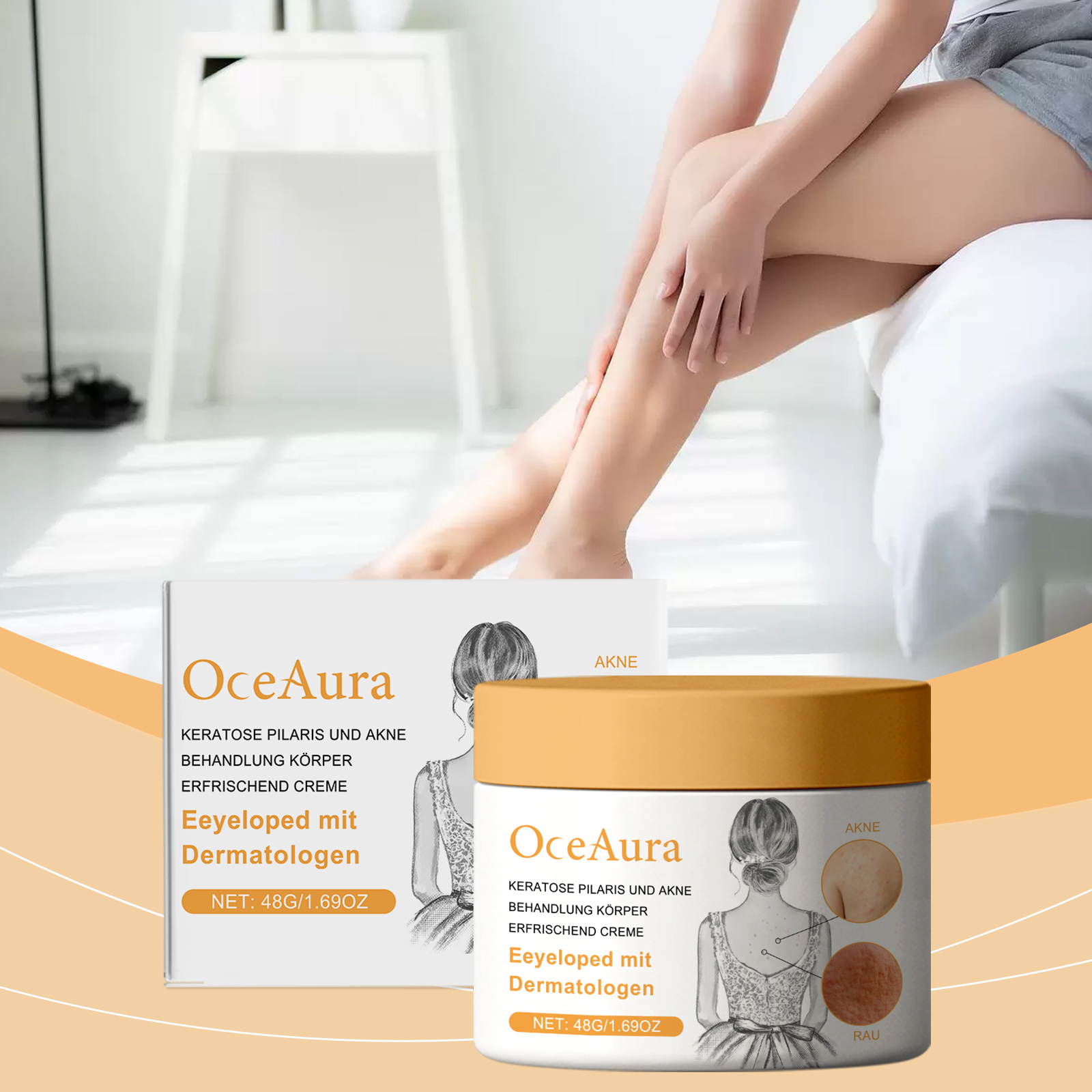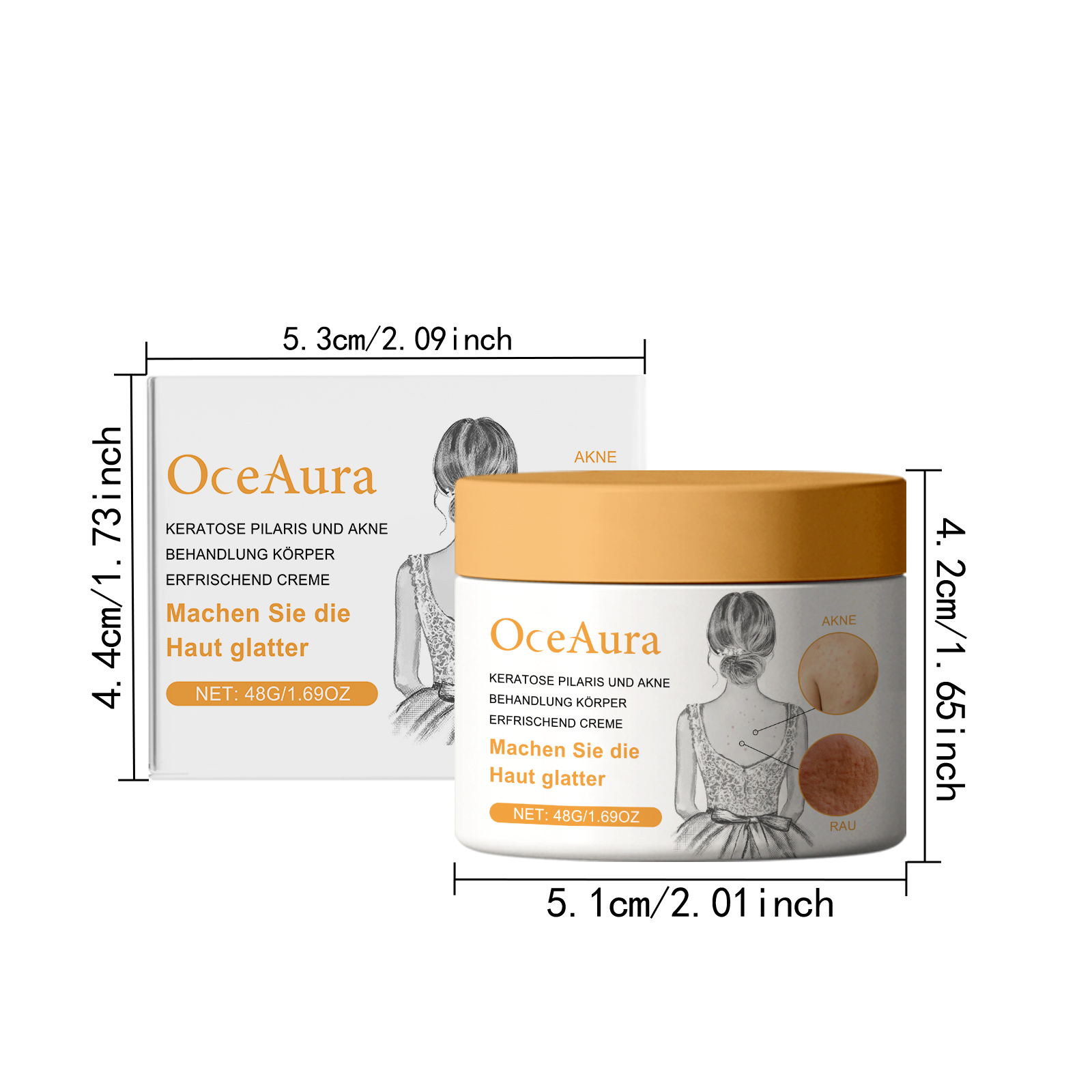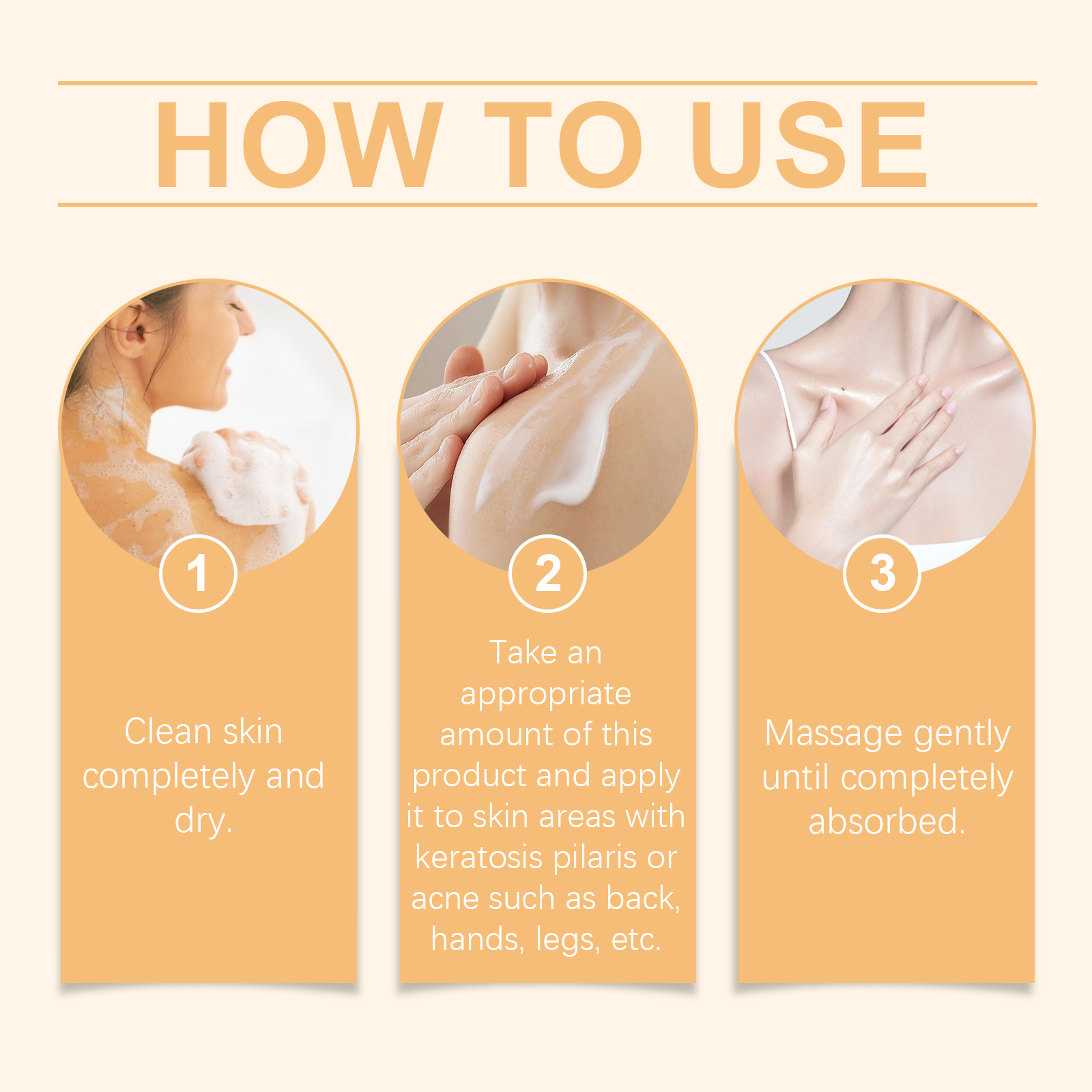 Our skin care cream contains tocopherol (vitamin E), lactic acid, allantoin. It removes dull cuticles, brightens skin and leaves skin glowing. Promotes cell renewal, improves skin texture and leaves skin smooth and delicate. Its application is simple: 1. Thoroughly clean and dry your skin. 2. Usage: Apply appropriate amount of the product on the skin with keratosis pilaris or acne, such as the back of the hands, legs, etc. 3. Gently massage until completely absorbed. Deep clean pores, prevent clogged pores, reduce blackheads and whiteheads.