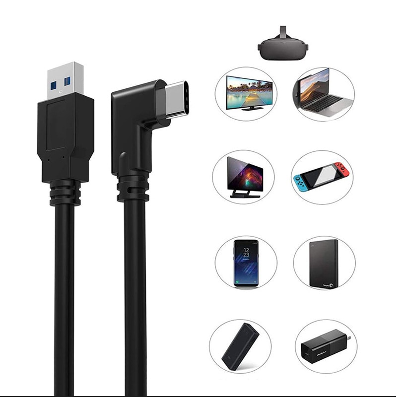 - USB C 90 Degree Angle End so it doesn't stick out & is easy to use with the Quest VR headset.