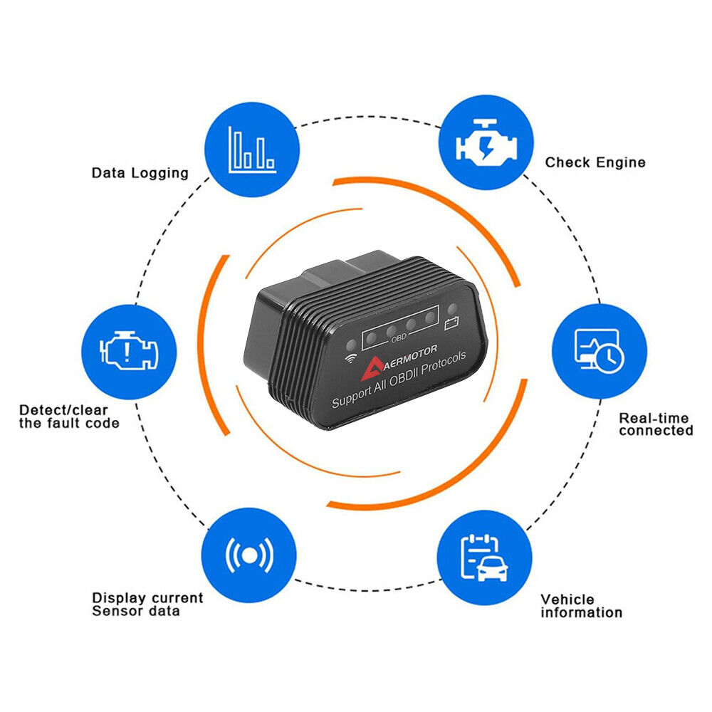 ODB2 OBDII Car Diagnostic Scanner Tool Error Code Reader ELM327 For Android & PC