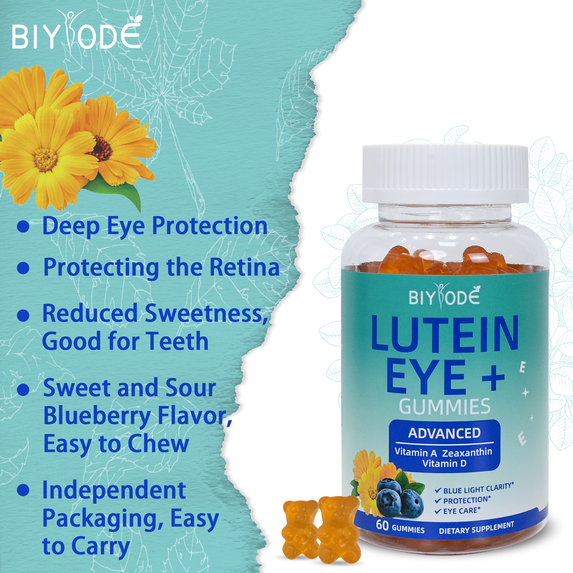 Lutein, Mutivitamis: vitamin A, vitamin D, Herbal extract: Bilberry,Grapeseed Extract, Wolfberry |