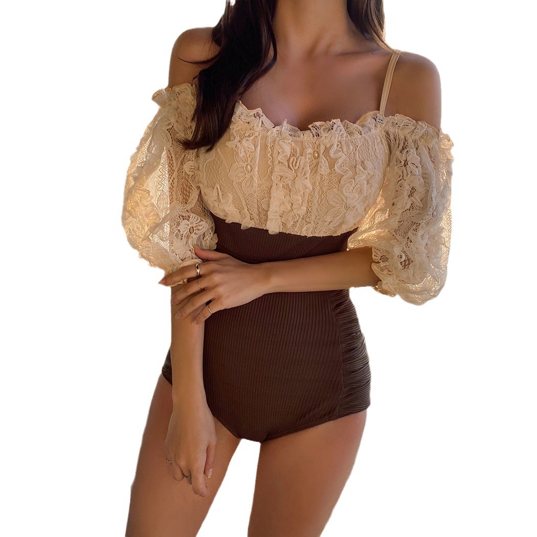 Off-shoulder One-piece High Waist Slim Fit Slimming Conservative Cover Belly