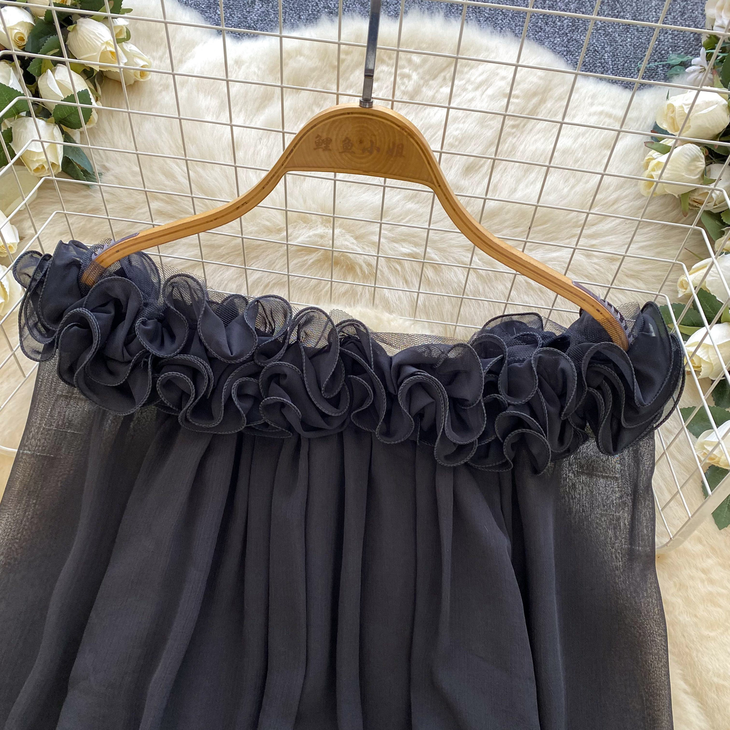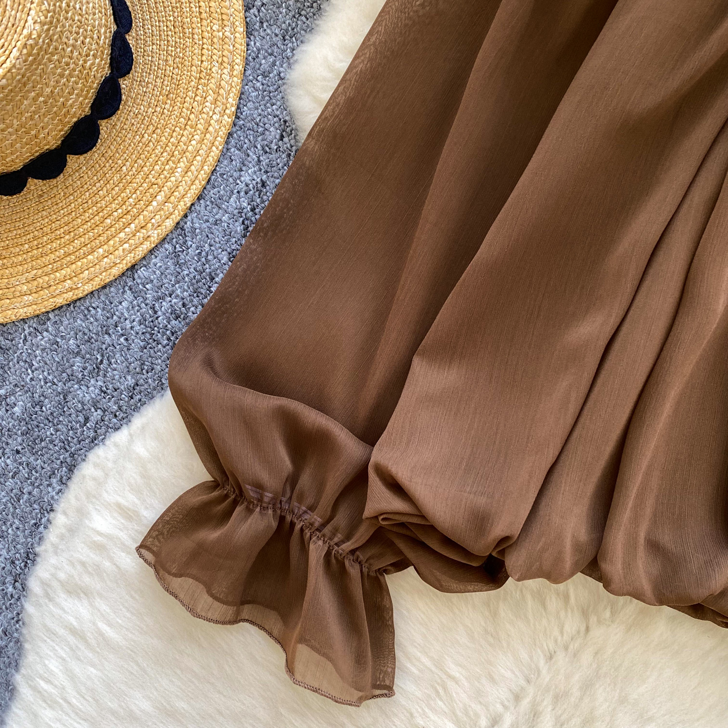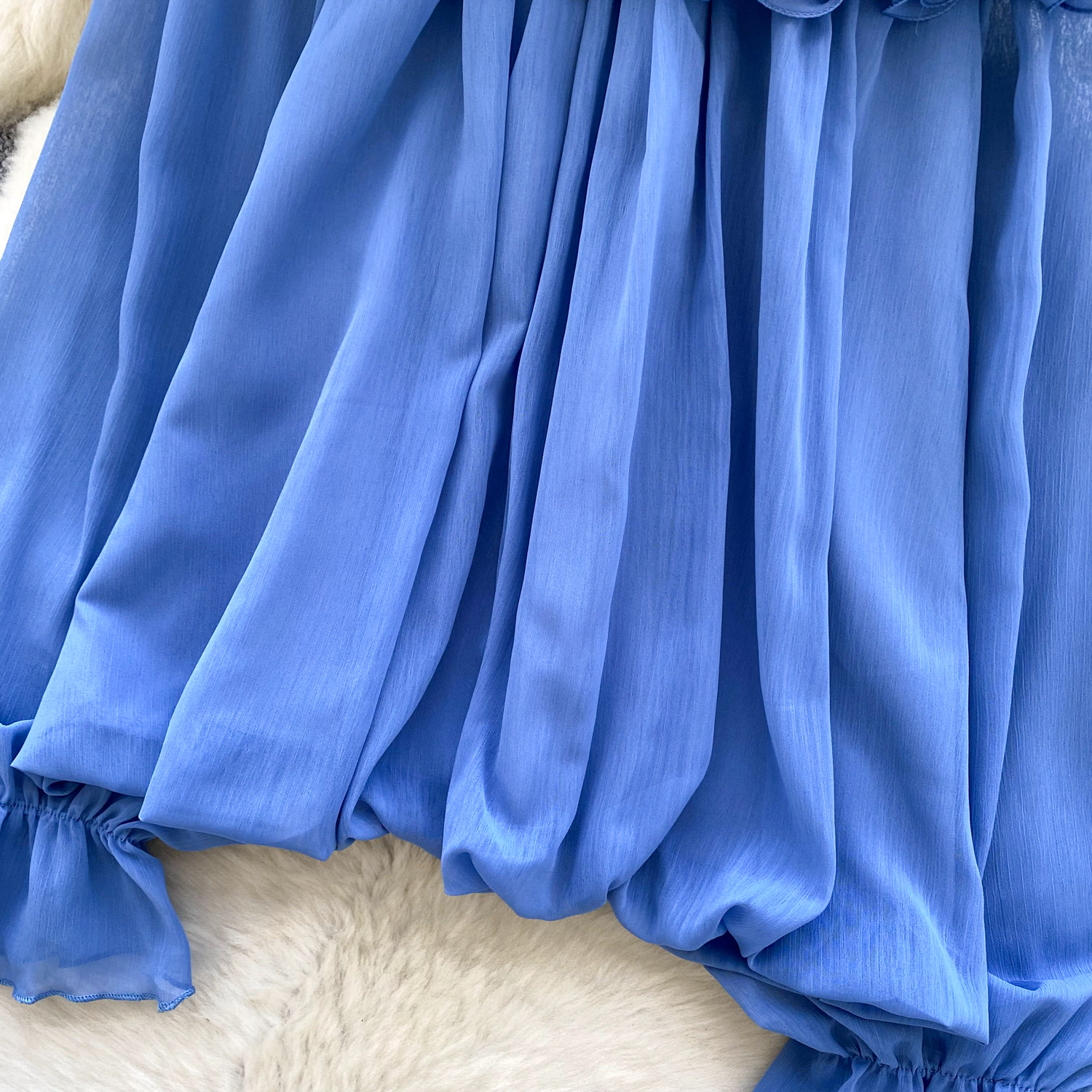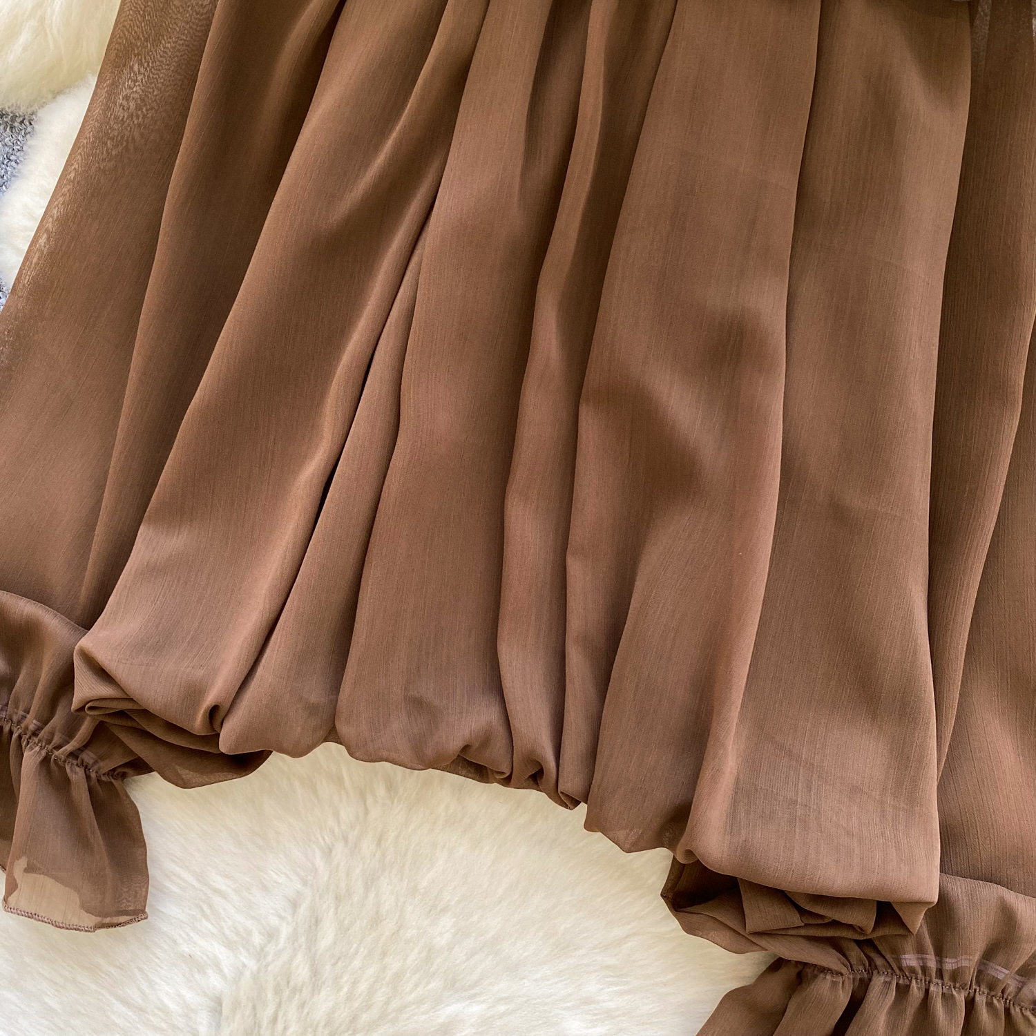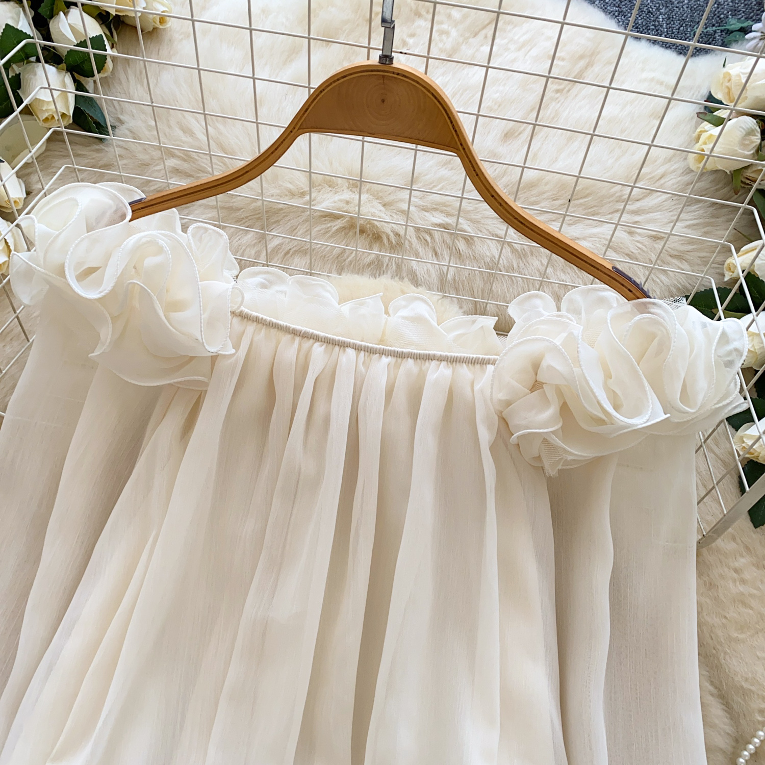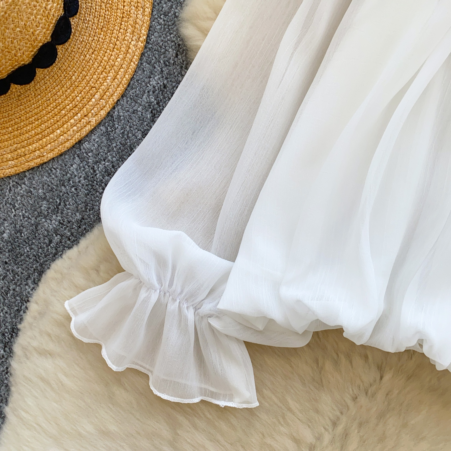 Off-Shoulder Ruffle-trimmed Panel Long-sleeve Chiffon Shirt For Women