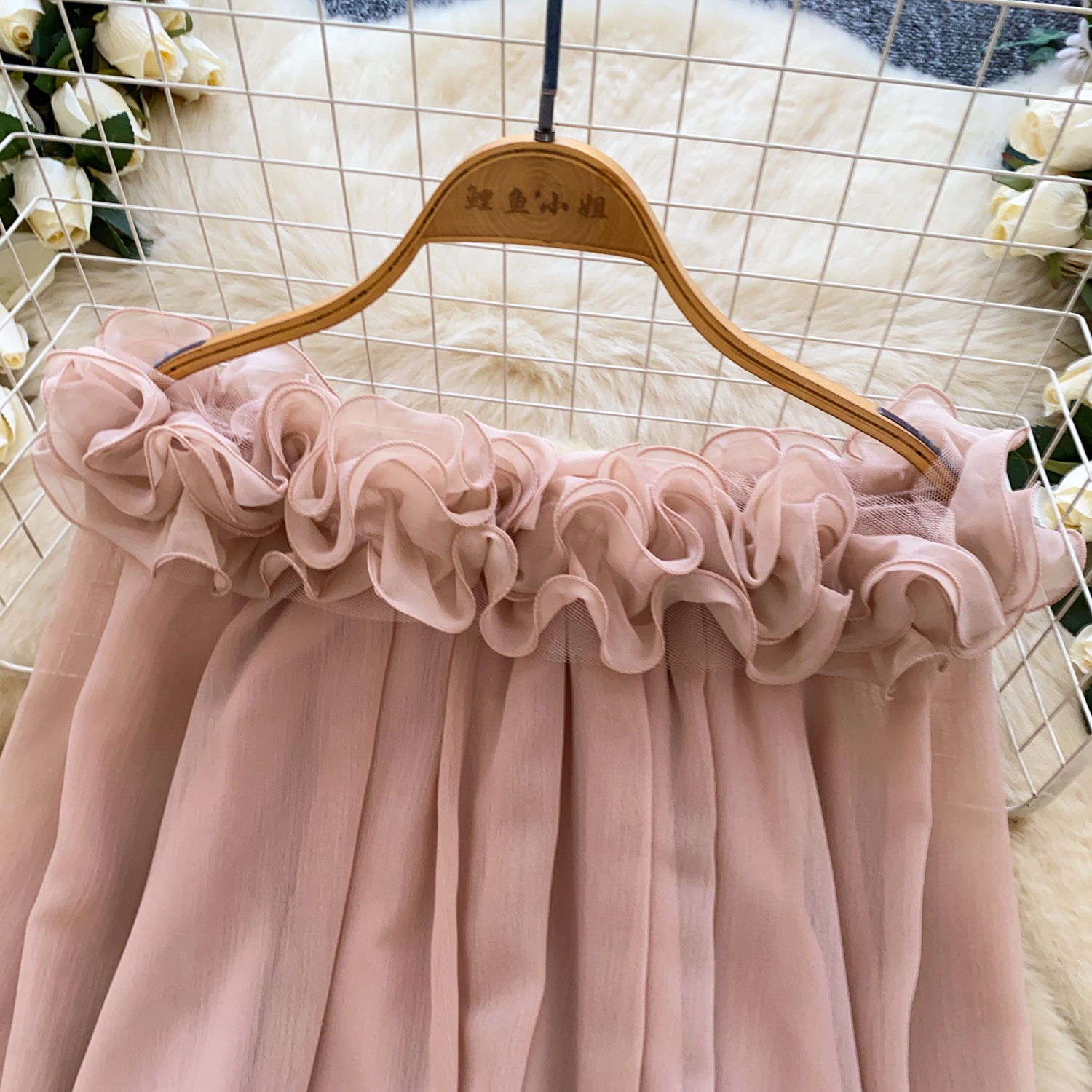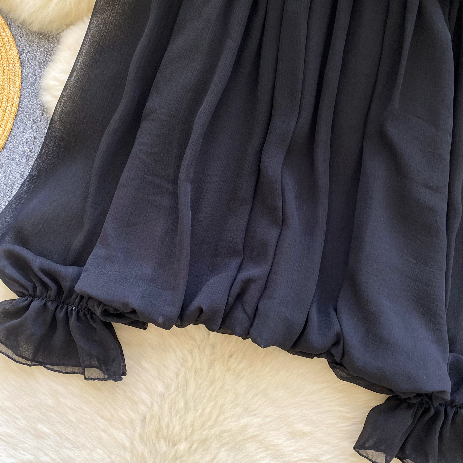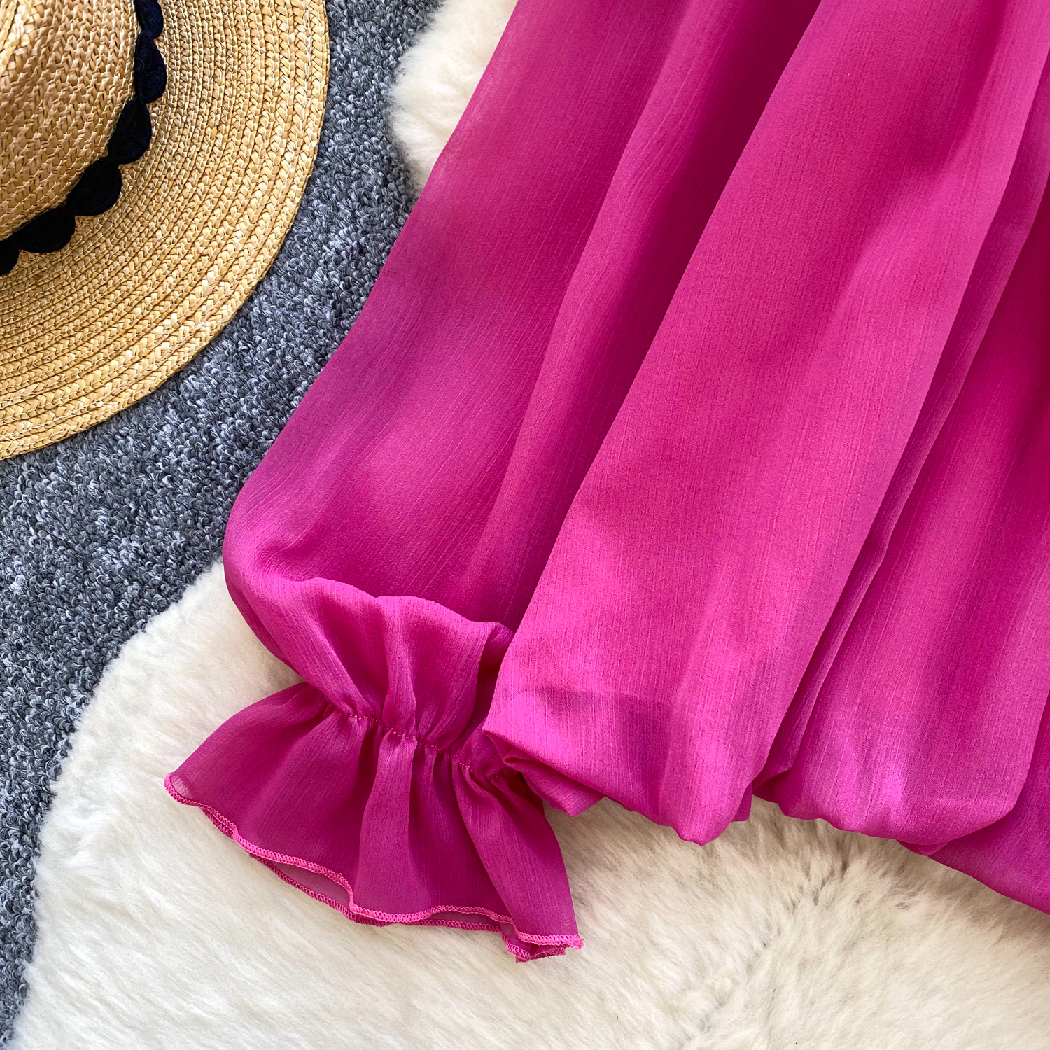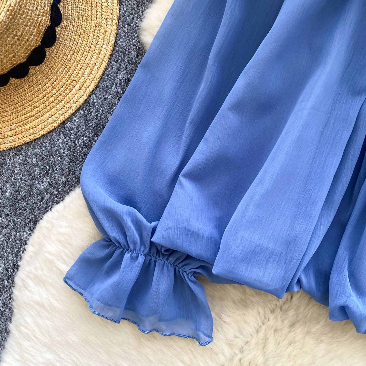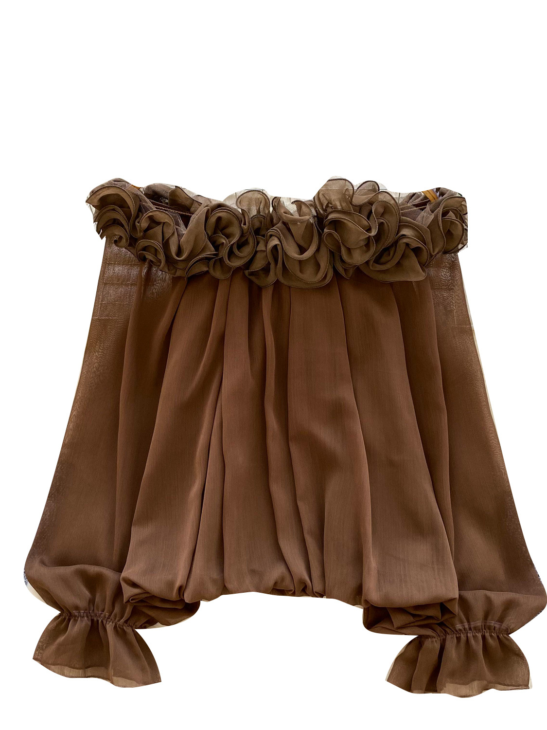 Off-Shoulder Ruffle-trimmed Panel Long-sleeve Chiffon Shirt For Women