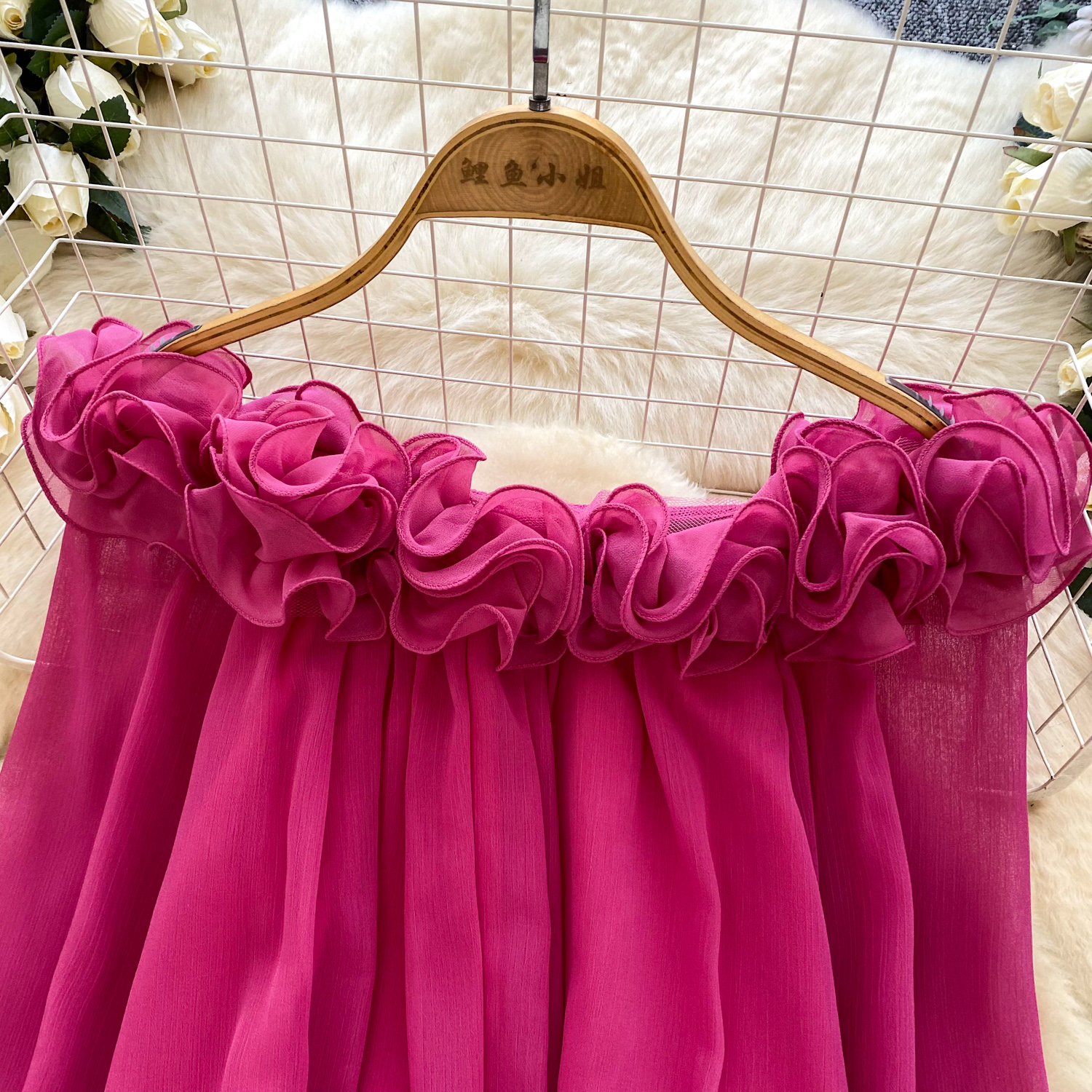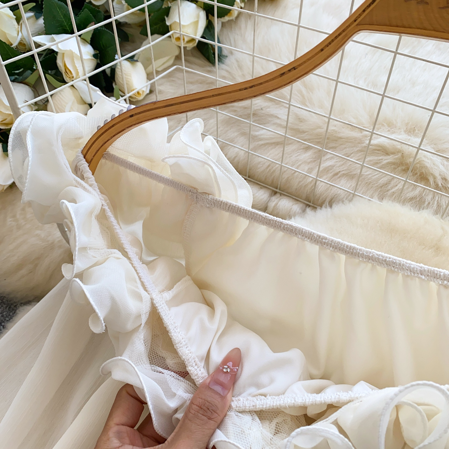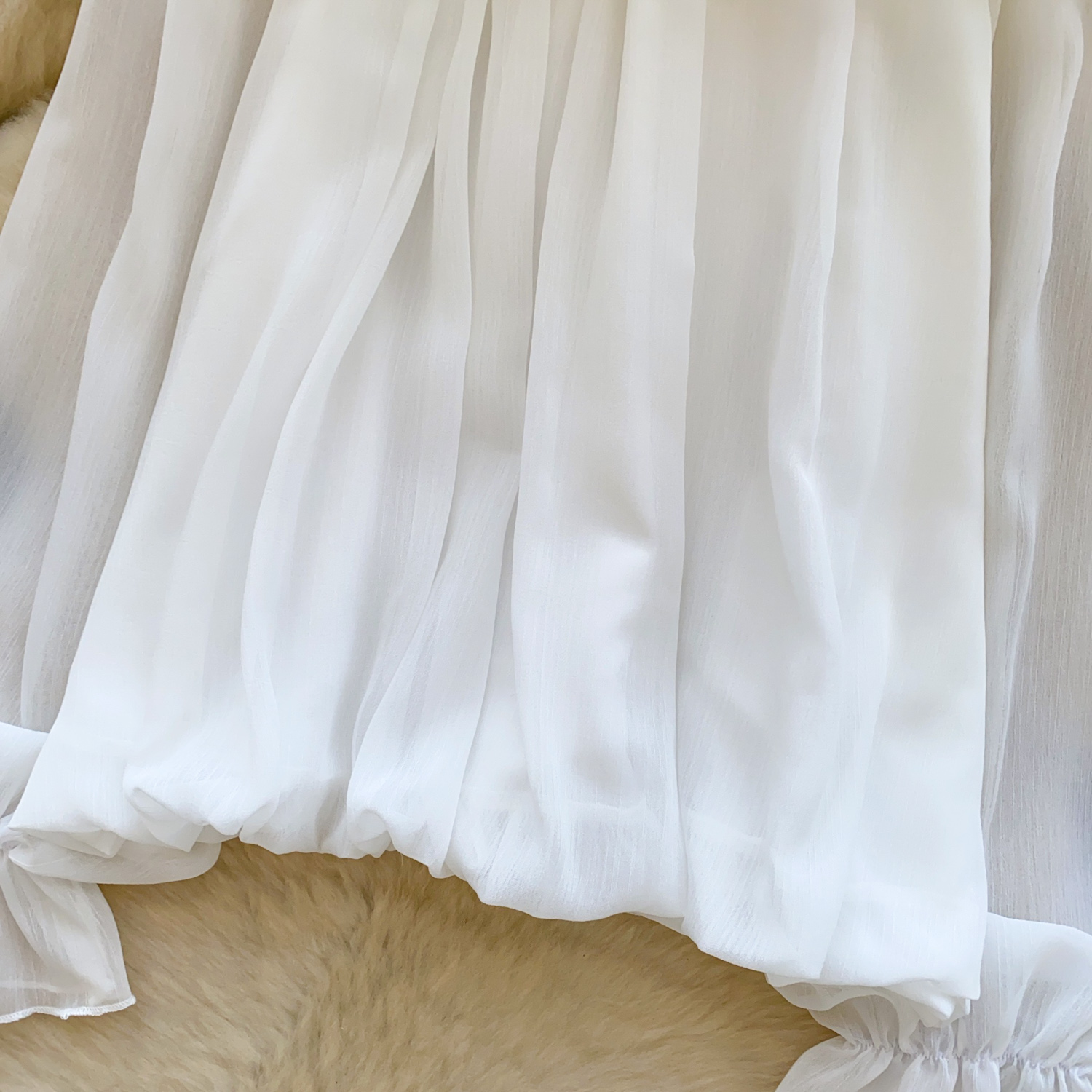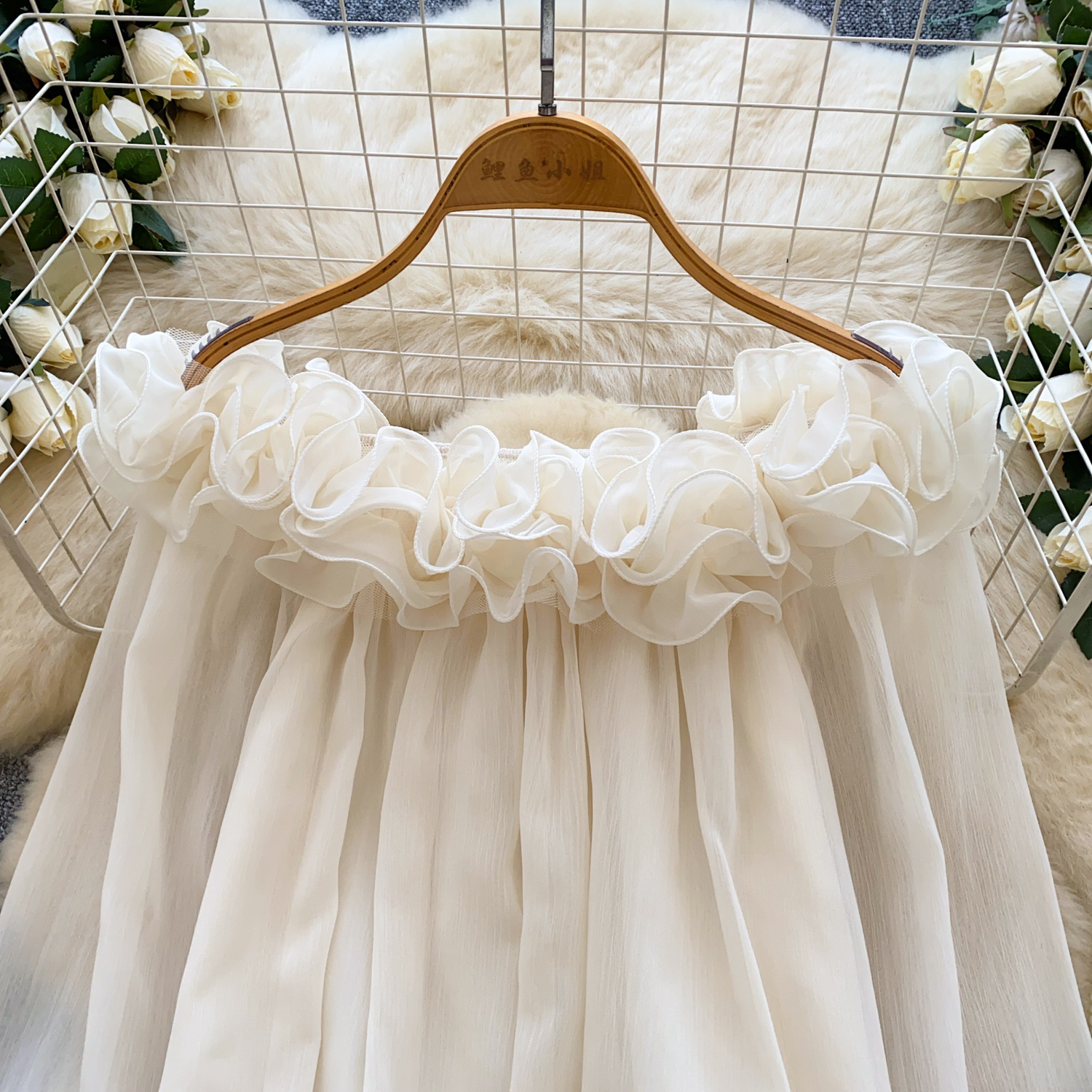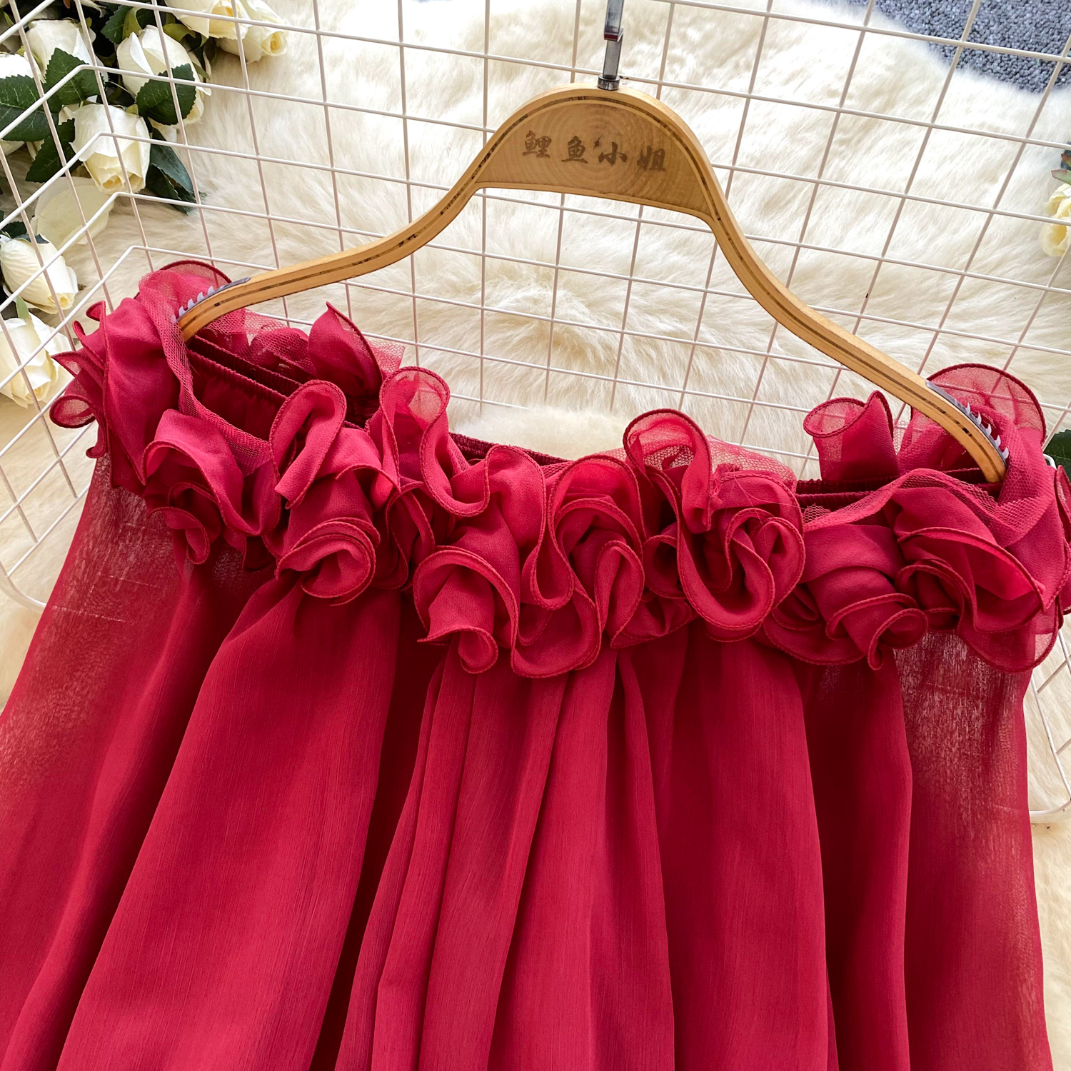 Off-Shoulder Ruffle-trimmed Panel Long-sleeve Chiffon Shirt For Women