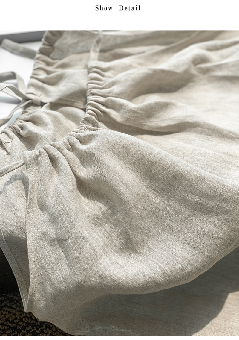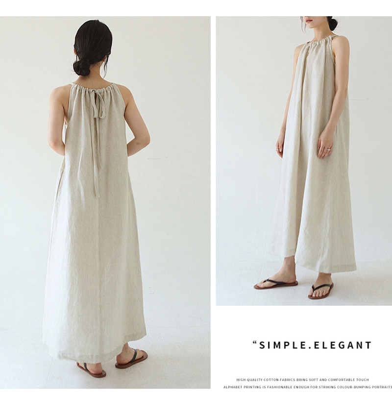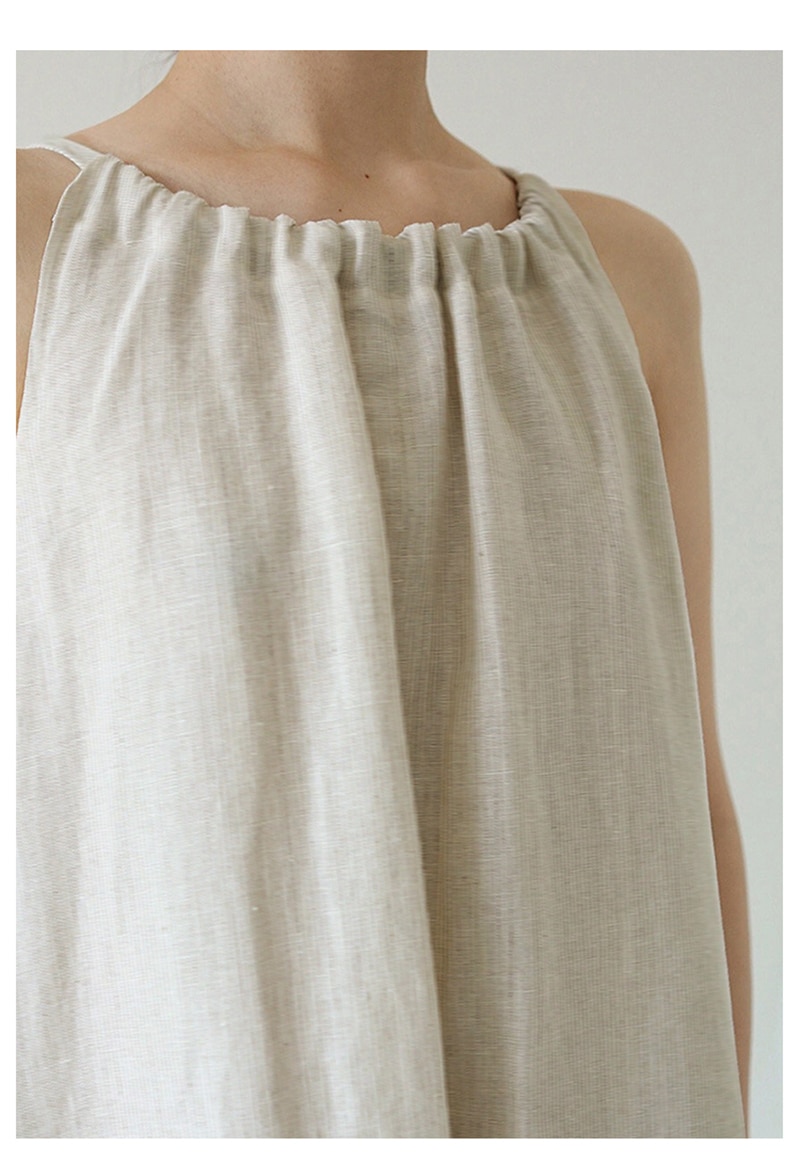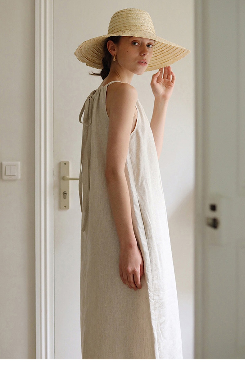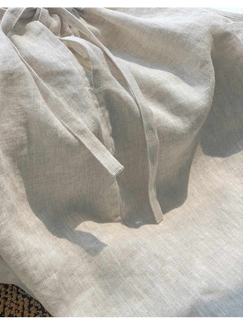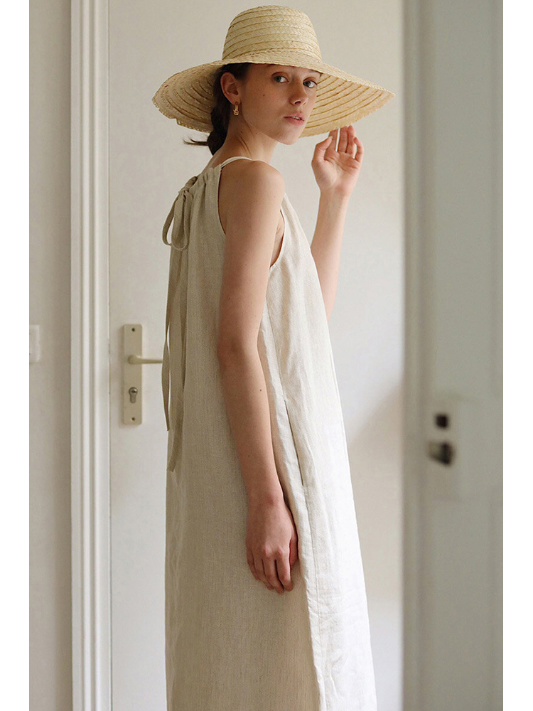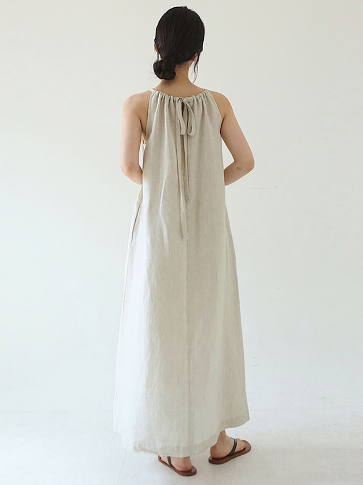 Off-the-shoulder Cotton And Linen Dress With Loose Tie