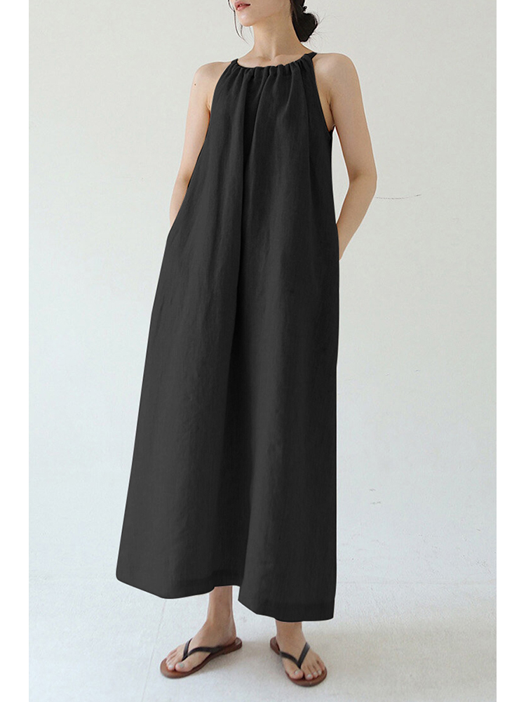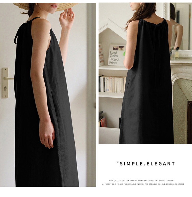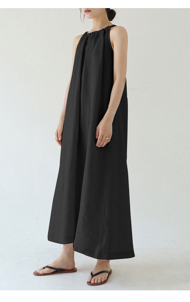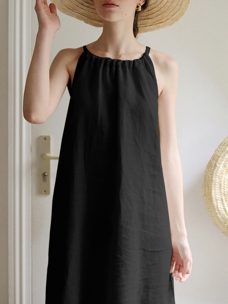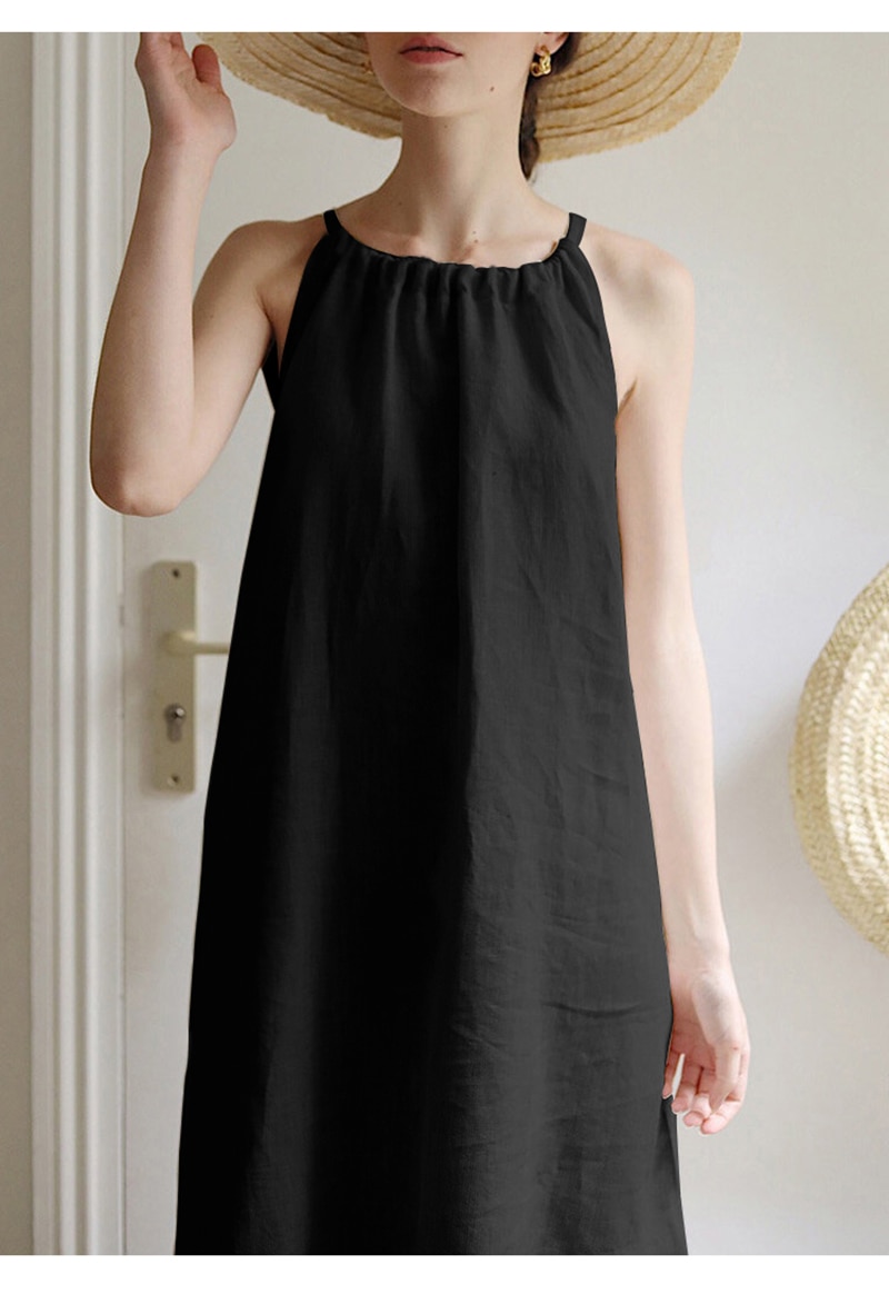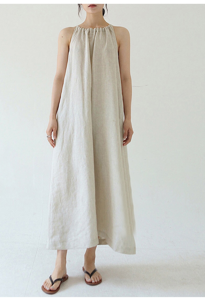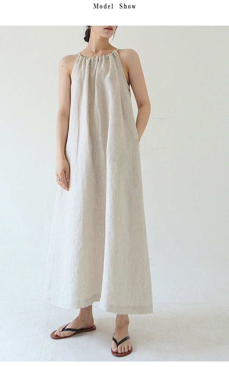 Off-the-shoulder Cotton And Linen Dress With Loose Tie