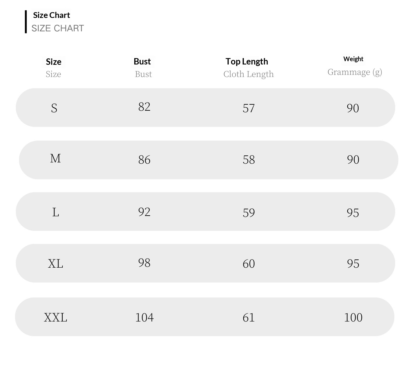Sizes: S, M, L, XL, XXL