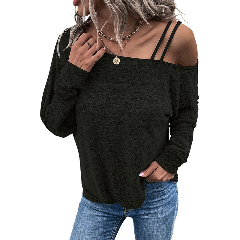 Off-the-shoulder Lace Up All-match Slim Fit Slimming Sweatshirt