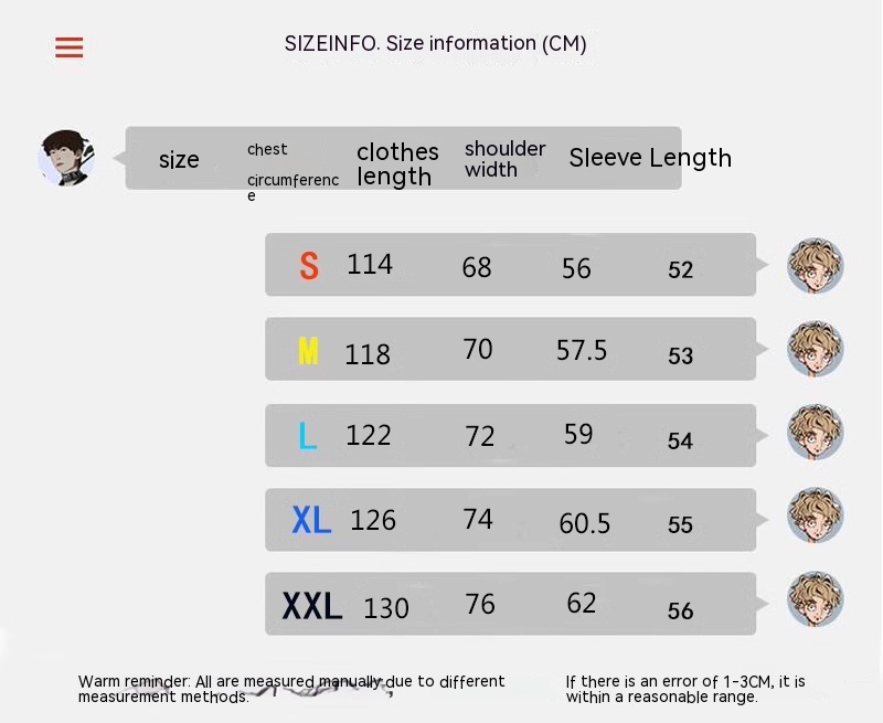 1. Asian sizes are 1 to 2 sizes smaller than European and American people. Choose the larger size if your size between two sizes. Please allow 2-3cm differences due to manual measurement. 2. Please check the size chart carefully before you buy the item, if you don't know how to choose size, please contact our customer service. 3.As you know, the different computers display colors differently, the color of the actual item may vary slightly from the following images.