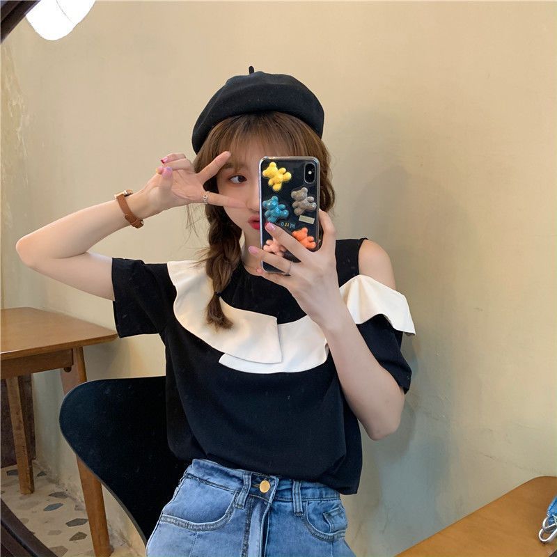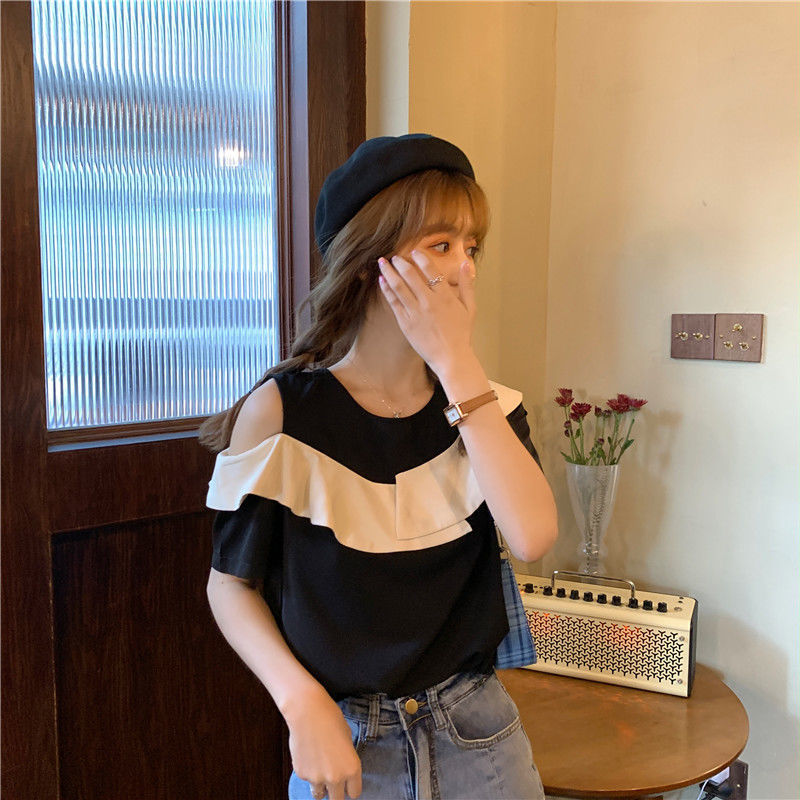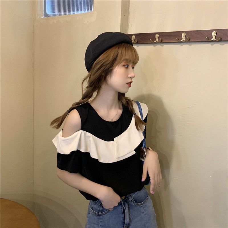 Off-the-shoulder Short-sleeve Blouse With Ruffles