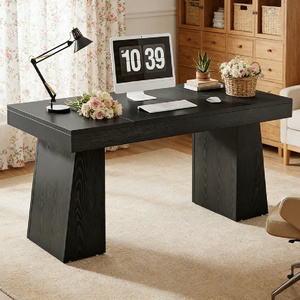 What sets this computer desk apart from the rest is its double trapezoid base. It's key to the desk's stability and adds some serious visual appeal. This feature turns this normal desk into a style statement that'll boost the look of any workspace.