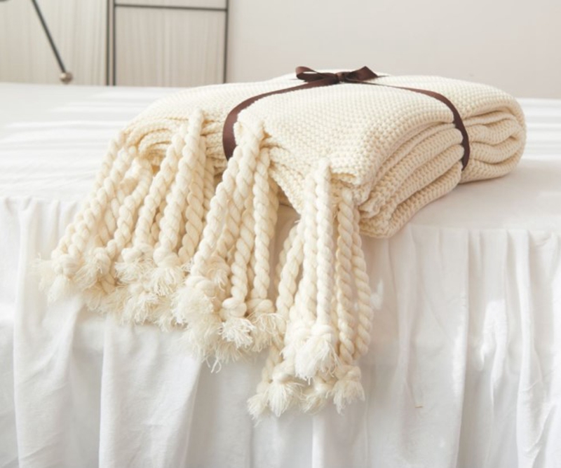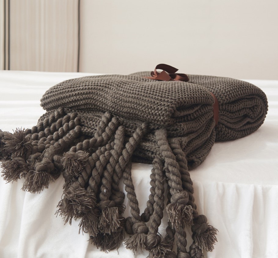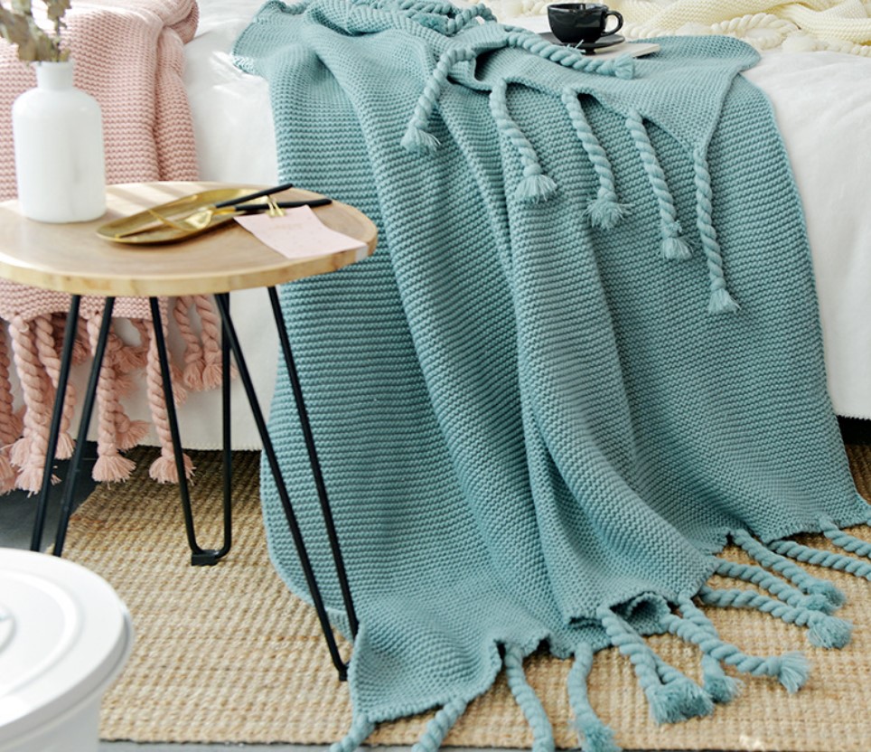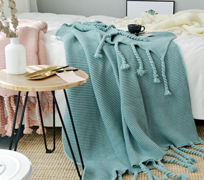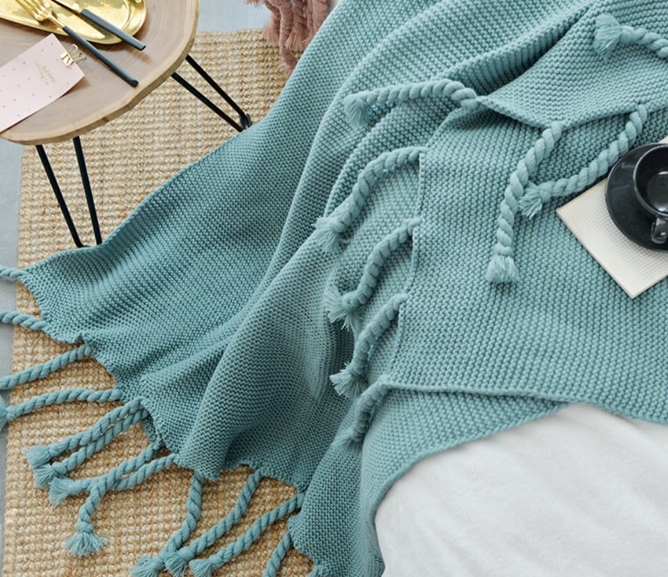 Office sofa blanket with tassel knitted thread blanket