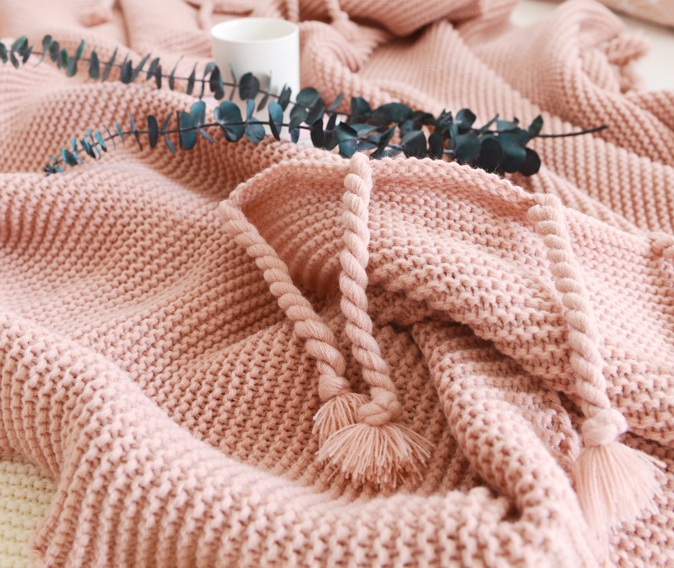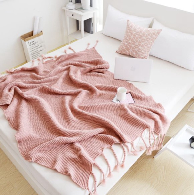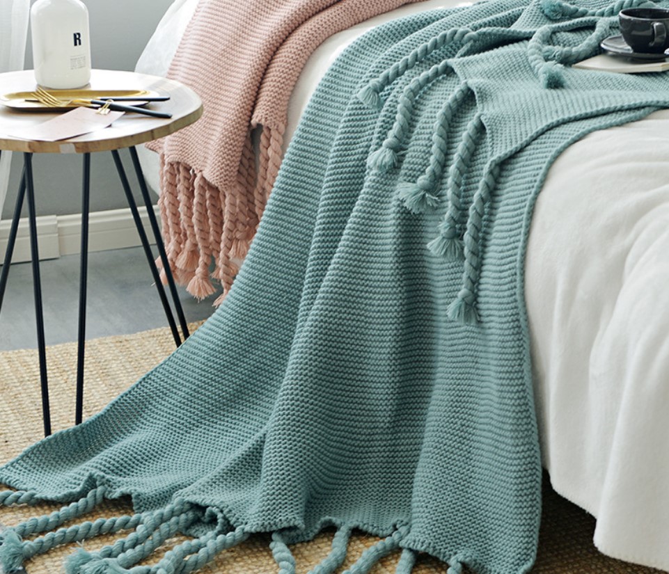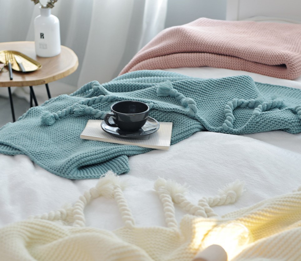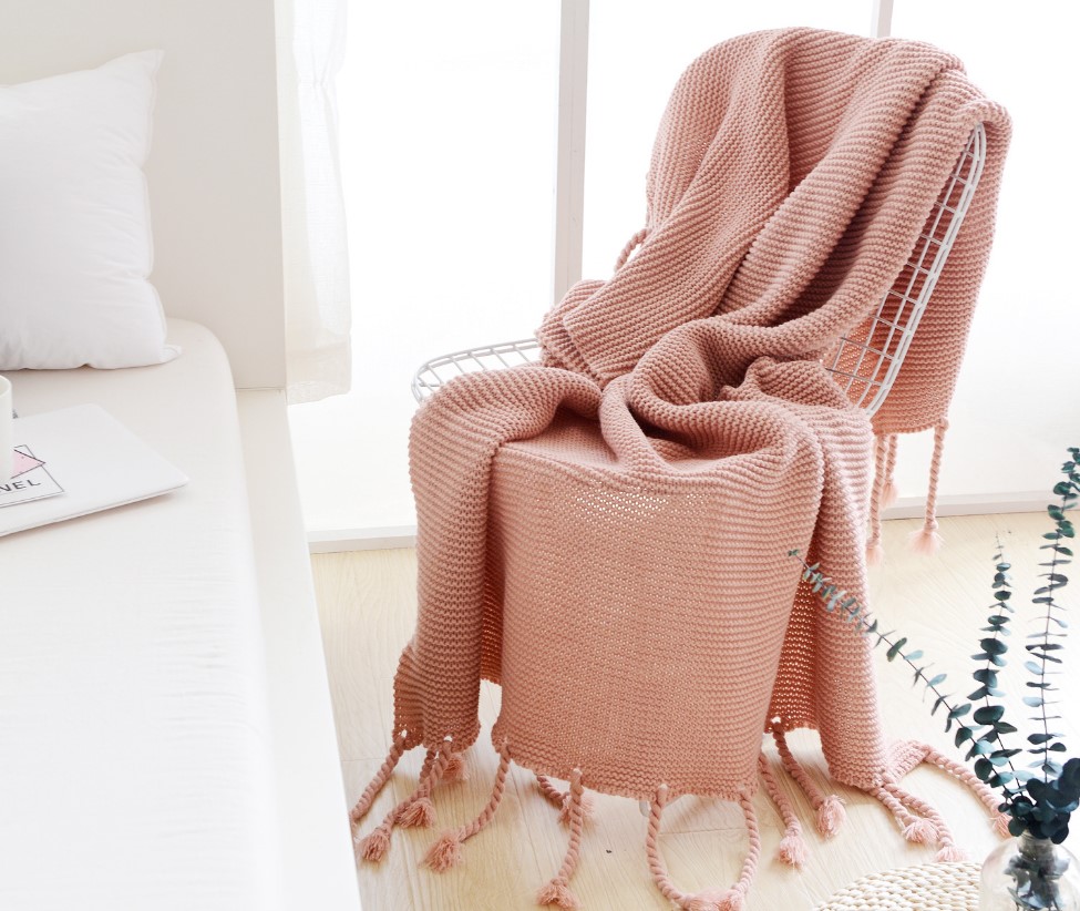 Office sofa blanket with tassel knitted thread blanket