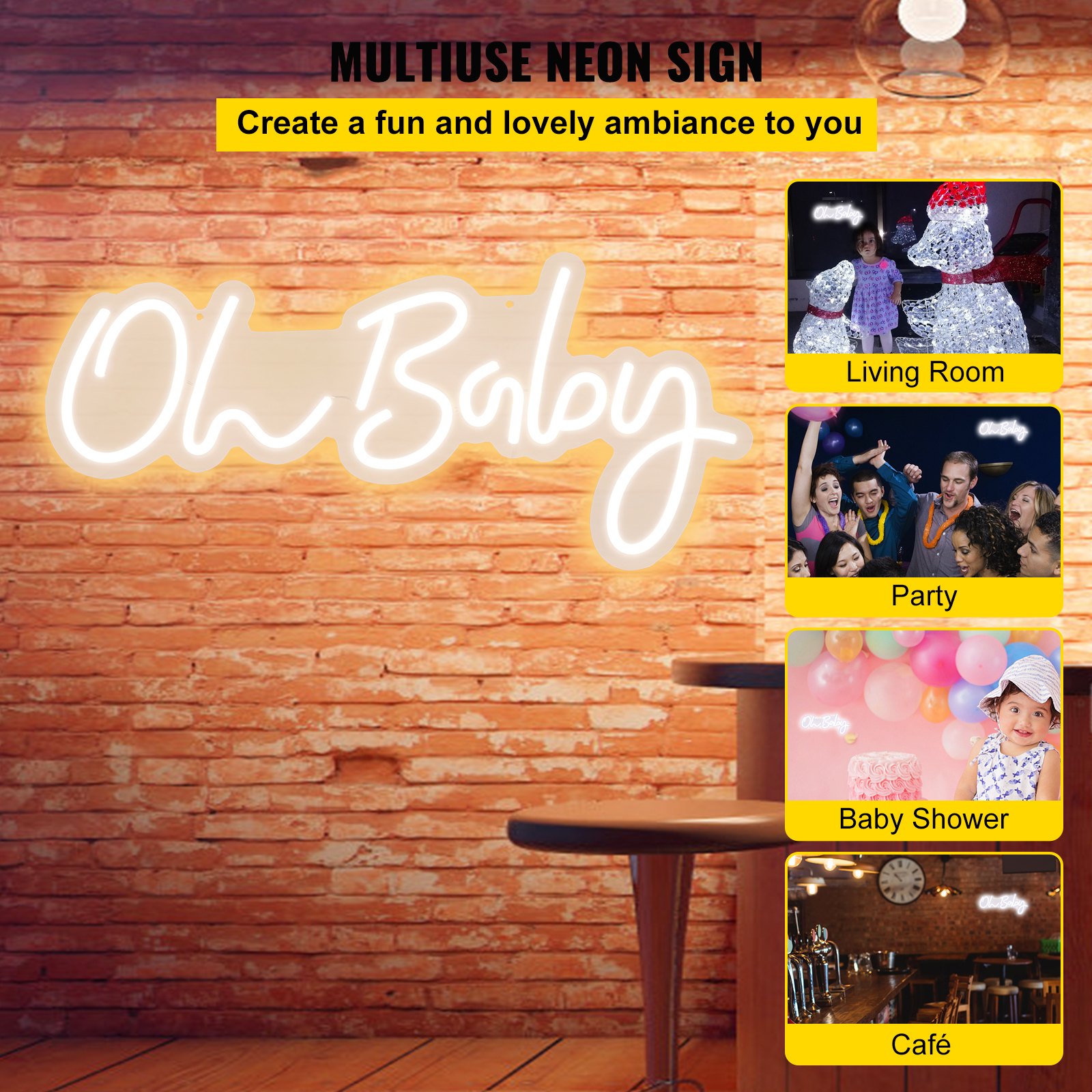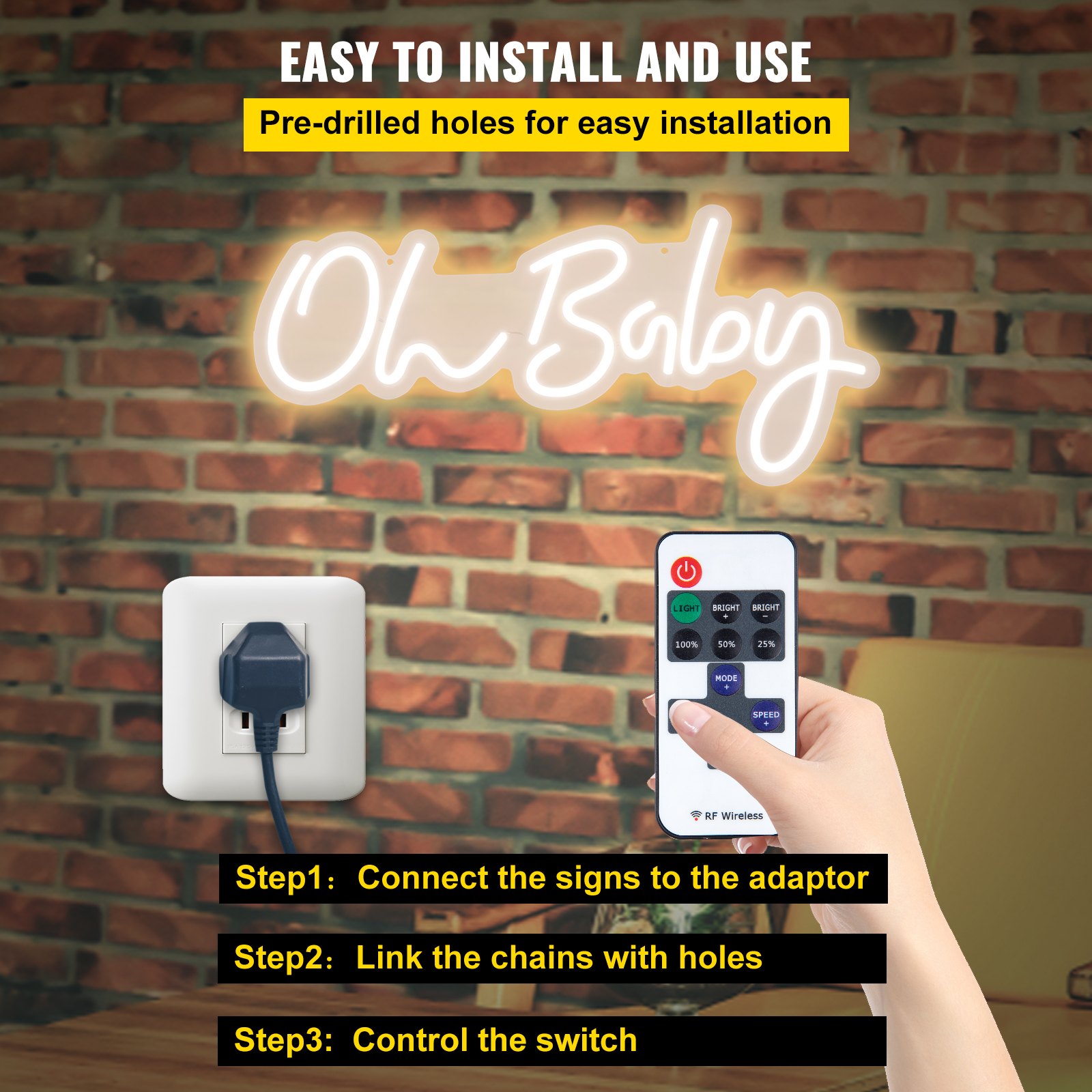 Easy to Install and Use: Our oh baby sign has 2 pre-drilled holes and hanging chains. Connect the signs to the adaptor first, then link the chains with holes. You can move them into the ideal position, hang them or fix them on the wall, or place them on a flat surface. (screws and 12V adapter are included).