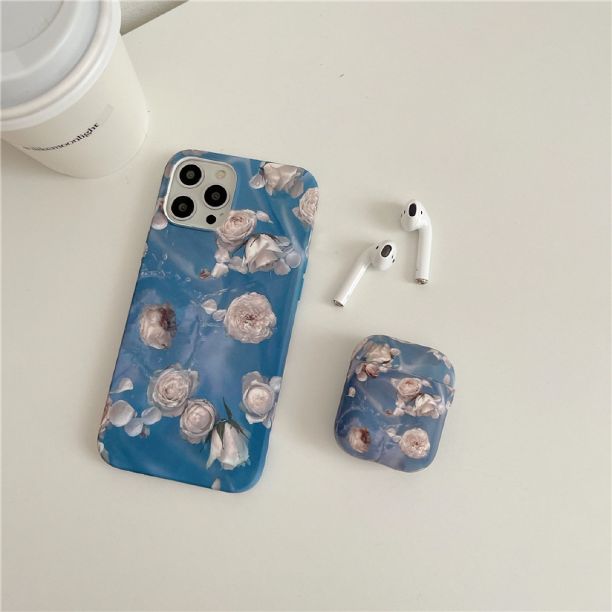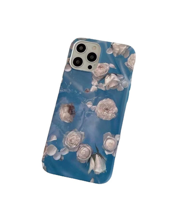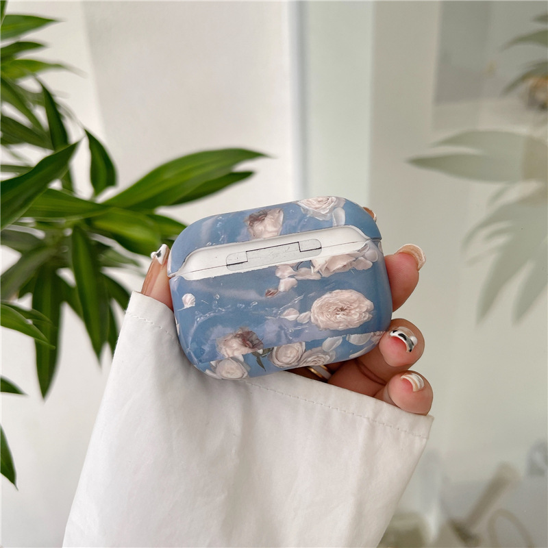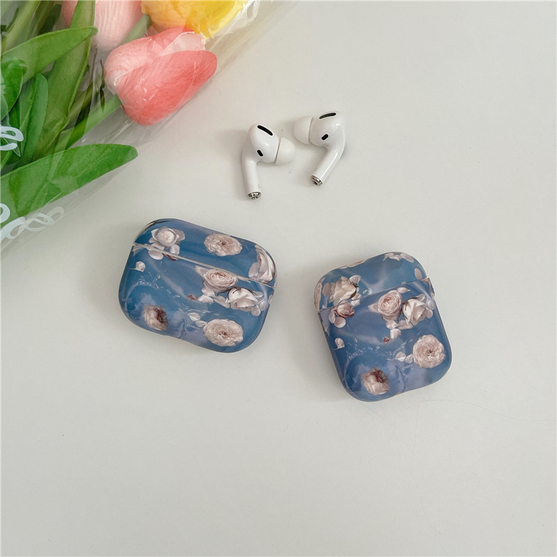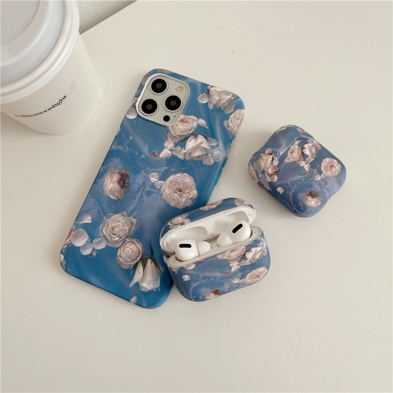 Color: blue oil painting flower phone case, blue oil painting flower earphone cover