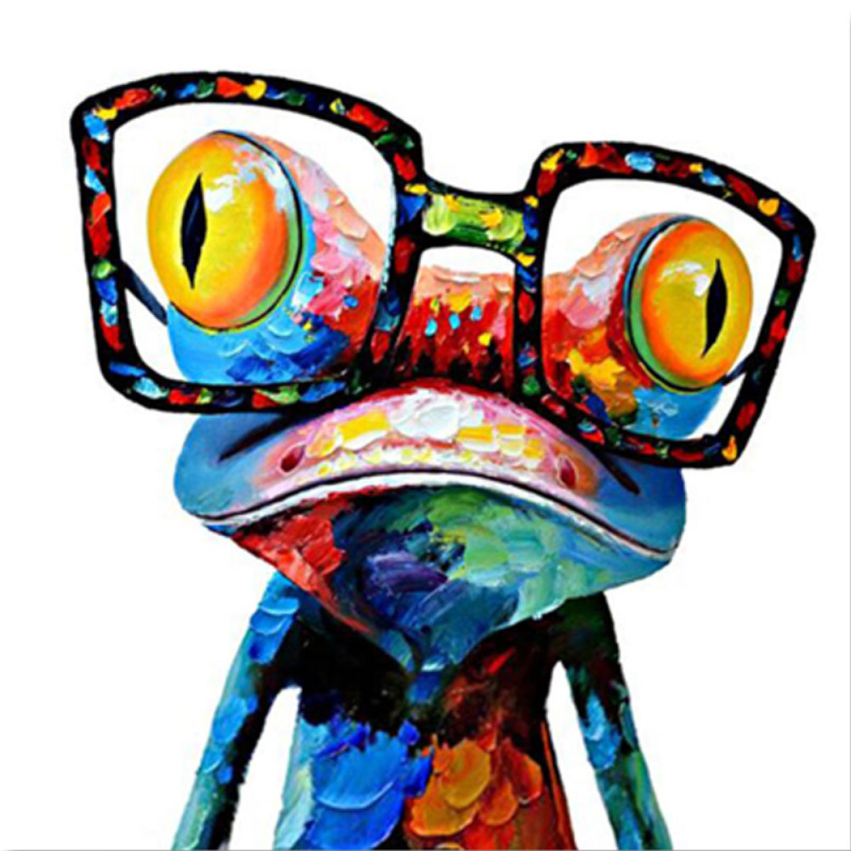 Oil Painting Modern Abstract Animal Art Pictures Set HD Printing Colorful Glasses Frog For Home Decoration Canvas Painting