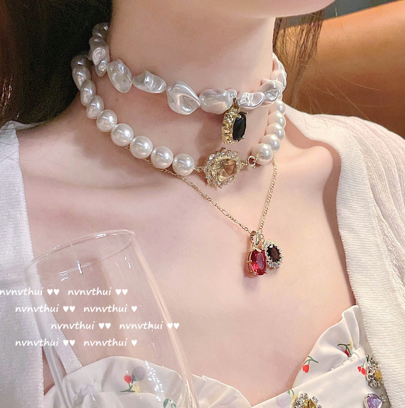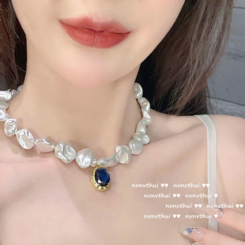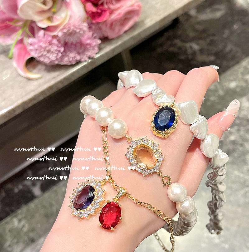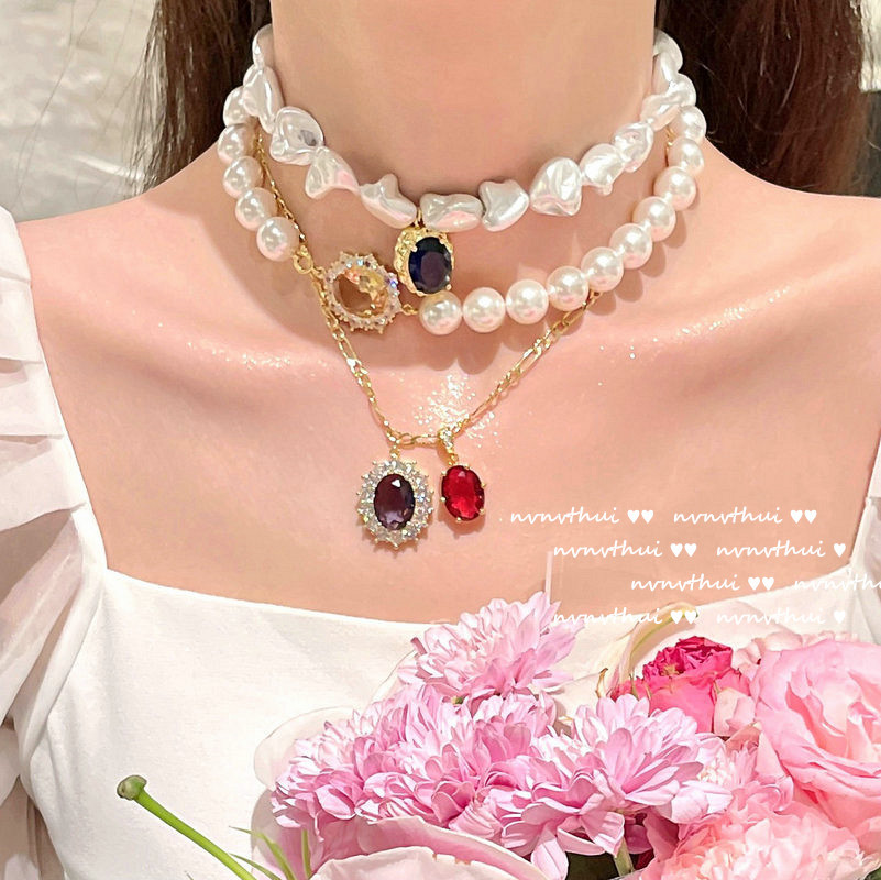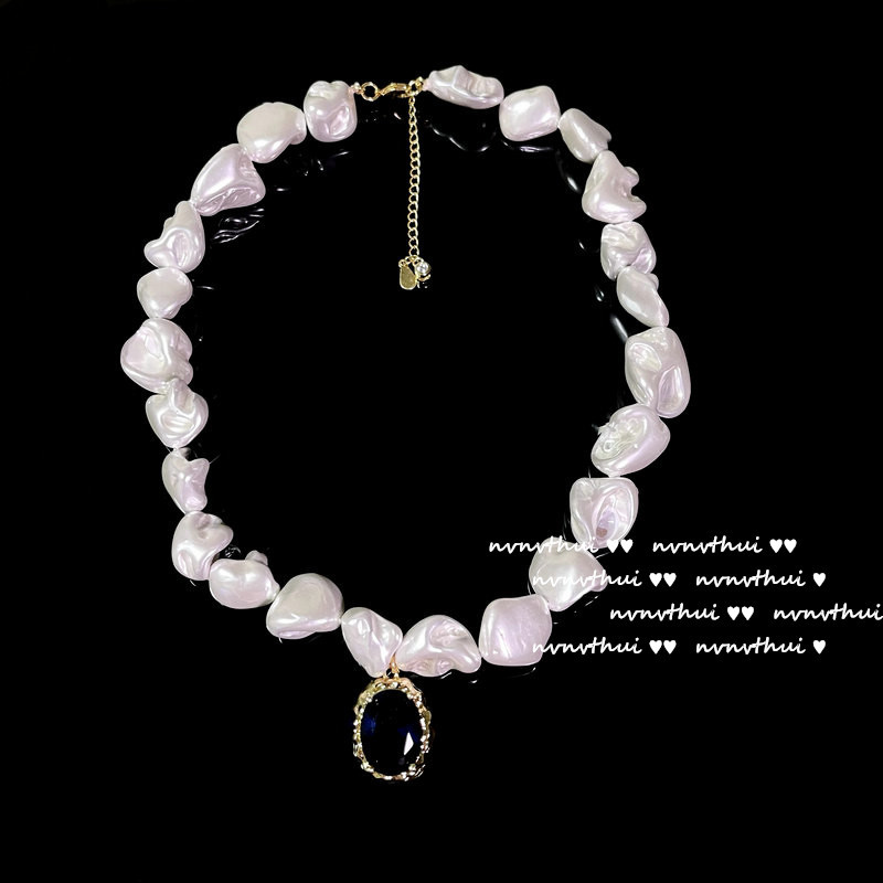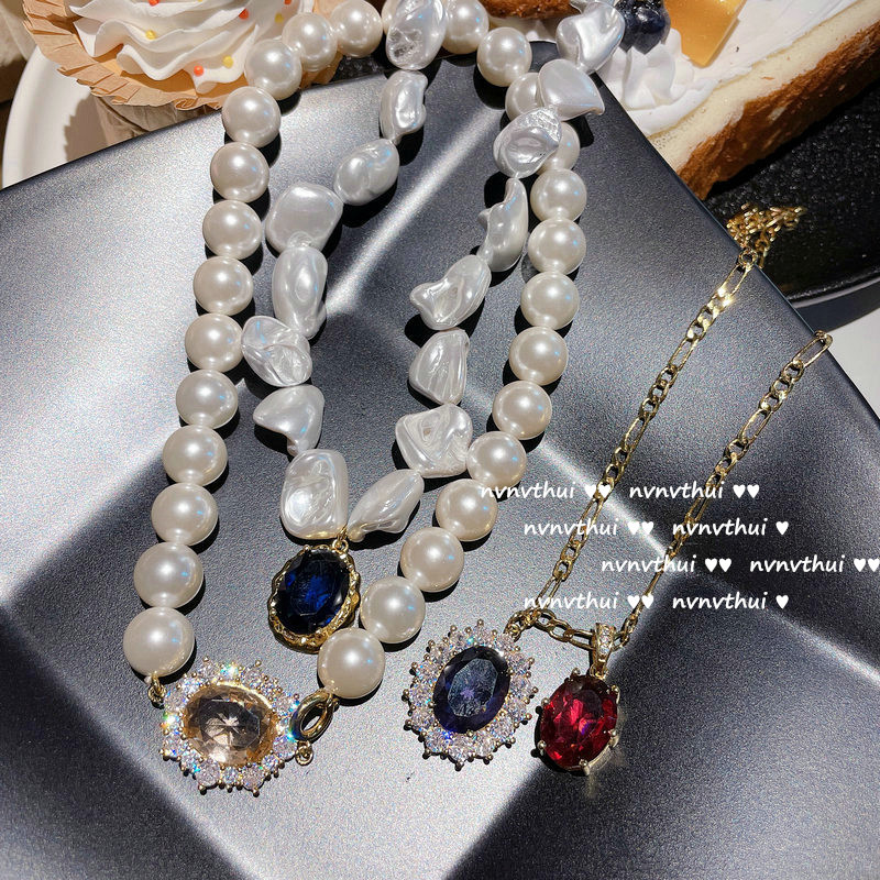 Color: 366K denier pink zircon artificial shell pearls necklace, 366K deep sea blue denier zircon Baroque artificial shell pearls necklace, 357K new denier pomegranate red grape purple zircon necklace
