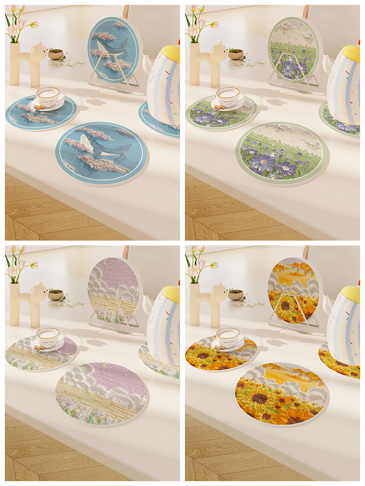 Product information:Style: minimalist and modernMaterial: BlendedDimensions: 16 * 16cm, 20 * 20cmPackaging list:Insulation pad * 1/3pcs