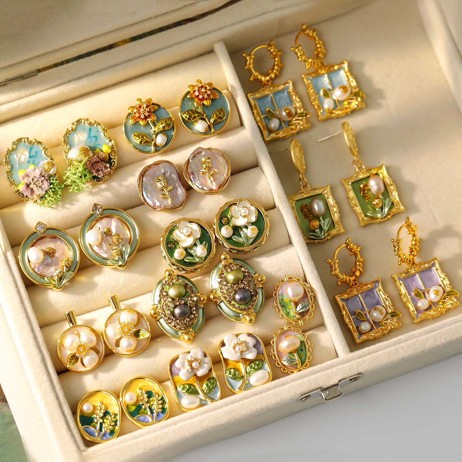 Style 9:18k golden ball light purple pearl orange Pearl Blue,