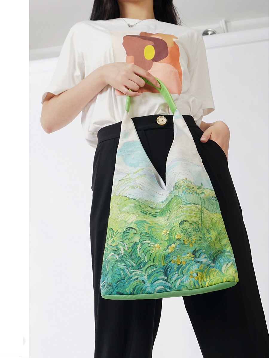 Oil Painting Wheat Field Canvas Bag Fashion Portable Large Capacity Shoulder Bag