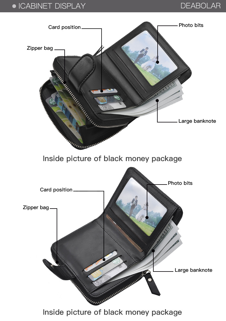 The internal structure of the small bag: photo slot, zipper compartment, bill holder, card slot, secret compartment, change slot, certificate slot, check slot