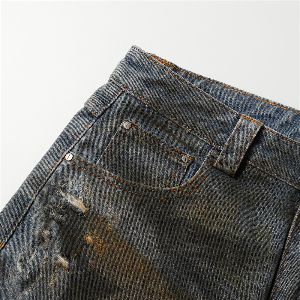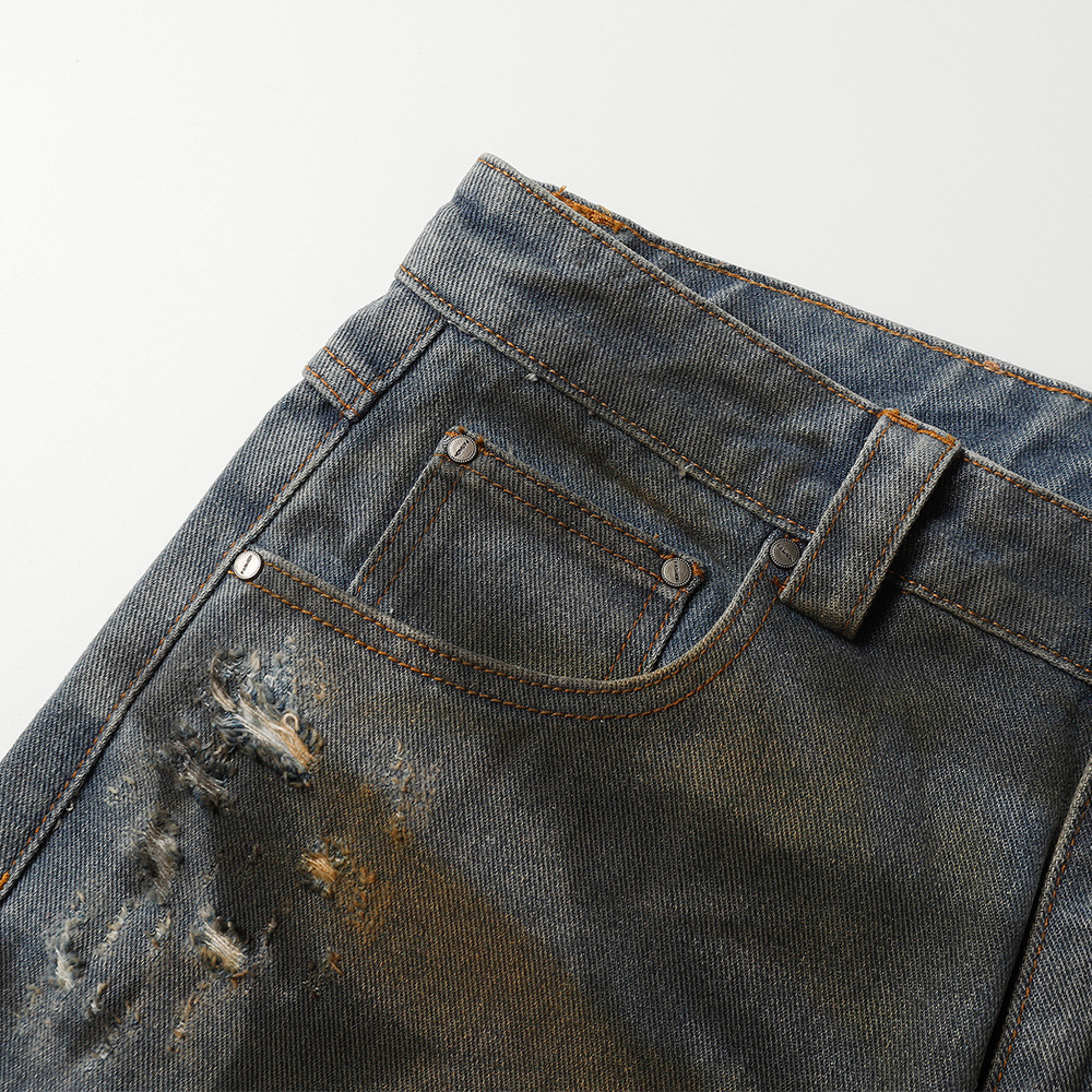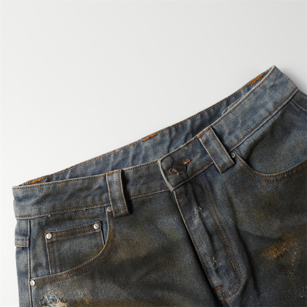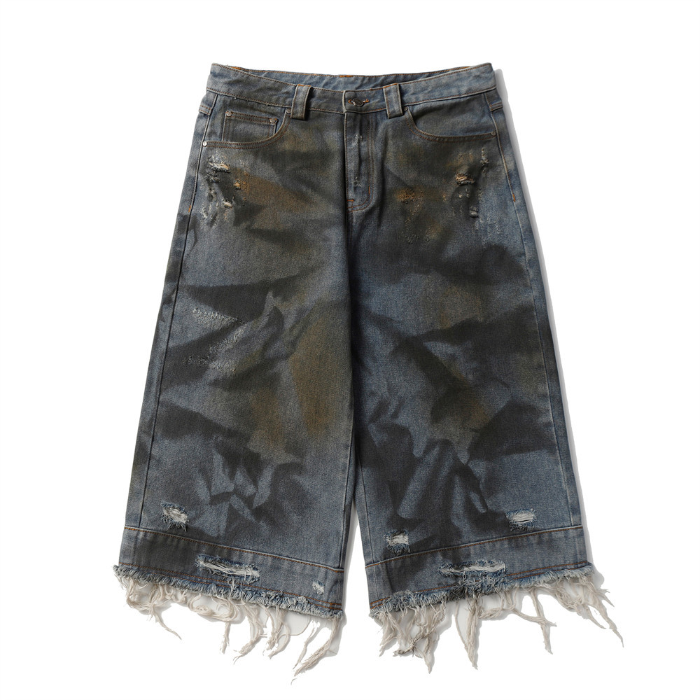 Old And Dirty Denim Middle Pants For Men