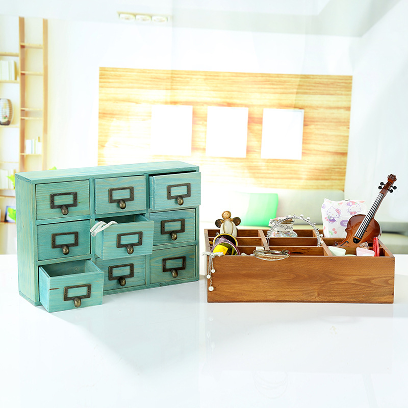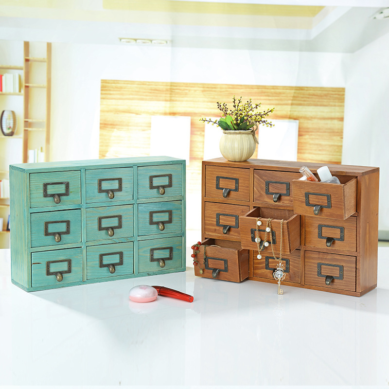 Old Vintage Wooden Box 9 Drawer Storage Box