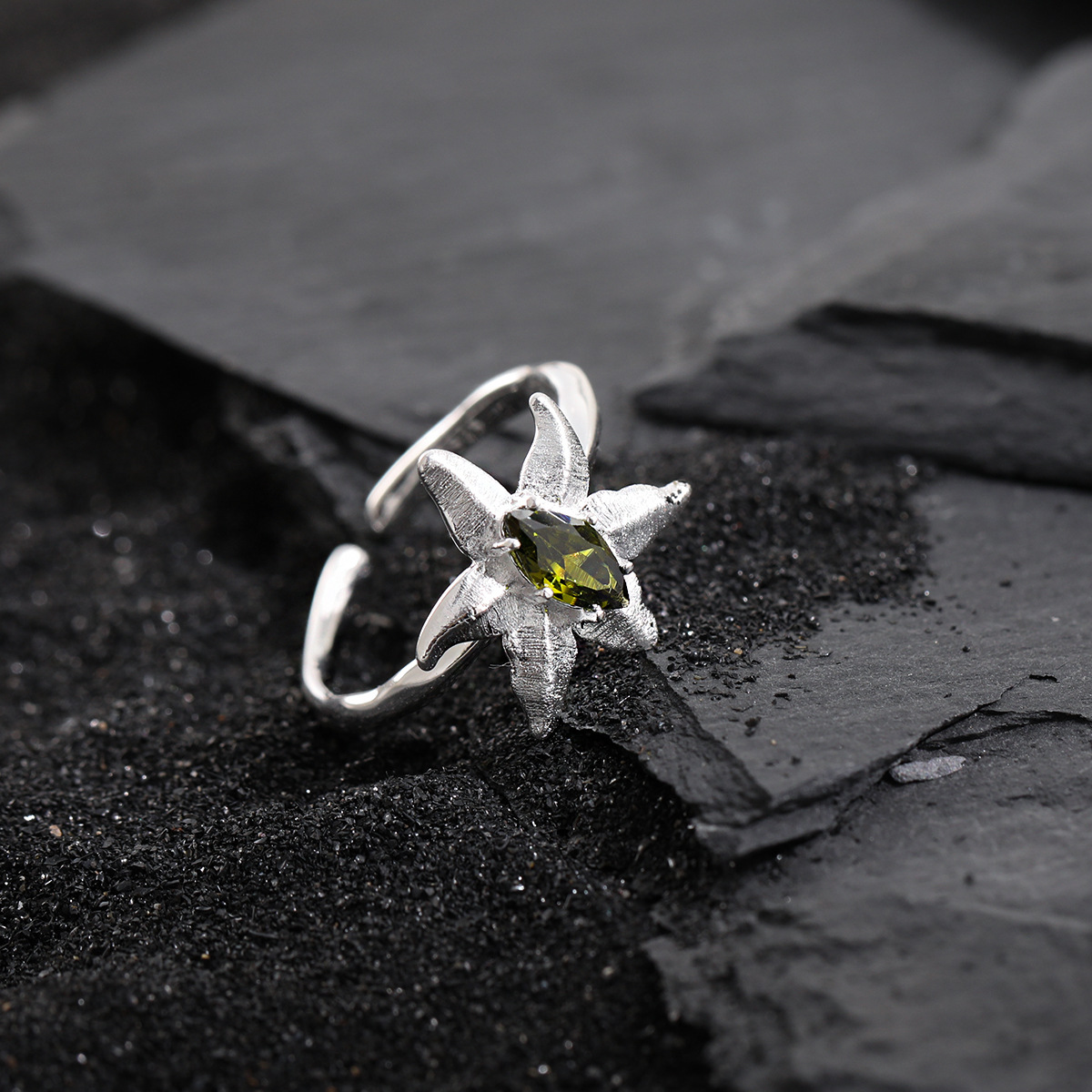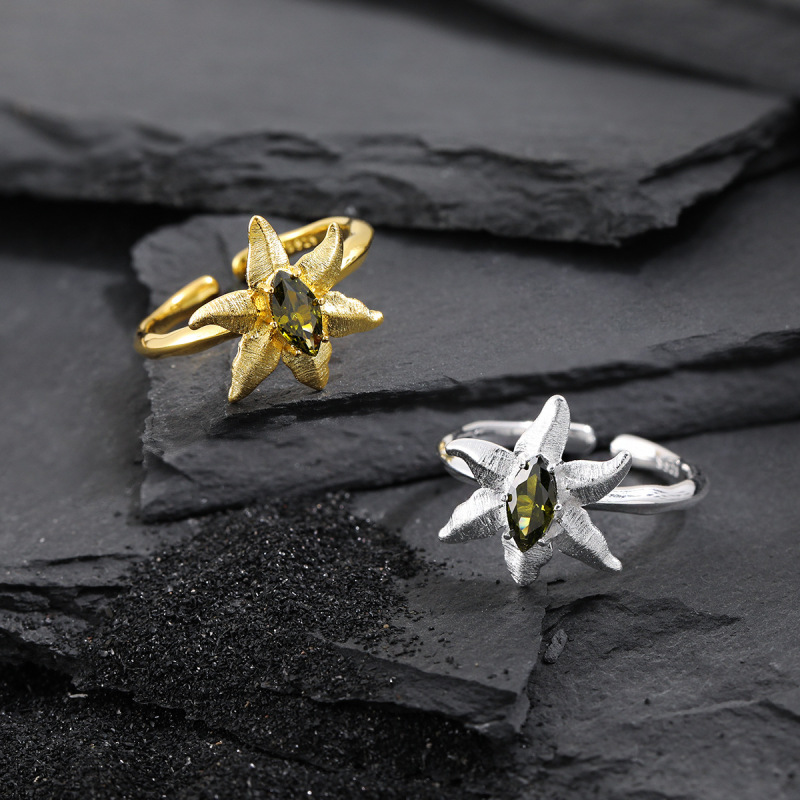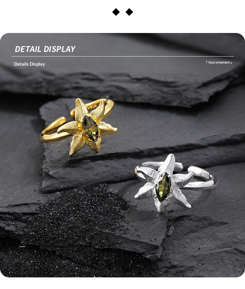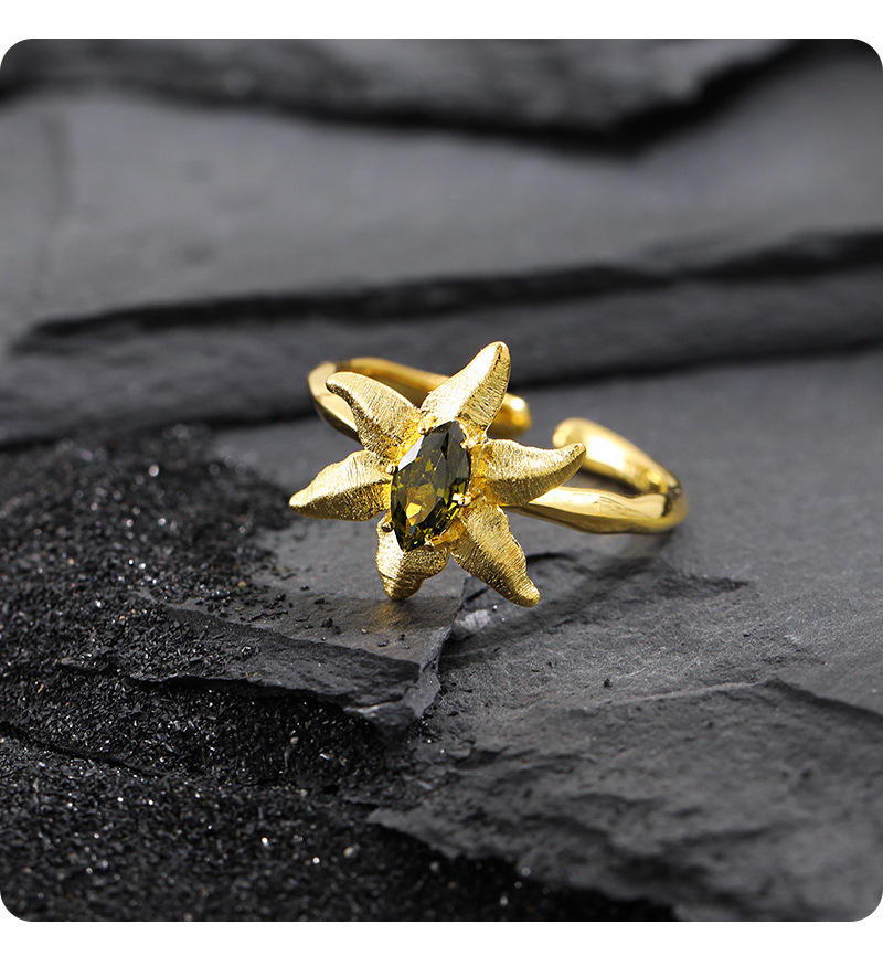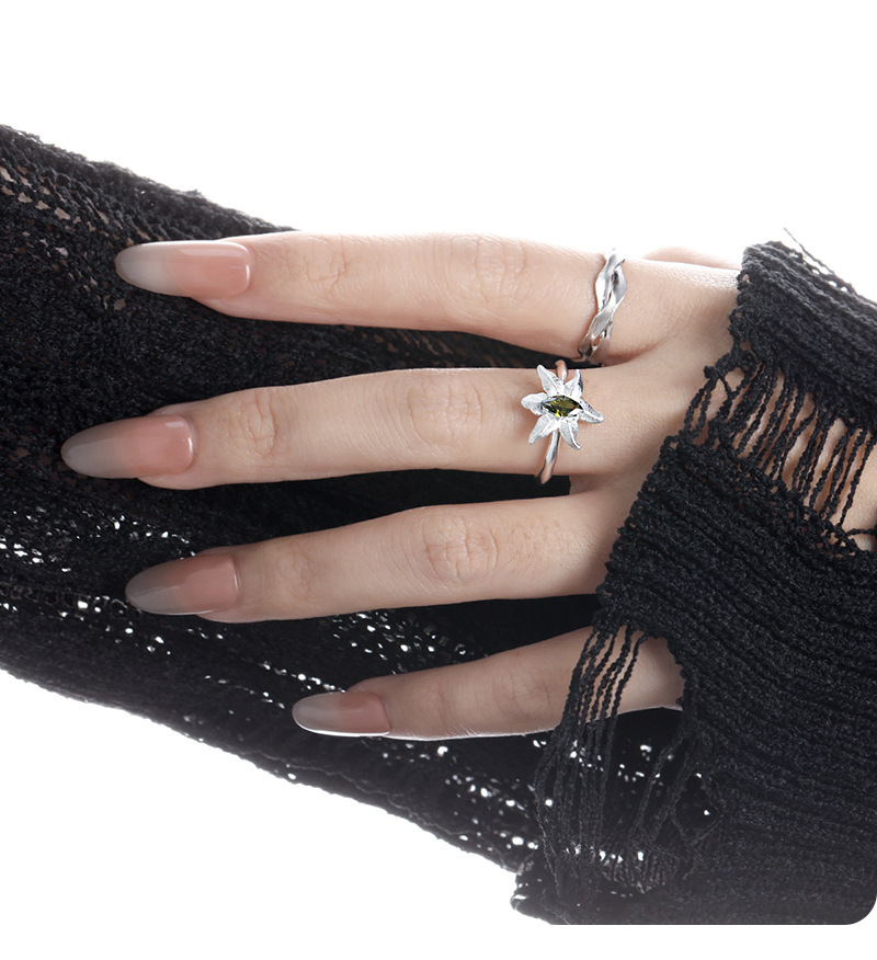 Olivine Inlaid Women's Niche Personality Temperament Open Ring