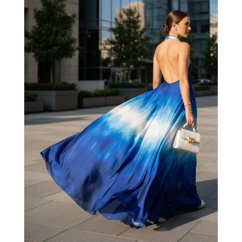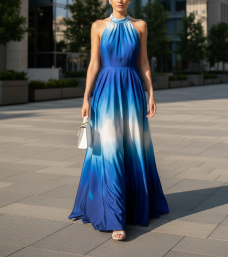 Ombre Halter Backless Maxi Dress-Elegant Blue Gradient Evening Gown