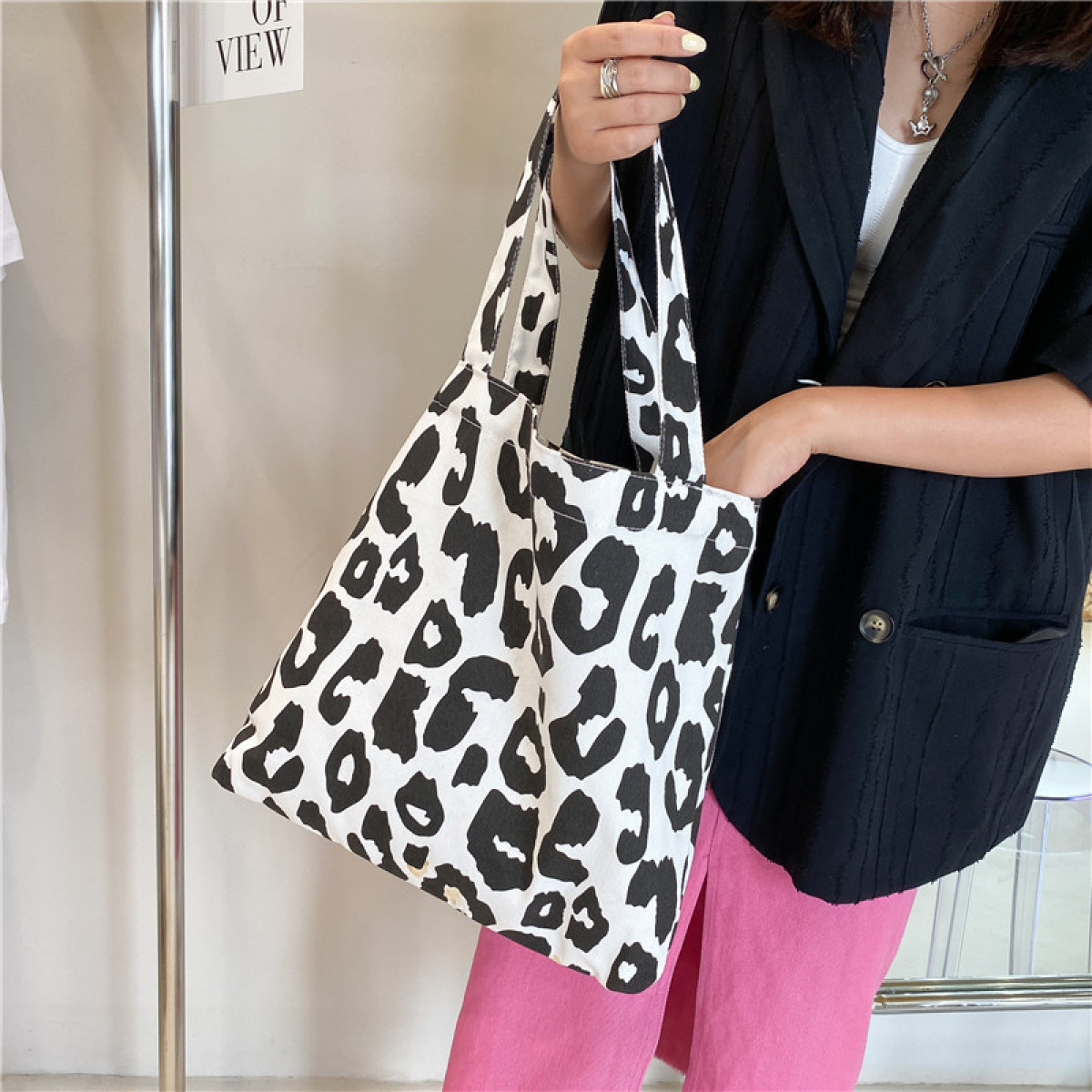 Omen's Single-shoulder Large-capacity Animal Print Canvas Bag