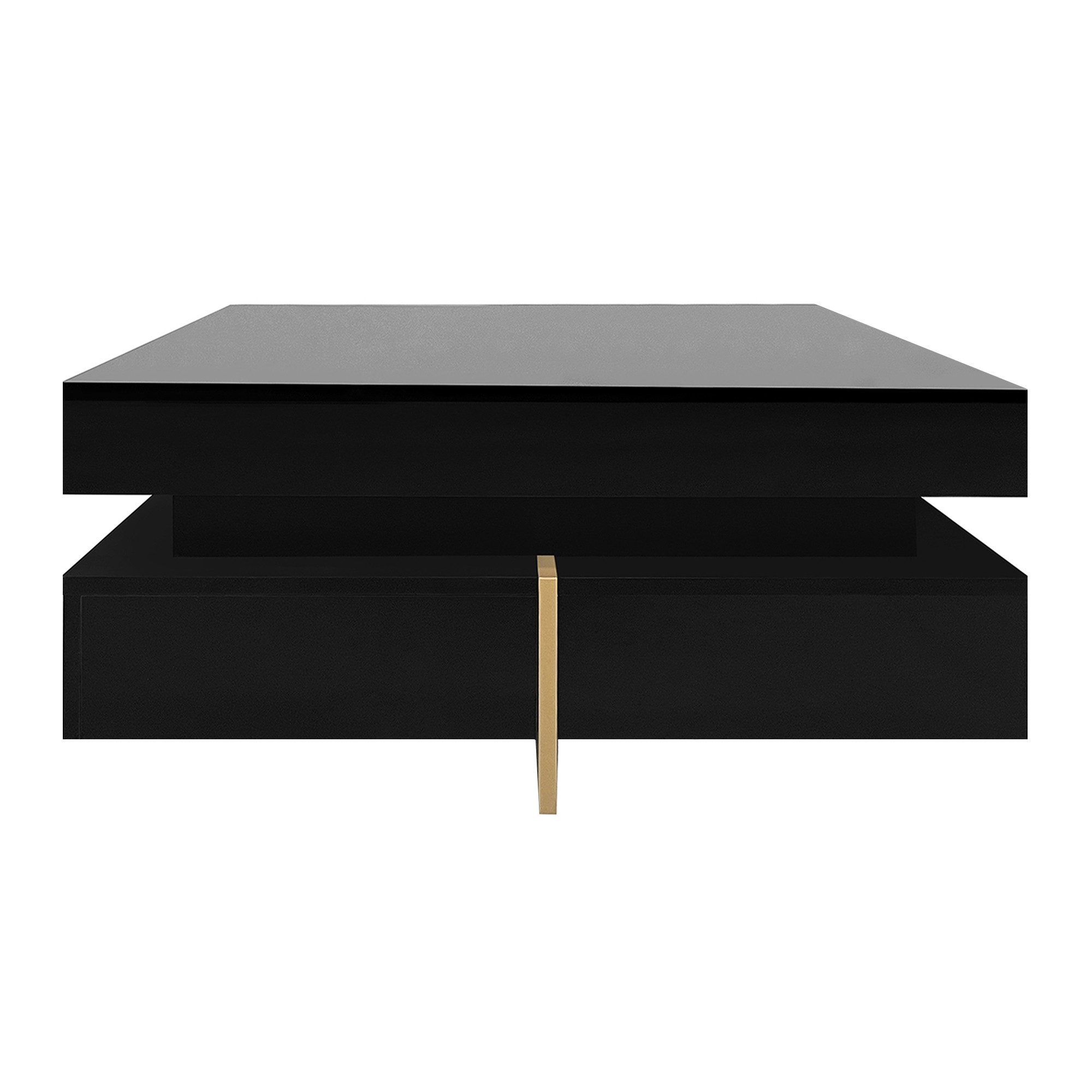 Product Name:ON-TREND Modern High Gloss Coffee Table with 4 Drawers, Multi-Storage Square Cocktail Tea Table with Wood Grain Legs, Center Table for Living Room, 31.5''x31.5'', Black
