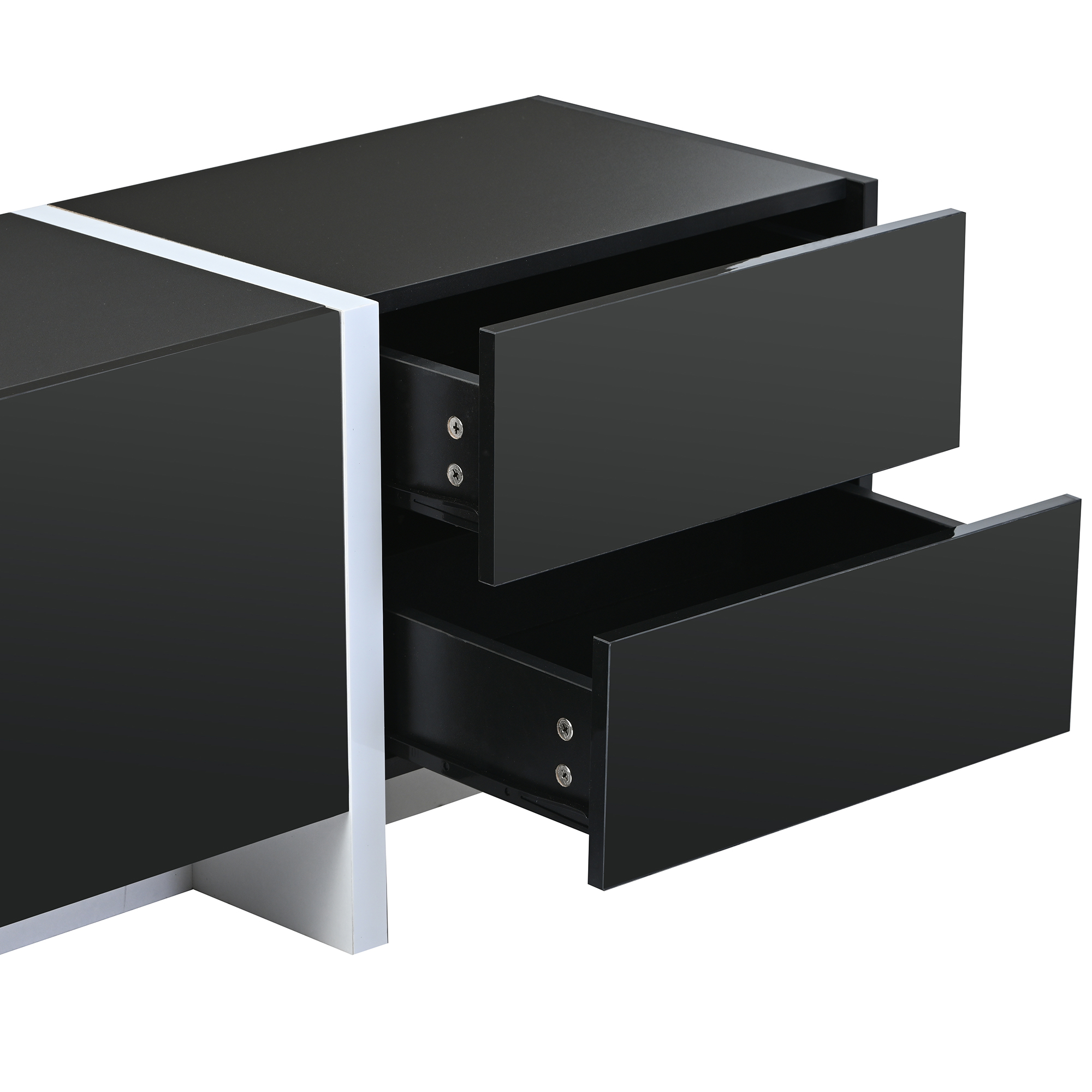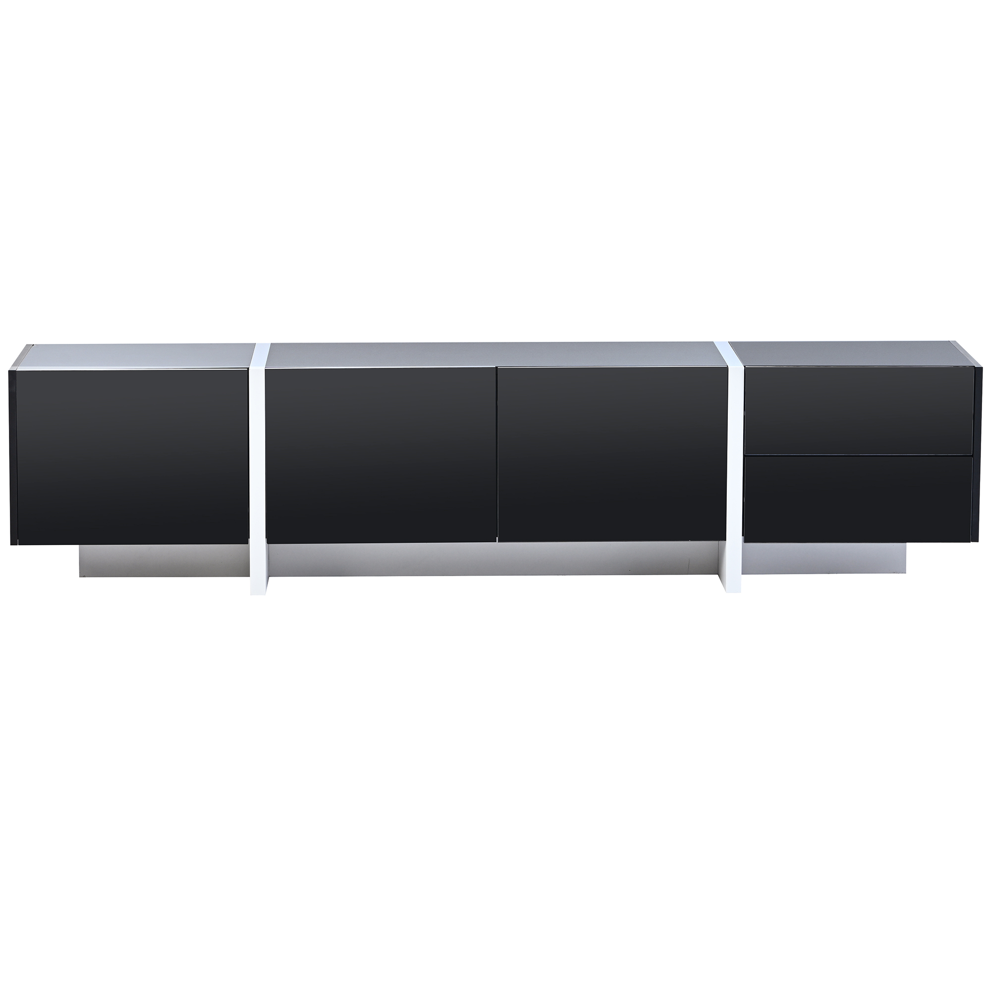 Product Name:ON-TREND White & Black Contemporary Rectangle Design TV Stand, Unique Style TV Console Table for TVs Up to 80'', Modern TV Cabinet with High Gloss UV Surface for Living Room.