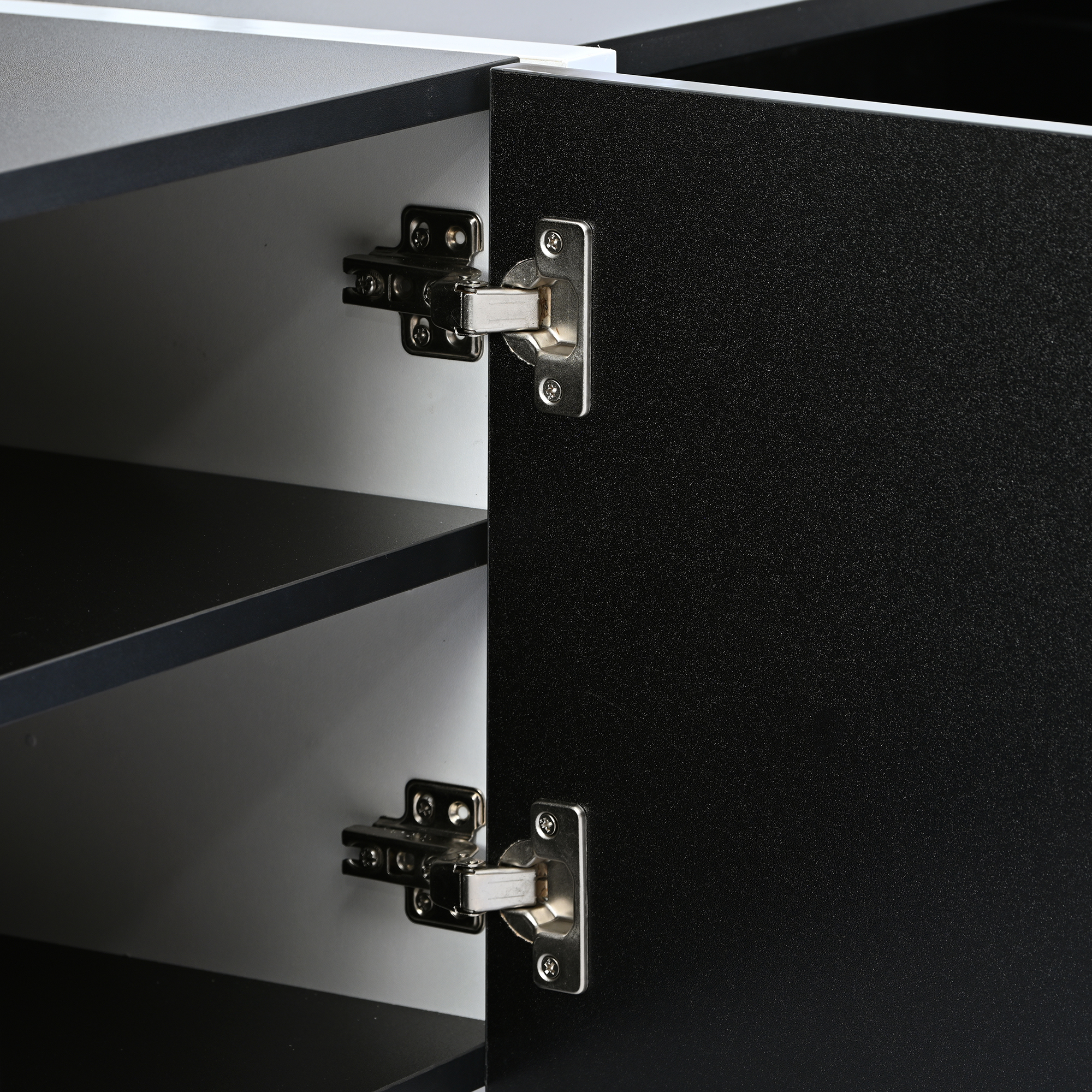 The white table body is separated by two black straight lines, which brings more layers visually. The UV surface also provides a light luxury style to your space.