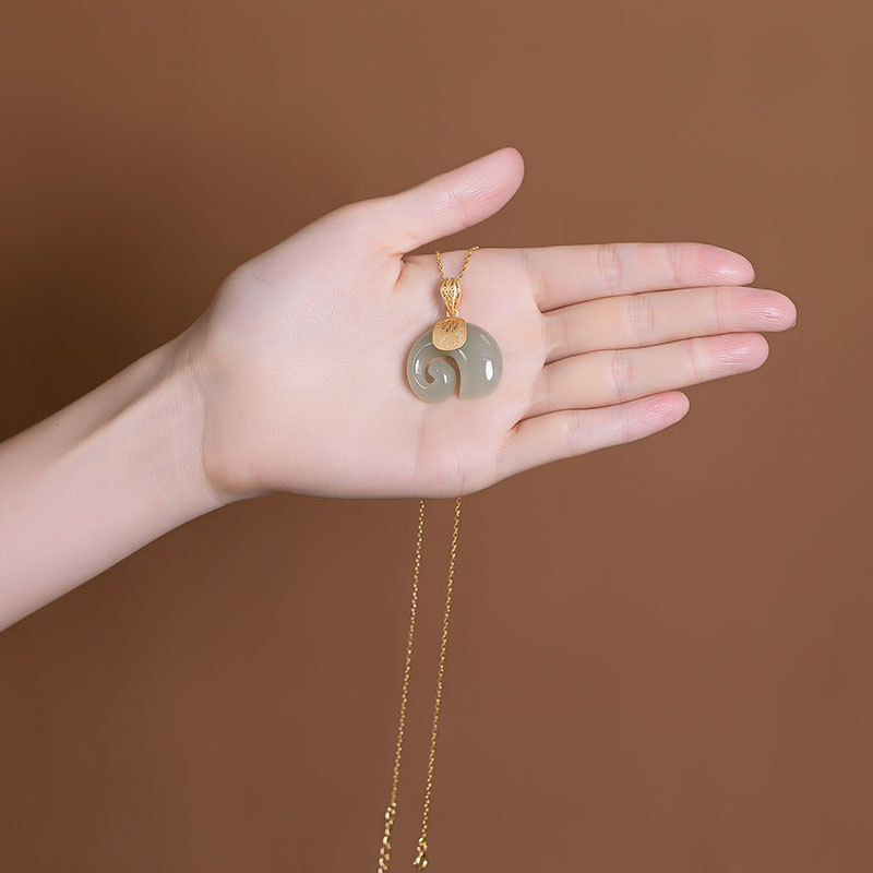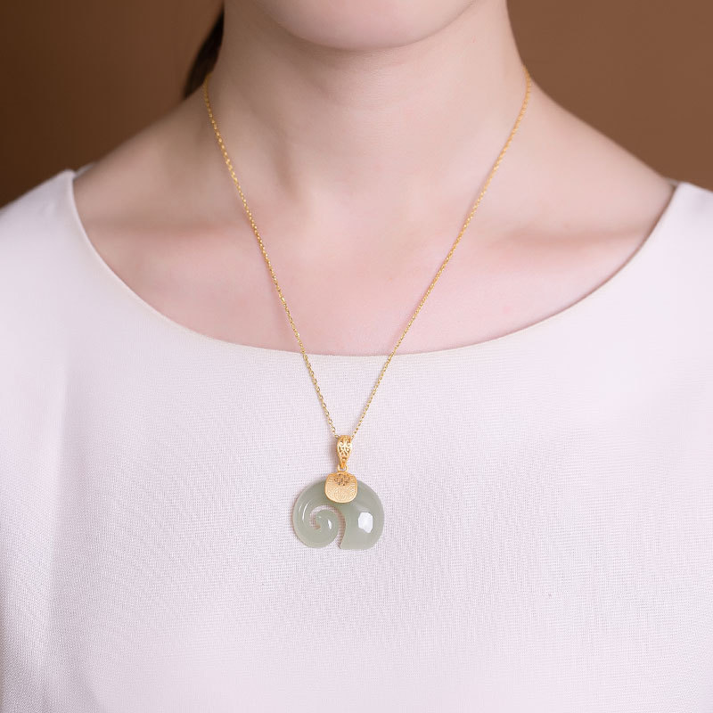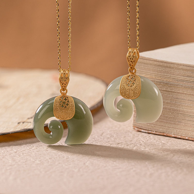 One Deer Silver S925 Sterling Silver Natural Hetian Jade Pendant Sapphire