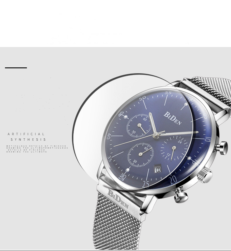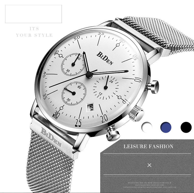 One drop shipping Biden Biden mens calendar ultra-thin mesh strap watch three-eye watch foreign trade watch watch